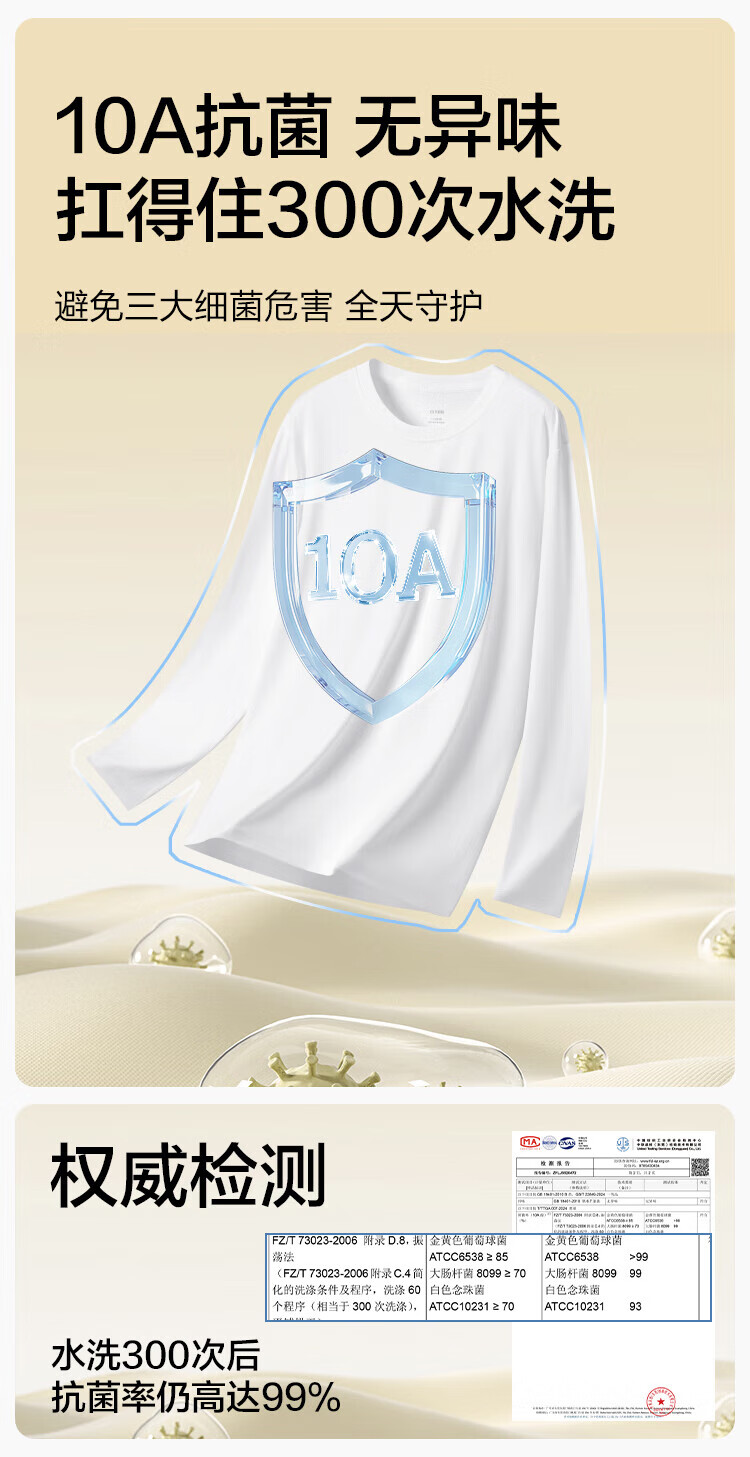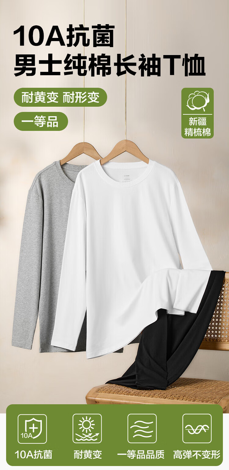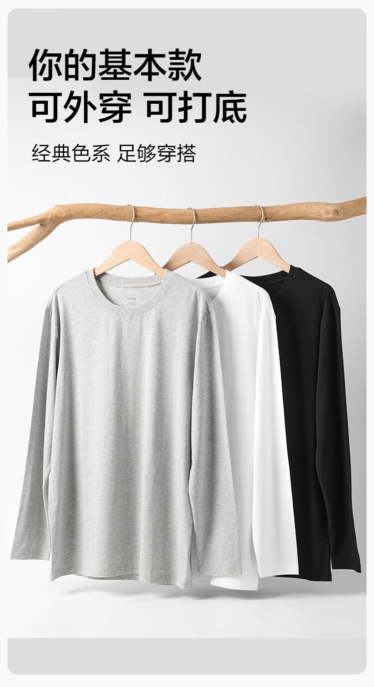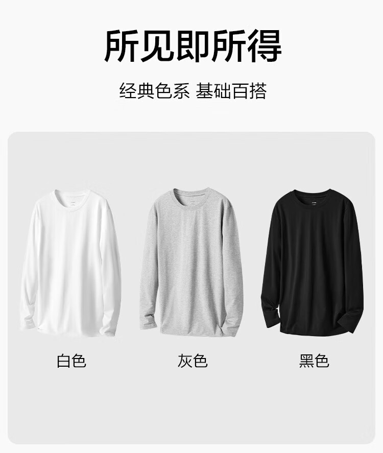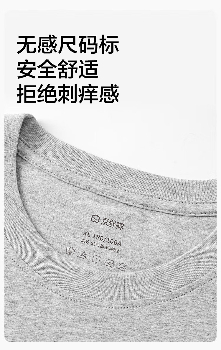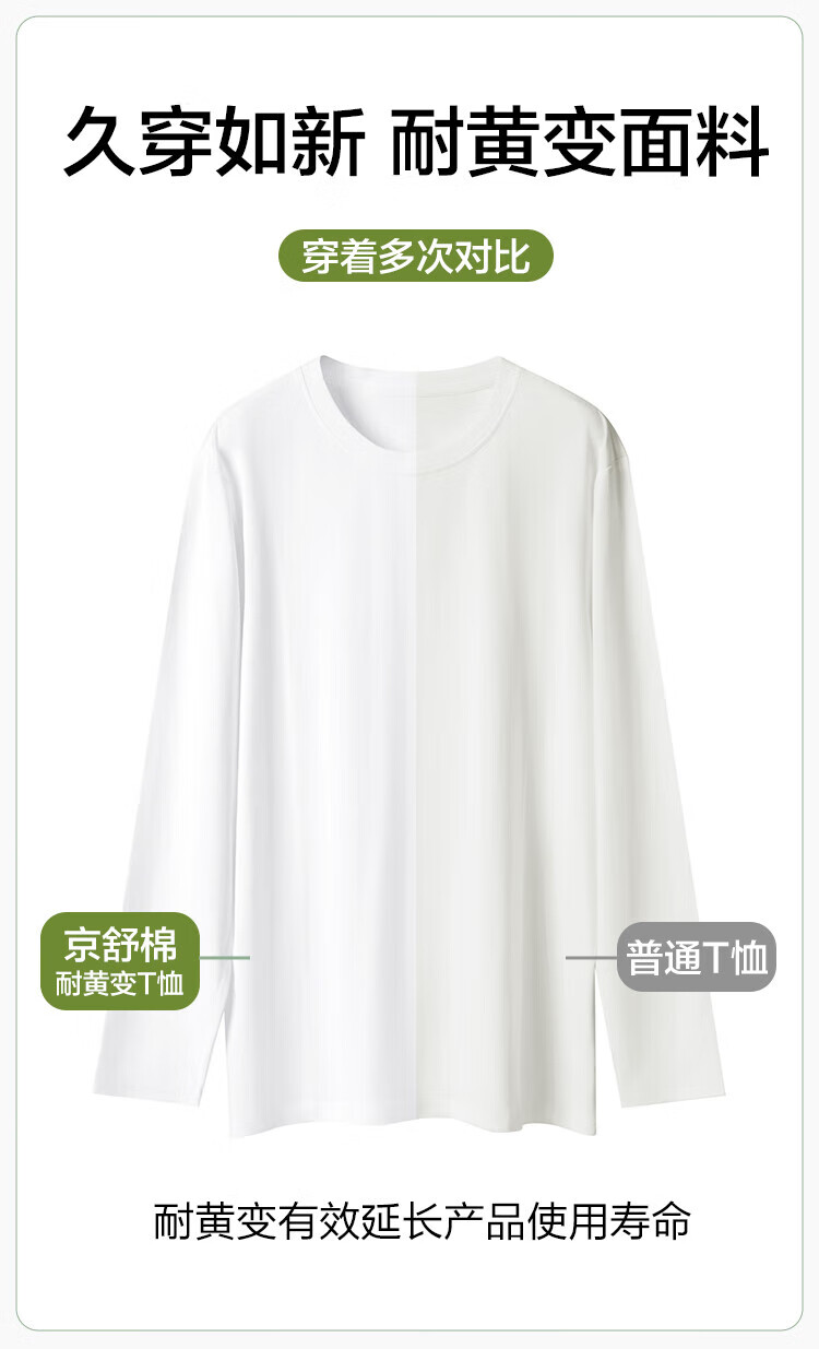 Jingshu cotton Jingdong's own brand cotton men's pure cotton long-sleeved T-shirt youth antibacterial soft cotton bottoming shirt white L