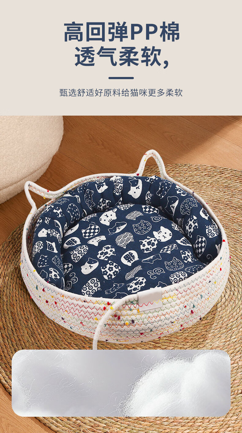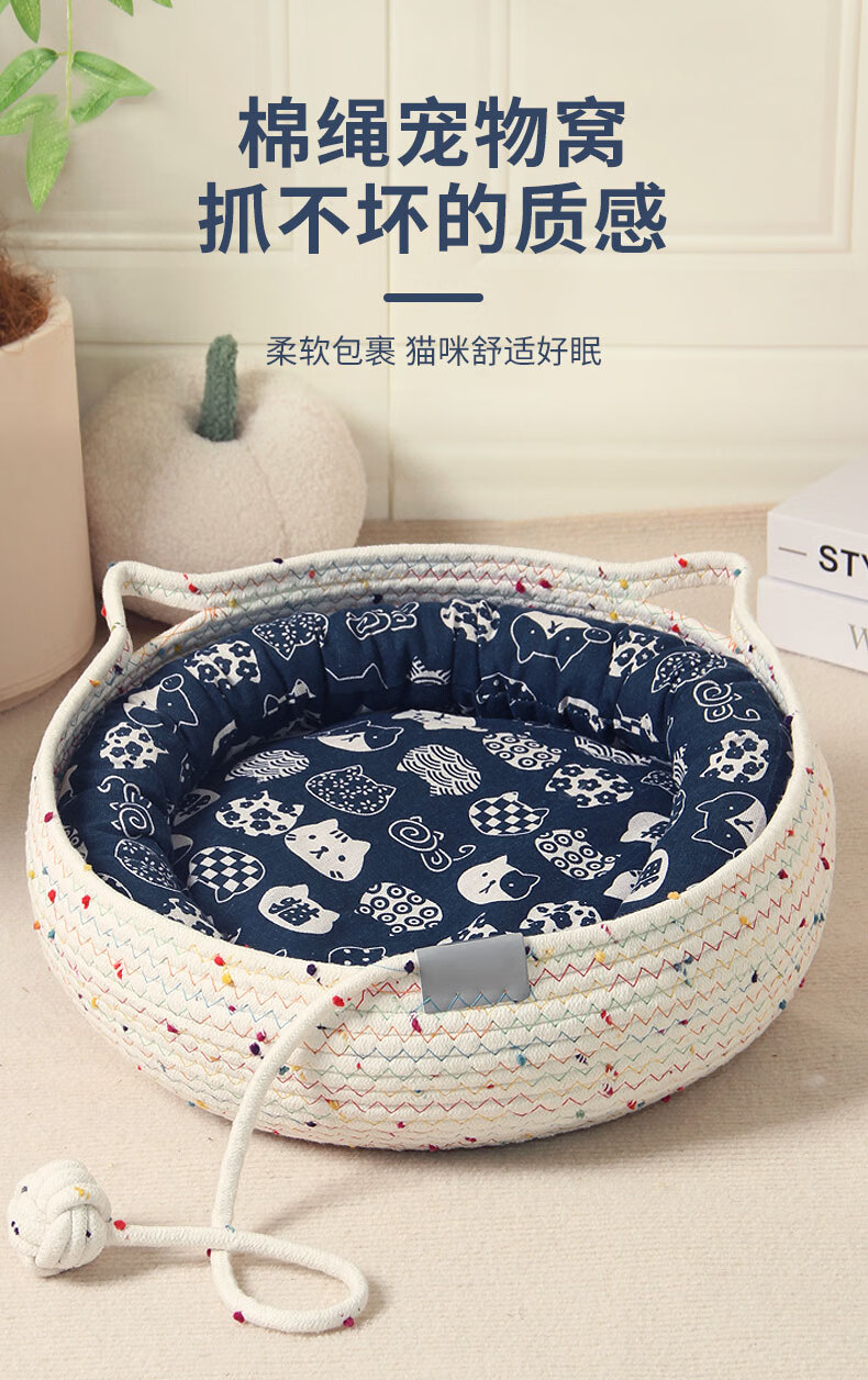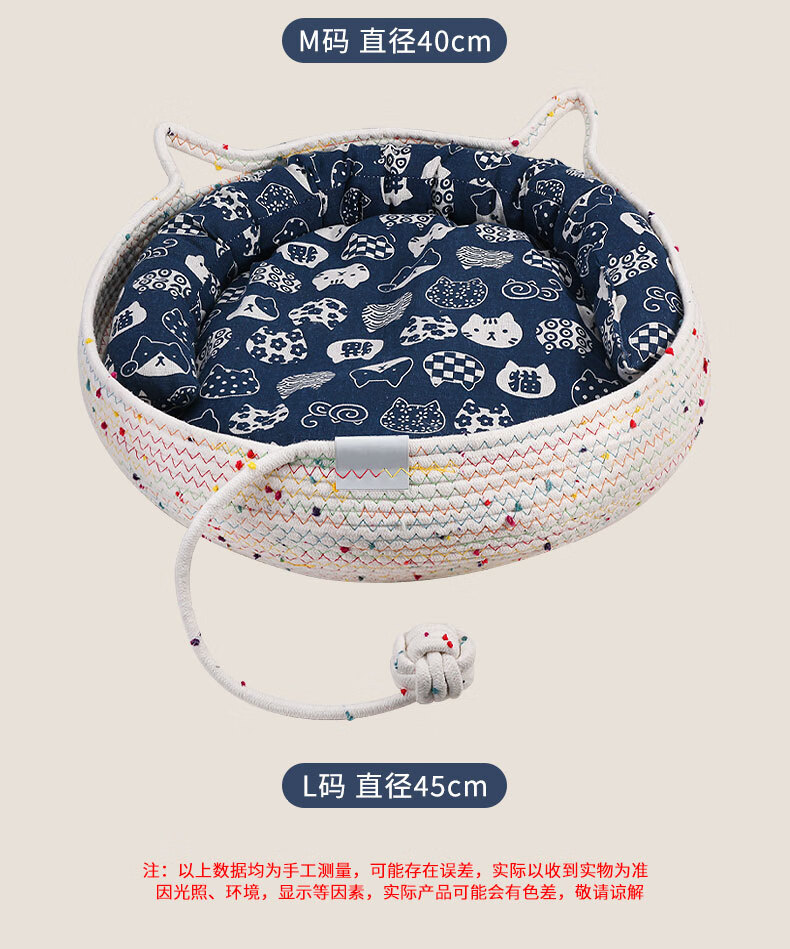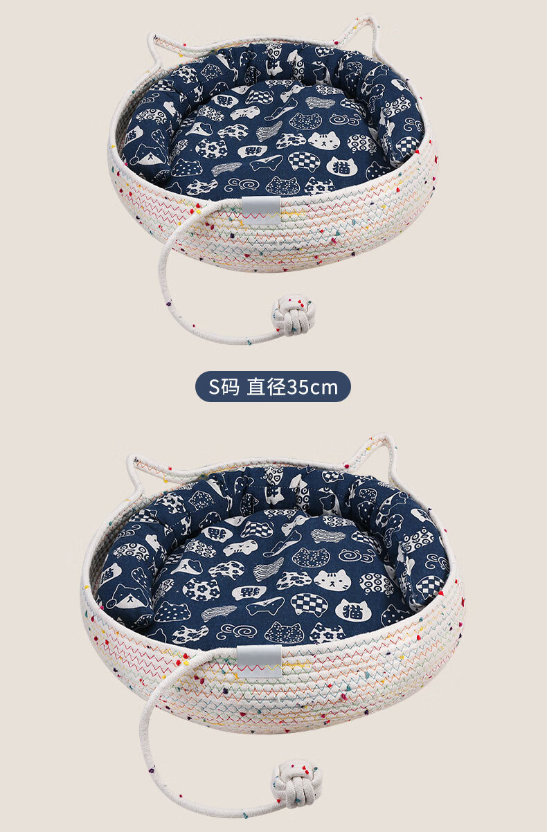 Cute Star Pet Cat and Dog Nest Pet Cat Sleeping Mat Comfortable and Warm Teddy Small Dog Mat Cotton Rope Braided Size L