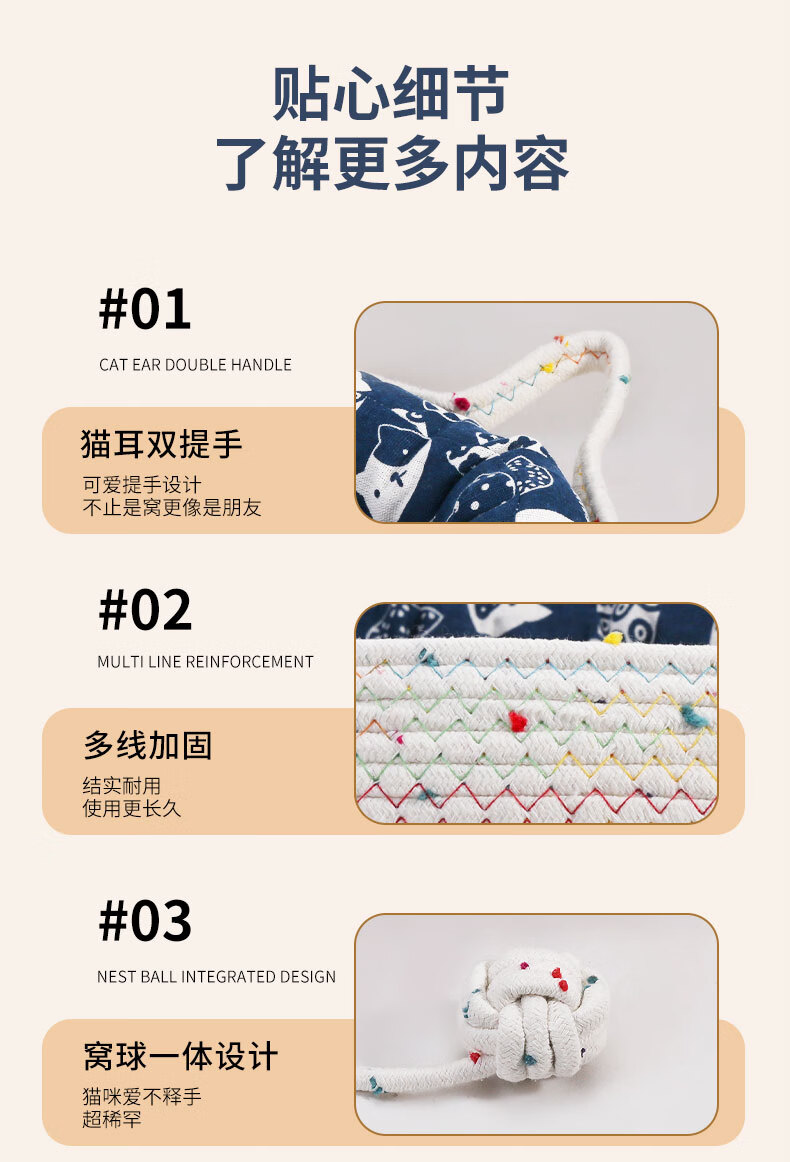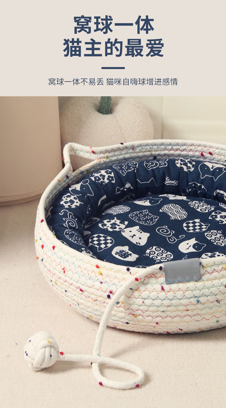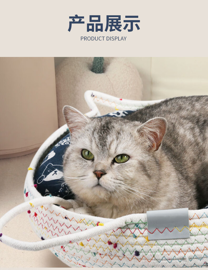 Cute Star Pet Cat and Dog Nest Pet Cat Sleeping Mat Comfortable and Warm Teddy Small Dog Mat Cotton Rope Braided Size L