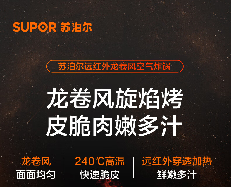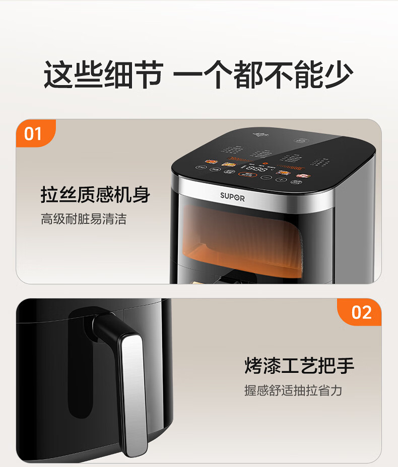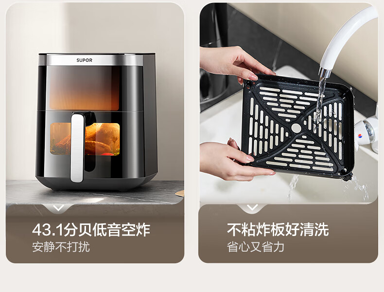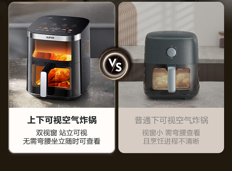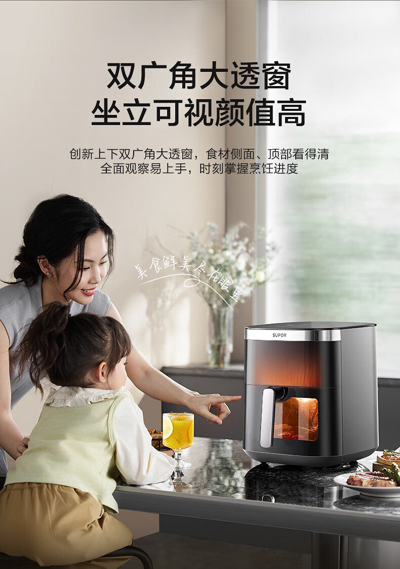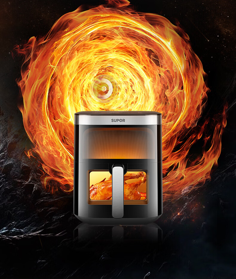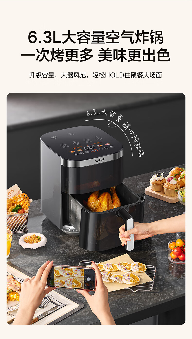 SUPOR air fryer, flip-free household fully automatic tornado, large air volume, far infrared visible 6.3L large capacity, frying and grilling all-in-one air fryer KD63Y896