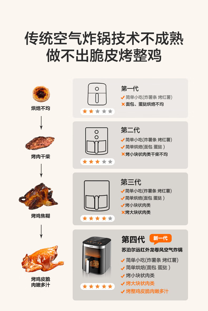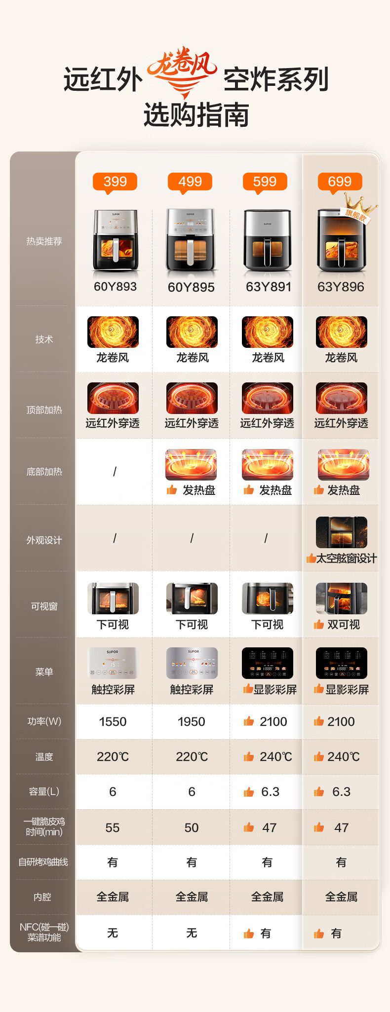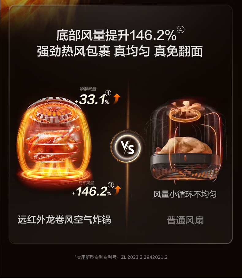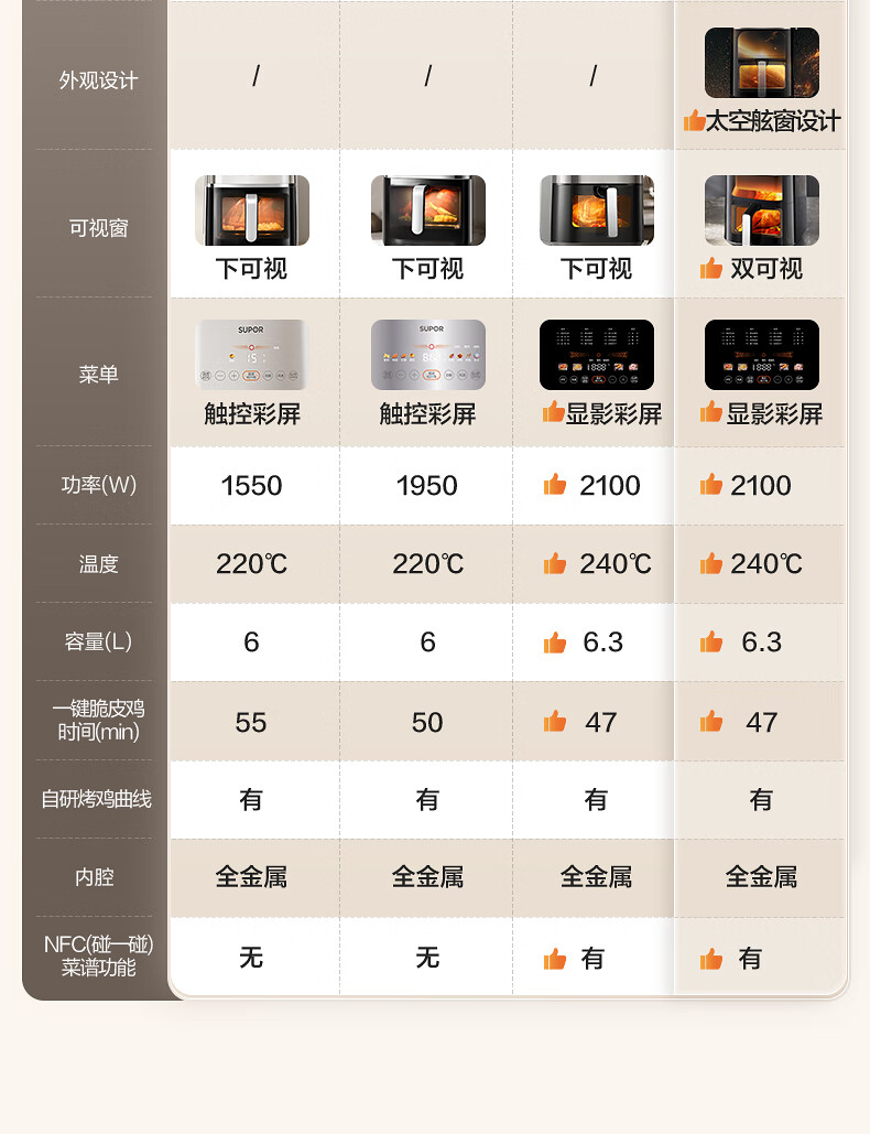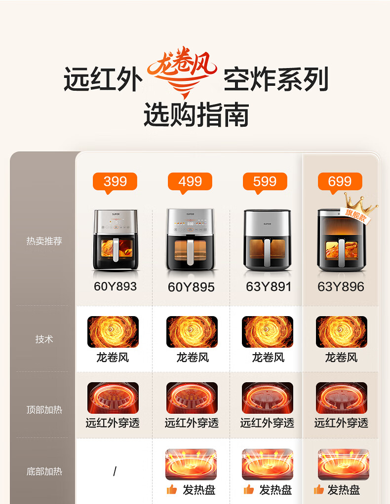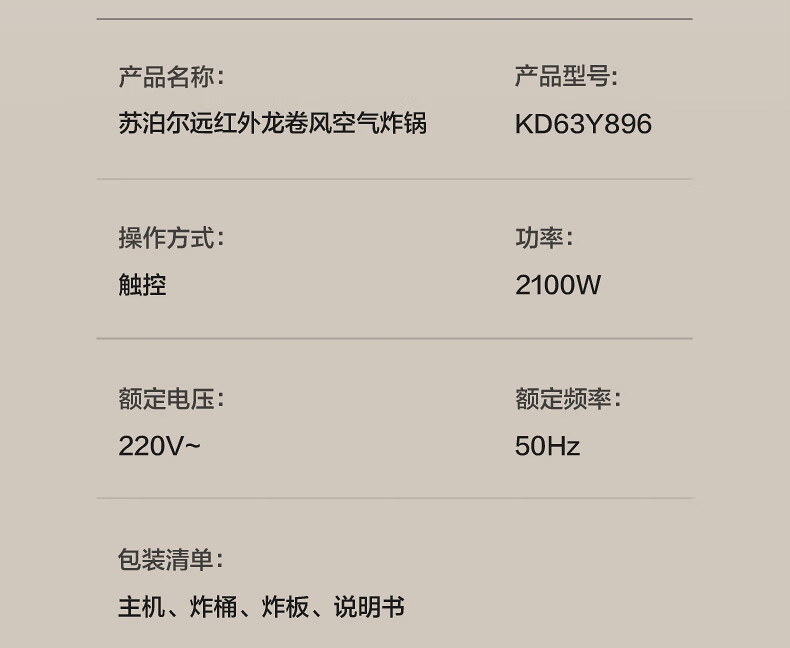 SUPOR air fryer, flip-free household fully automatic tornado, large air volume, far infrared visible 6.3L large capacity, frying and grilling all-in-one air fryer KD63Y896
