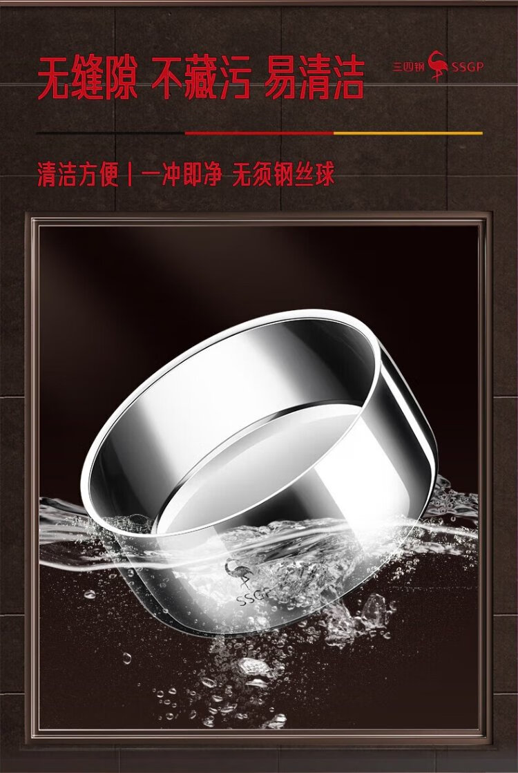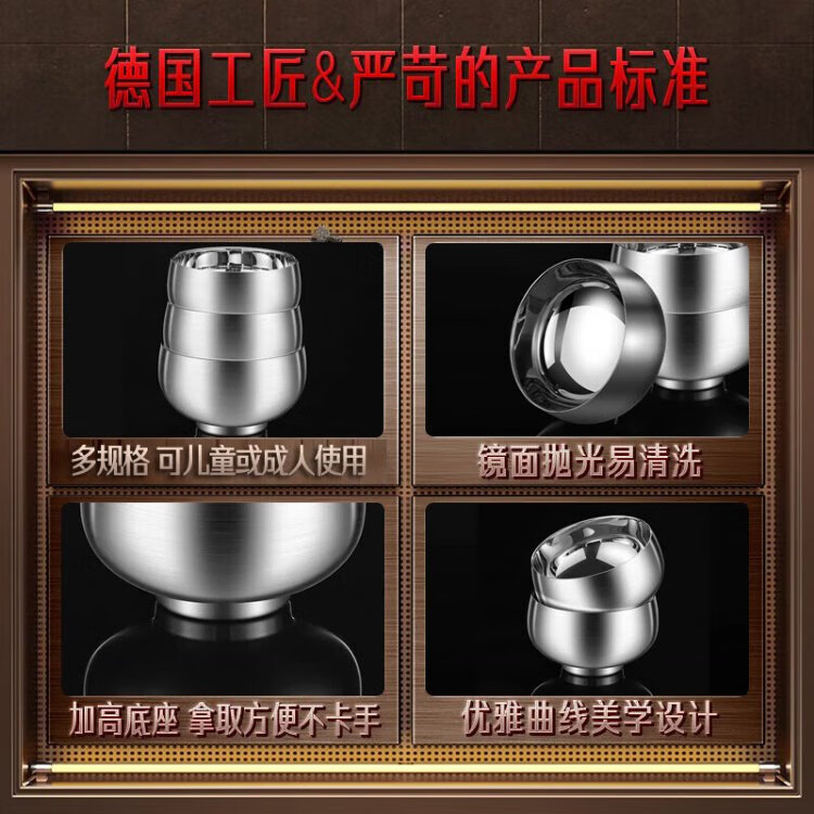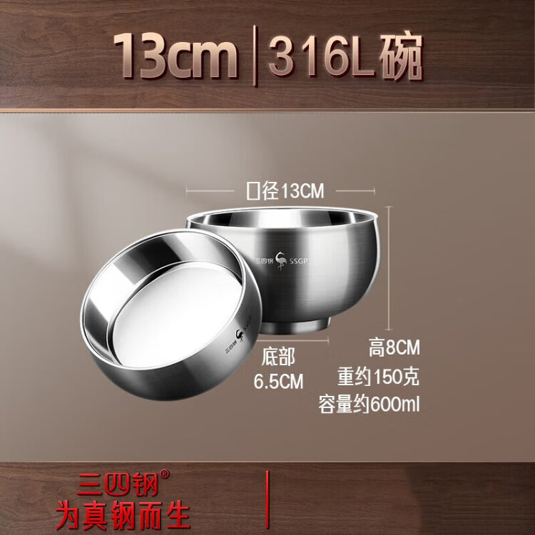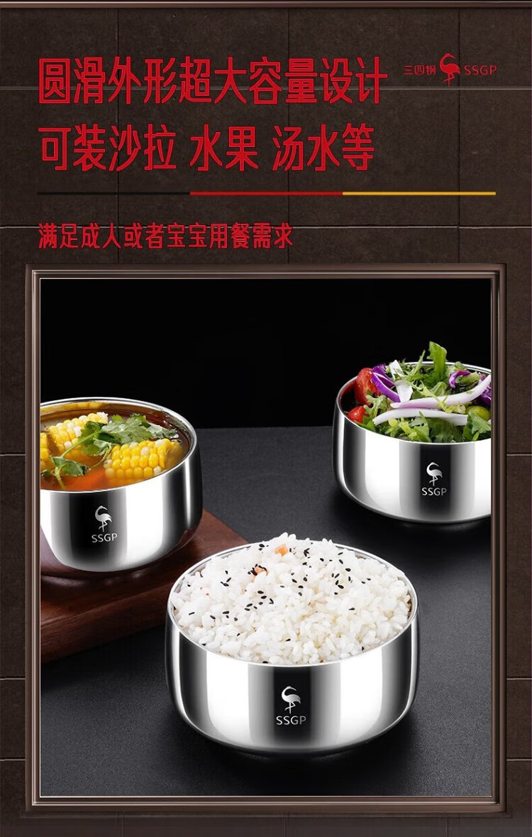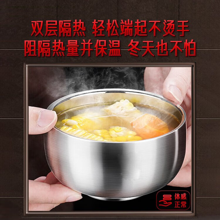 Sansi Steel stainless steel bowl student thickened double-layer anti-scalding rice soup bowl 316 large bowl one pack No. 1 Member Store