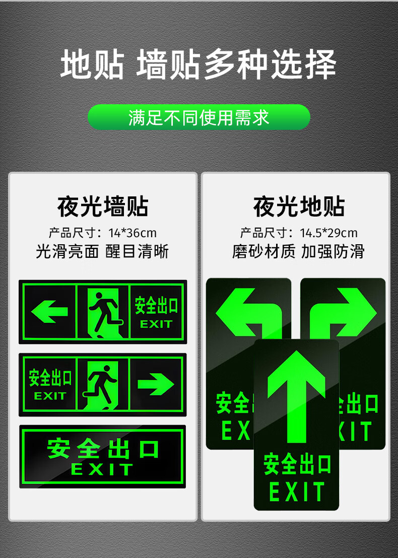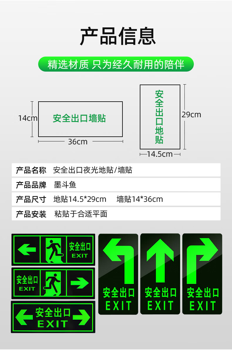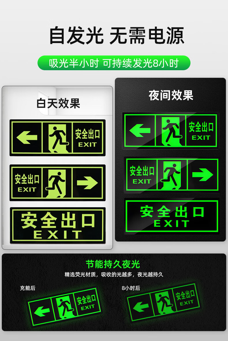 Cuttlefish safety exit left luminous fire emergency evacuation sign 14*36CM PVC warning sign