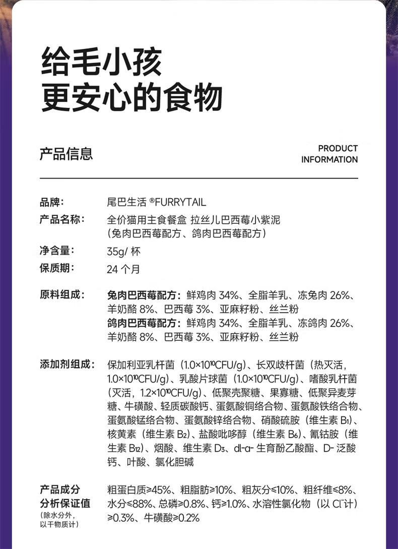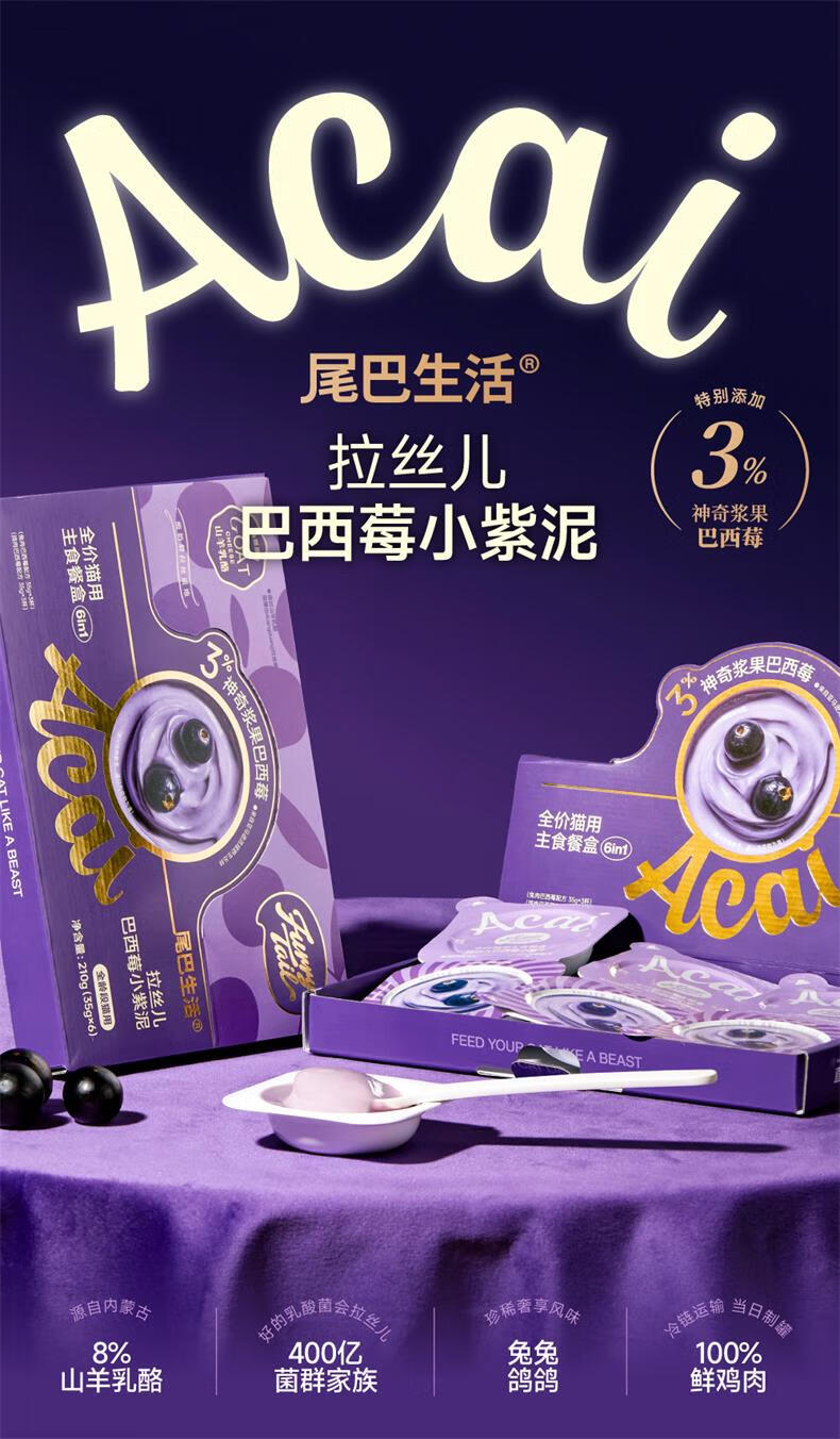 Tails Life Rainbow Mud Acai Berry Purple Mud Staple Food Can 35g*6 Small Gram Cat Wet Food Canned Adult Kitten Staple Food Can