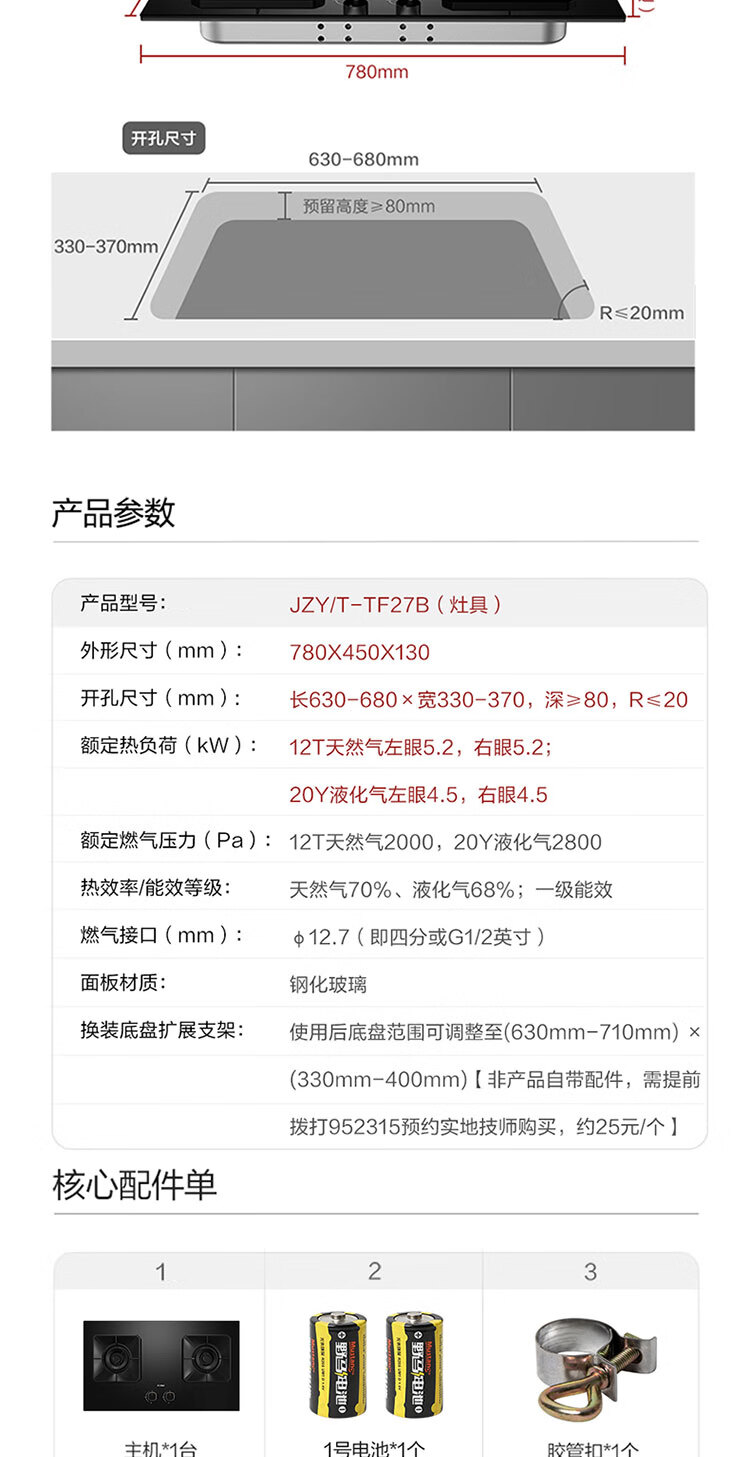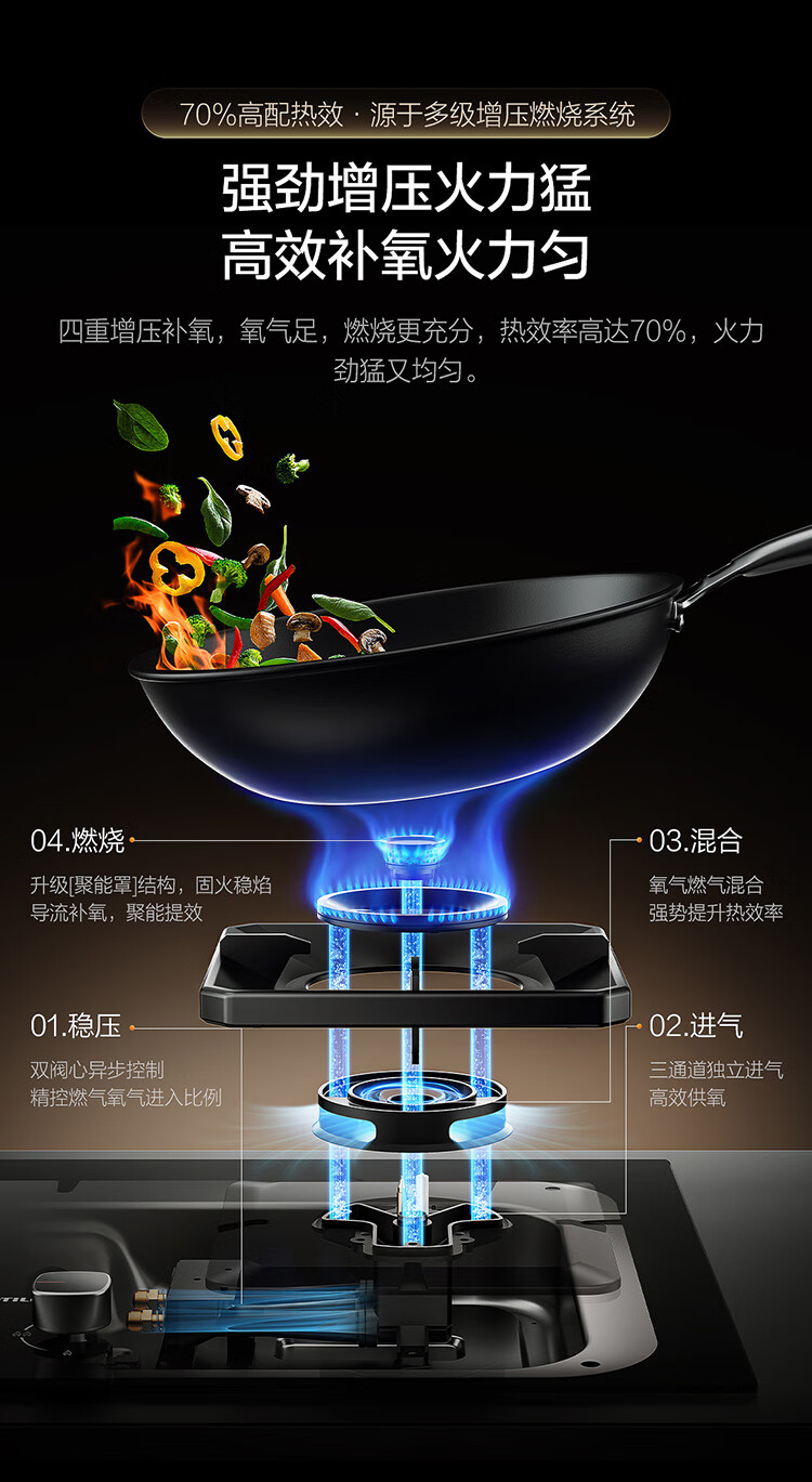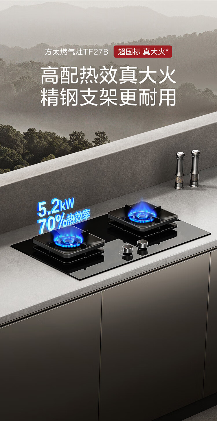 FOTILE newly upgraded 70% thermal efficiency gas stove natural gas home embedded 5.2kW* fierce fire gas stove 70% high thermal efficiency TF27B