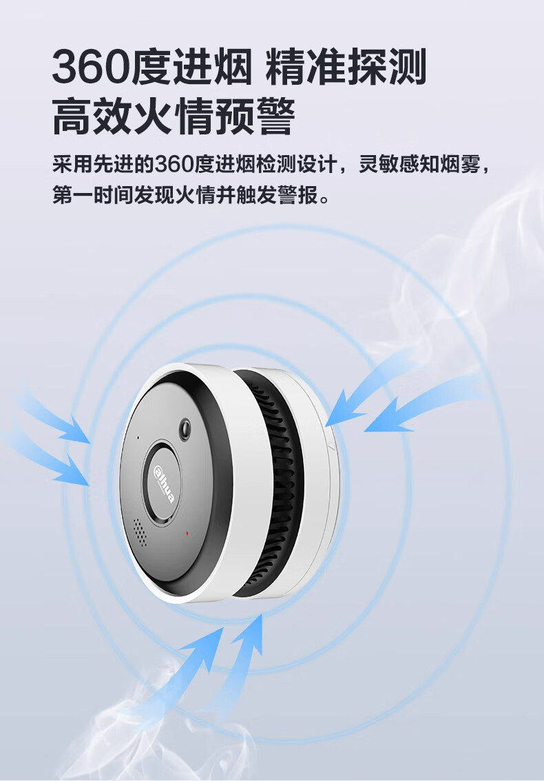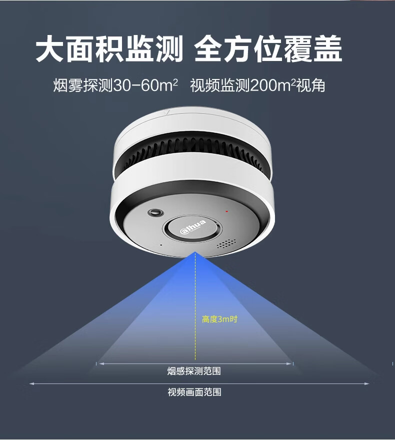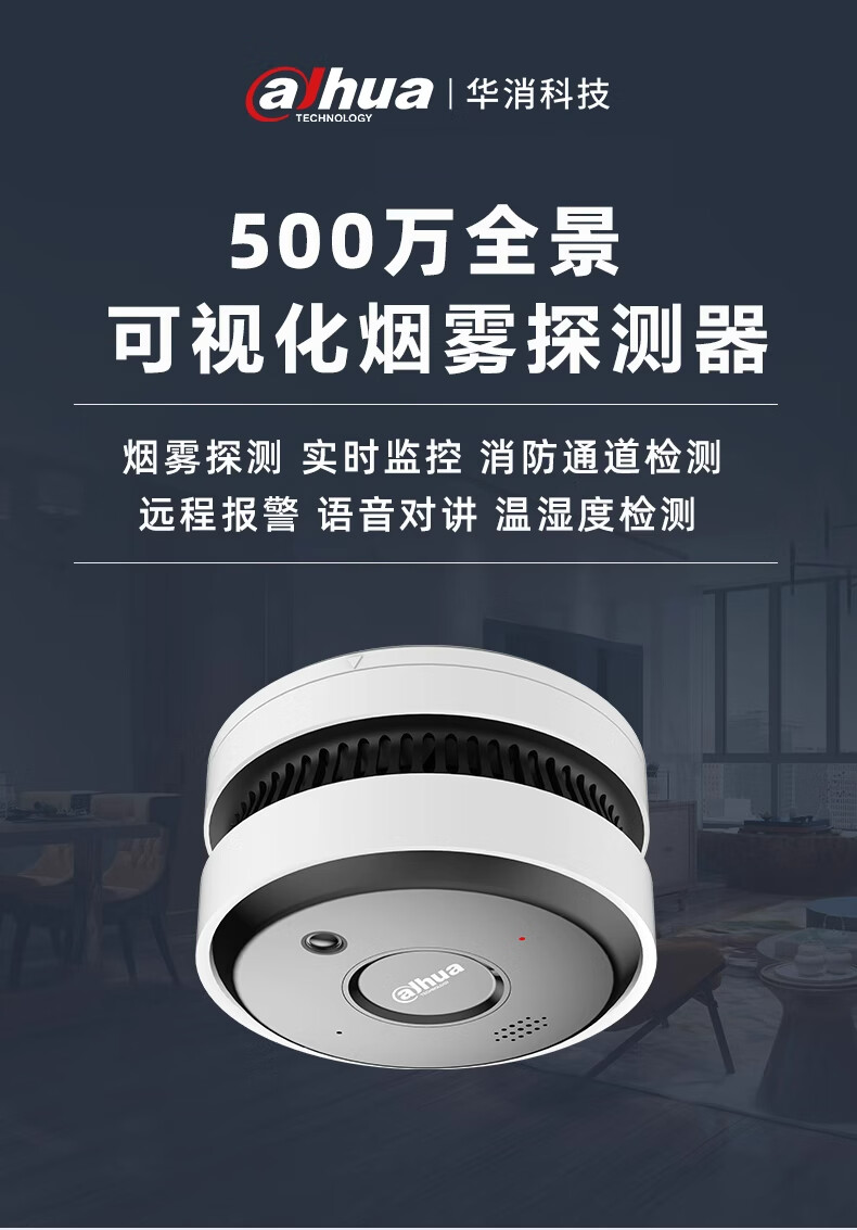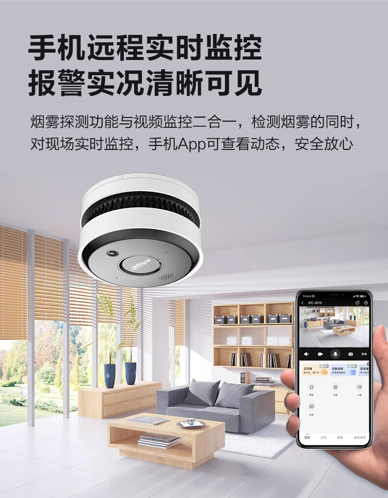Dahuahua Smoke Alarm Detector HD Video Remote Fire 3C Certification National Subsidy Monitoring Power Outage Available Networking One-Key Alarm Fire Alarm Monitor National Subsidy SAV849HA