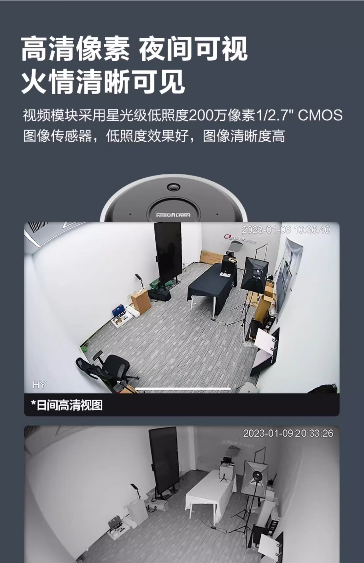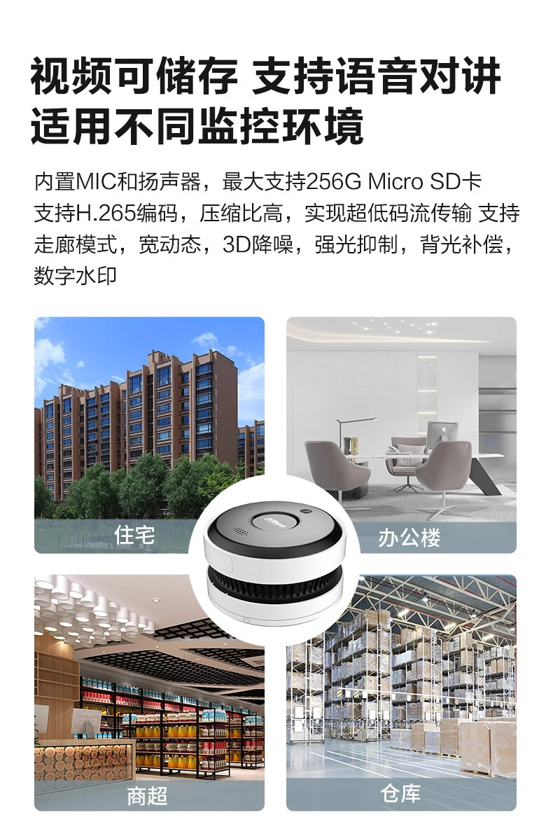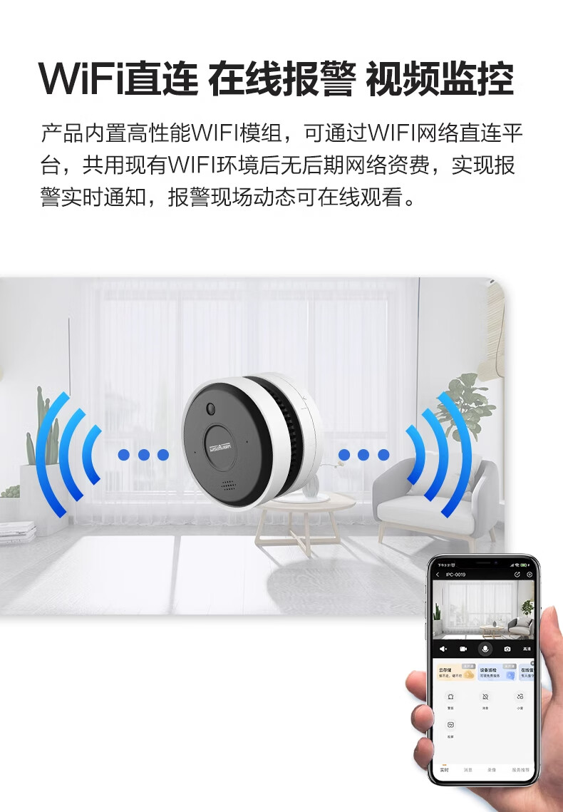 Dahuahua Smoke Alarm Detector HD Video Remote Fire 3C Certification National Subsidy Monitoring Power Outage Available Networking One-Key Alarm Fire Alarm Monitor National Subsidy SAV849HA