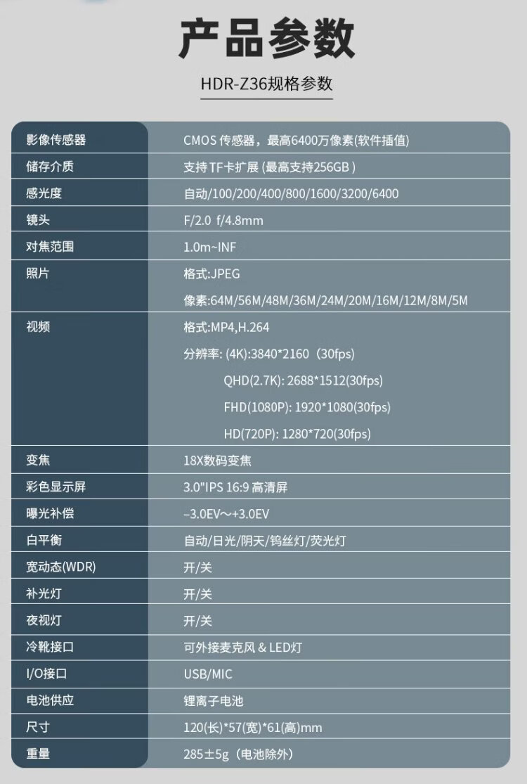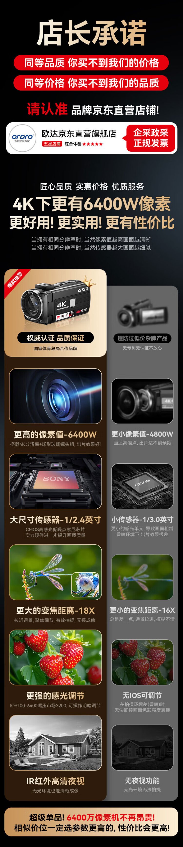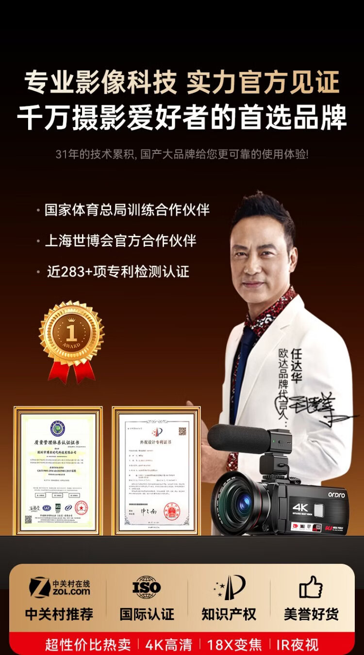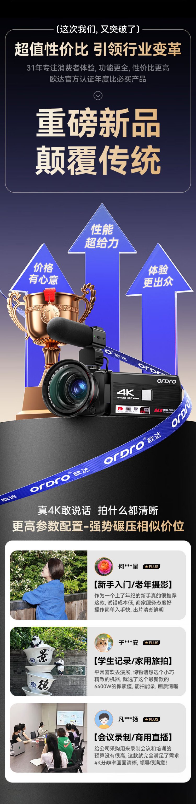 ORDRO Z36 4K HD camera handheld dv digital video recorder 6400W portable vlog short video home travel photography professional anti-shake camcorder infrared night vision