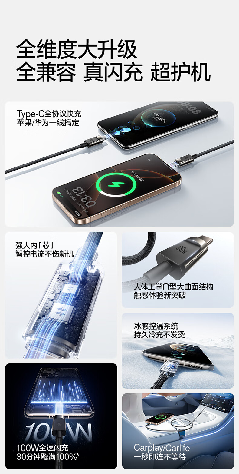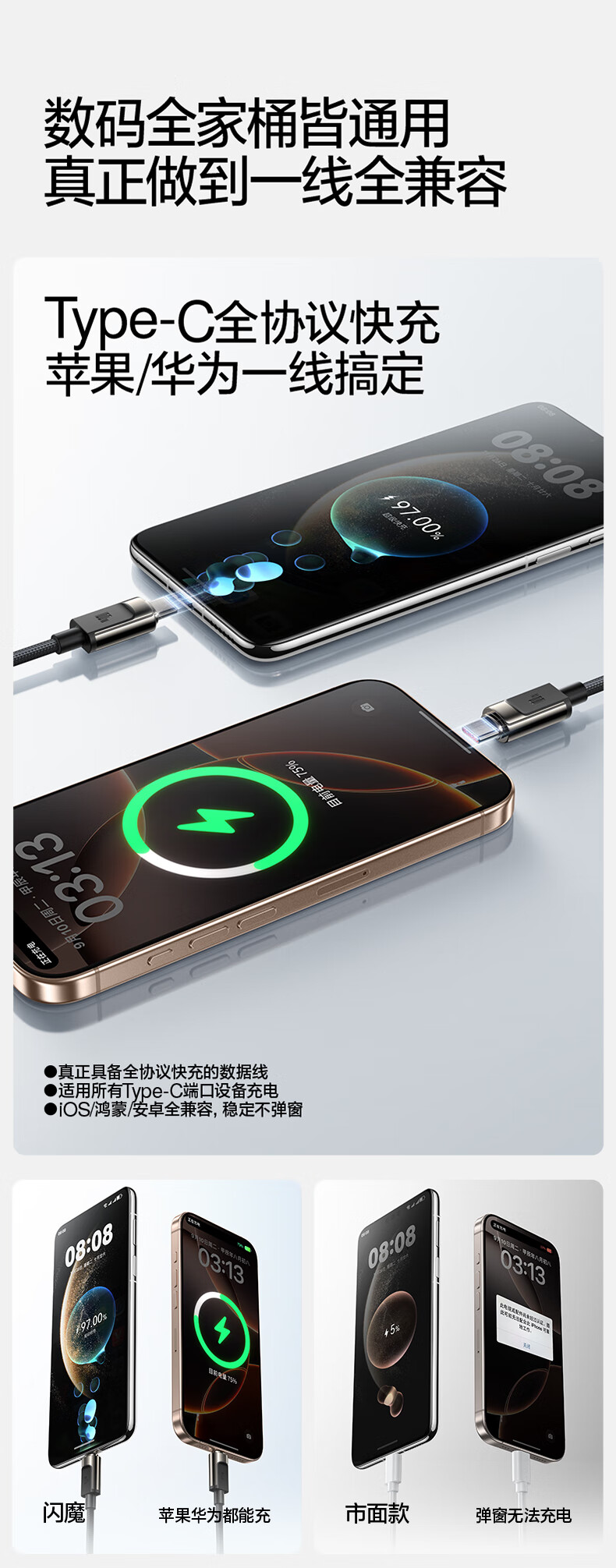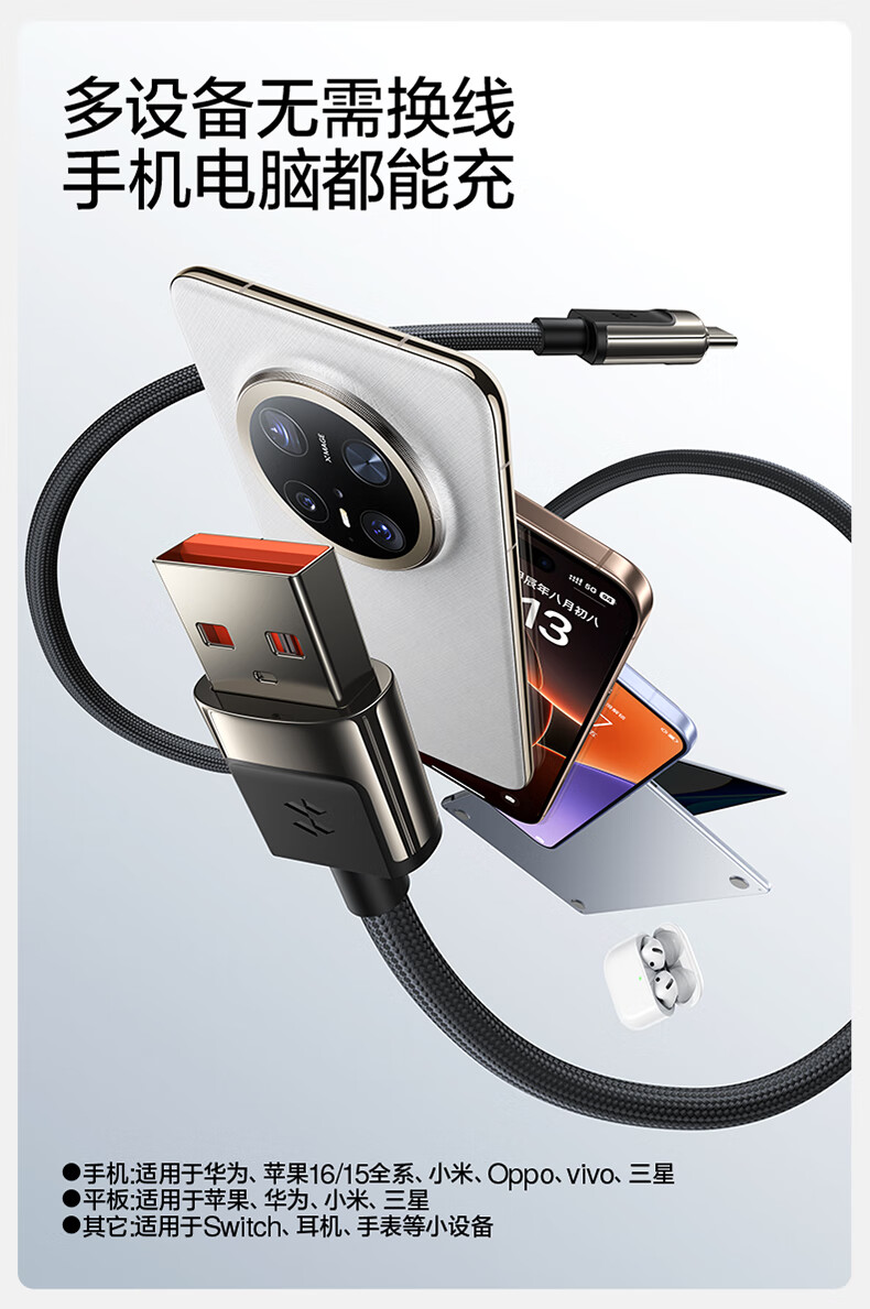 Flash Magic Type-C data cable 6A/5A charging cable 100W/66W suitable for Huawei Mate70/60/50/40 full series Honor Xiaomi Android phone 2m