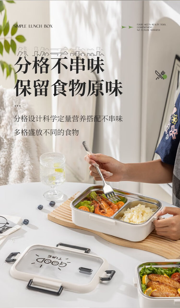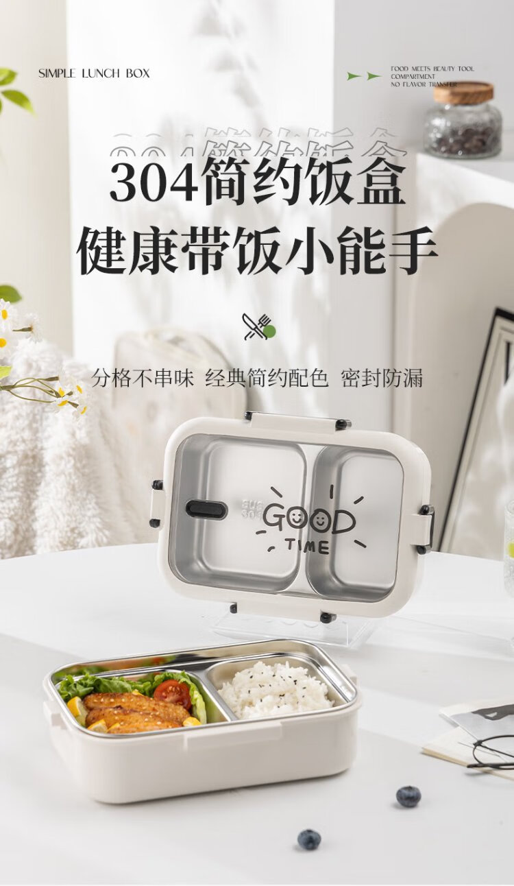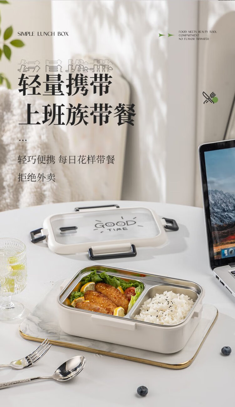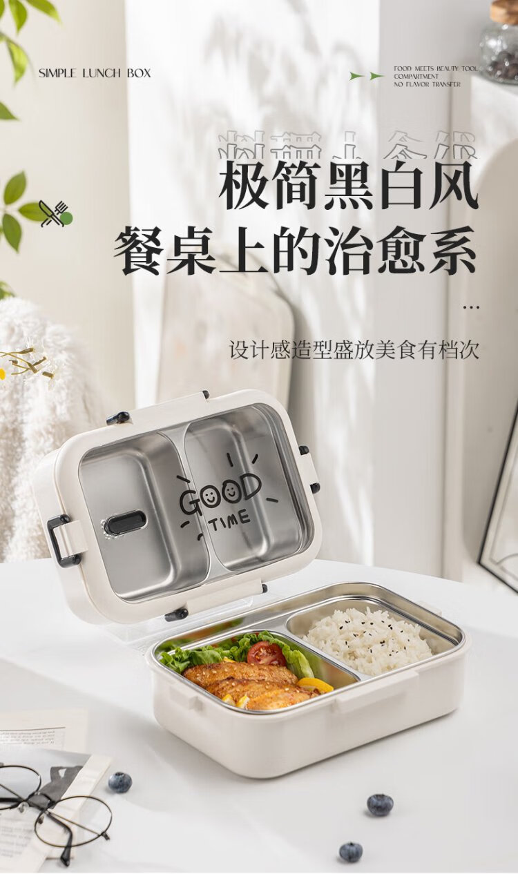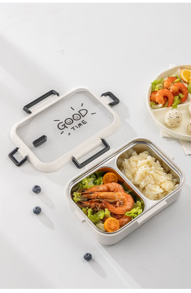 Guangyi 304 stainless steel lunch box for primary school students, office workers, children’s lunch box, 2-grid simple style GY1252