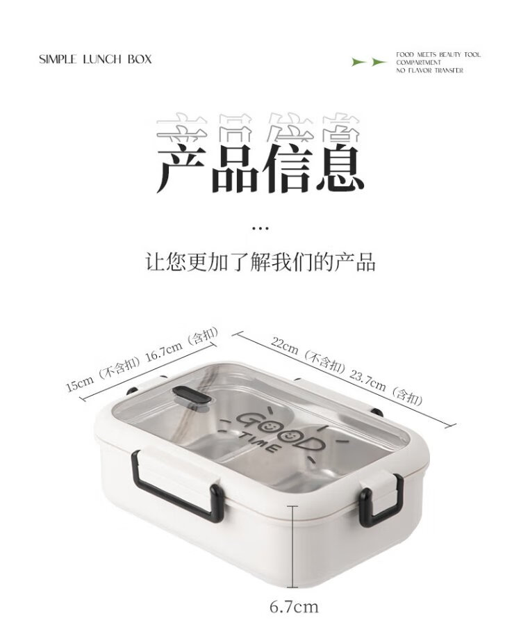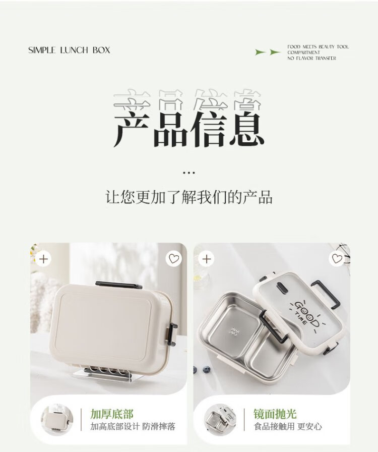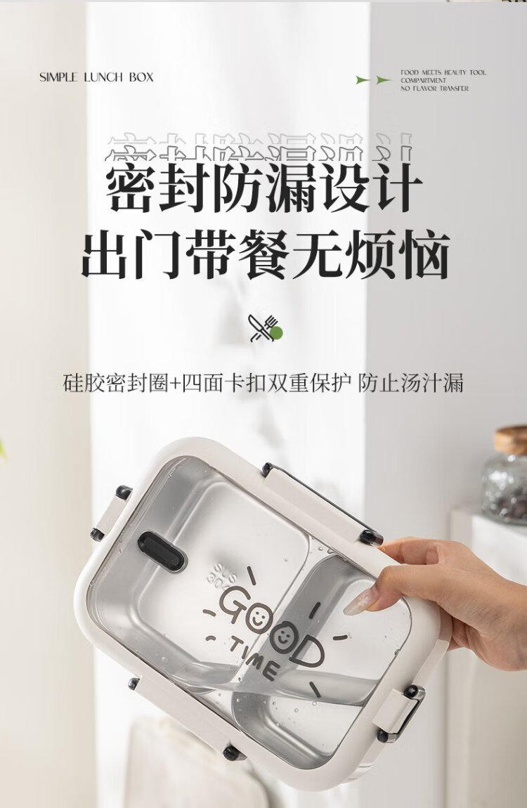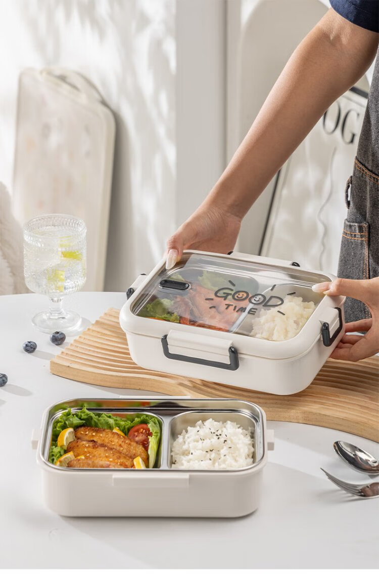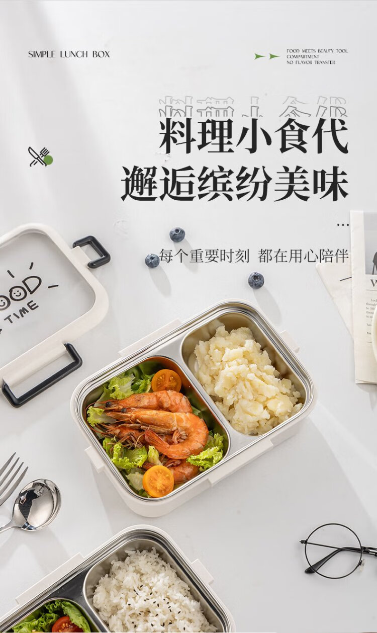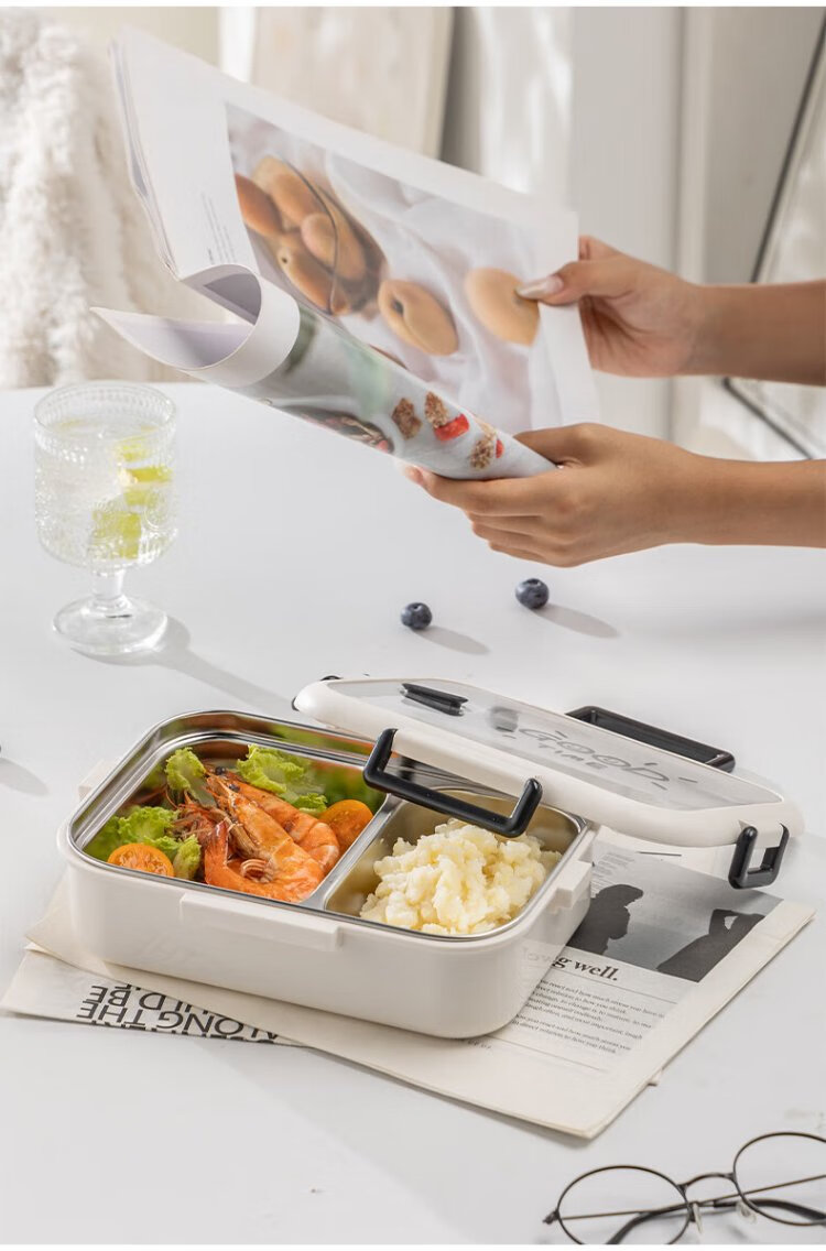 Guangyi 304 stainless steel lunch box for primary school students, office workers, children’s lunch box, 2-grid simple style GY1252
