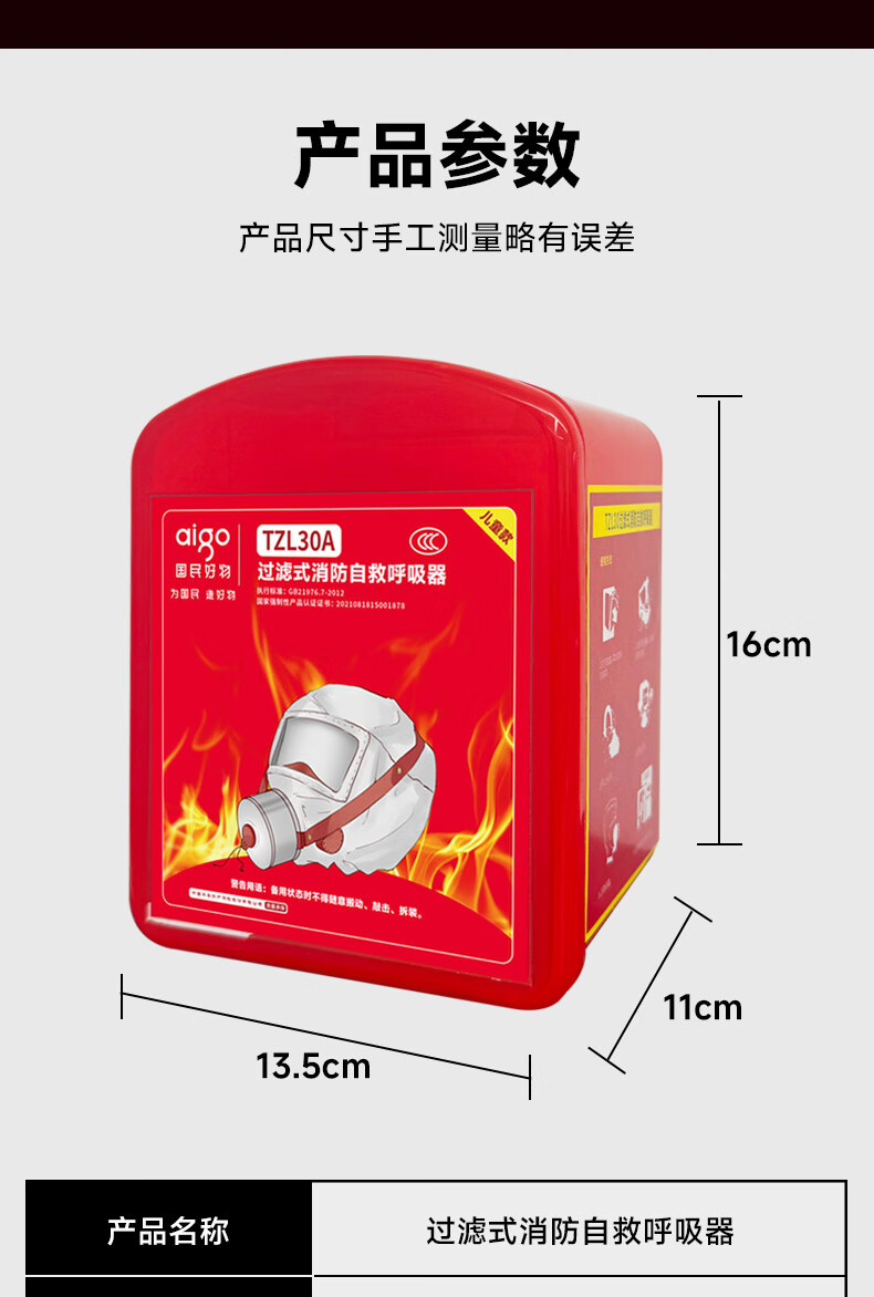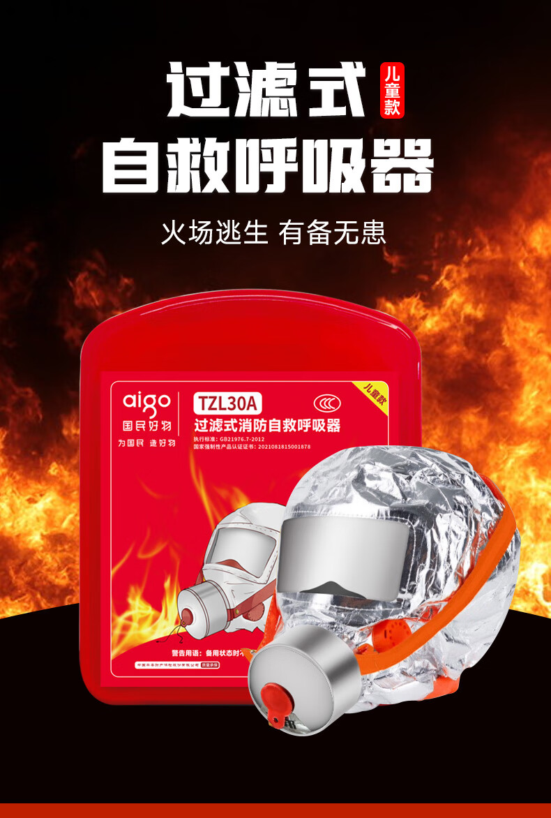 Patriot (aigo) gas mask, smoke mask, fire protection 3C certified escape filter self-rescue respirator TZL30 children's model
