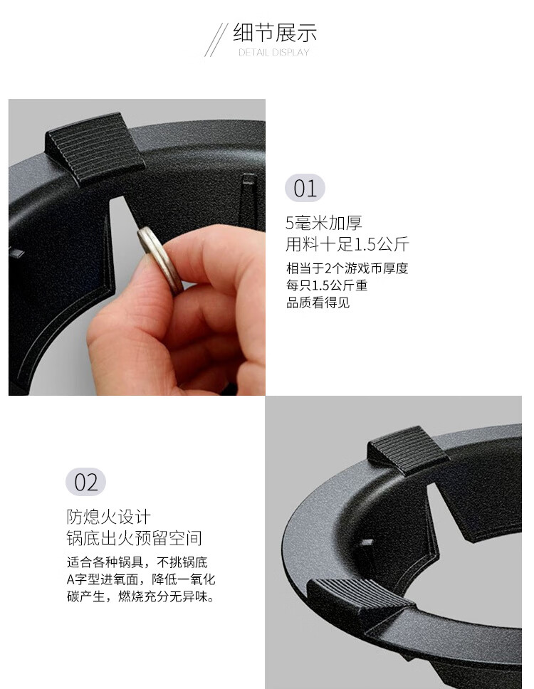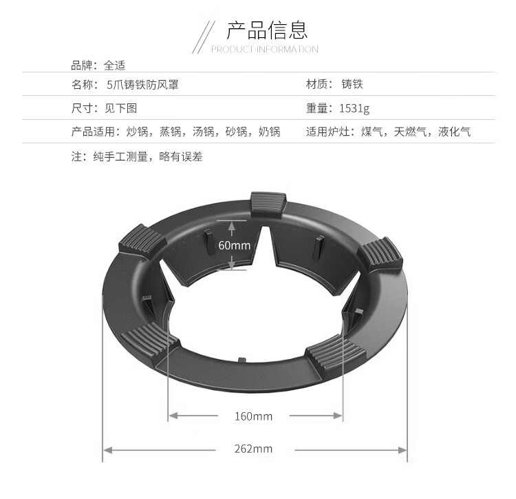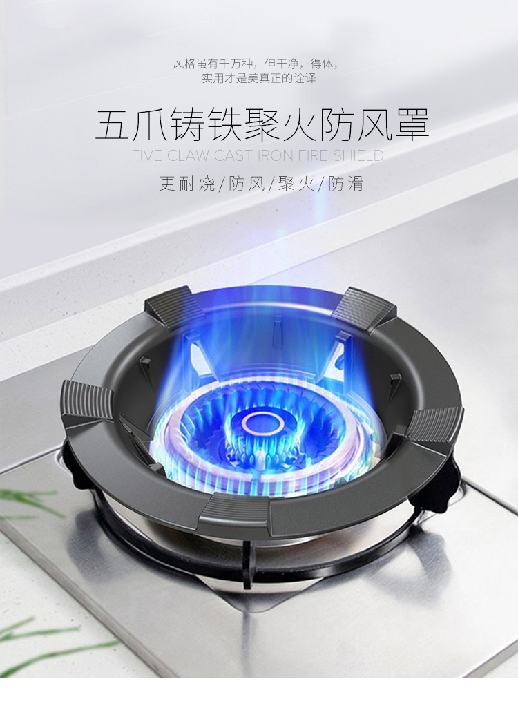 Fully suitable heavy-duty cast iron gas stove flame hood gas stove windproof energy-saving hood pot rack five-claw universal stove anti-slip bracket