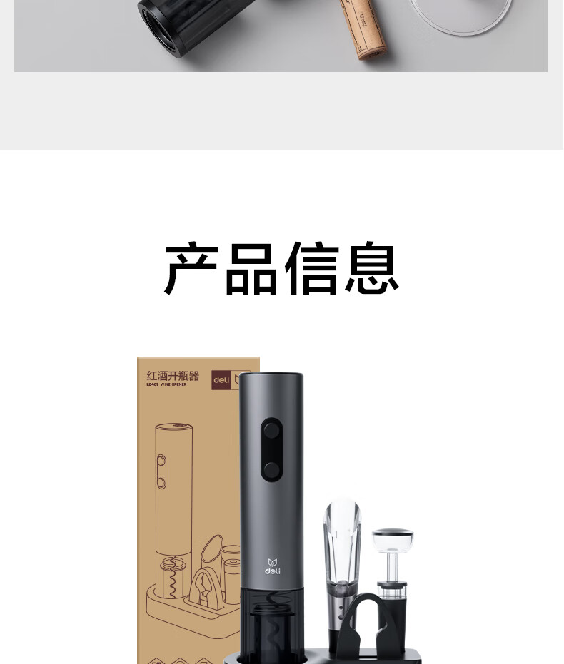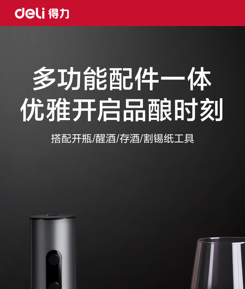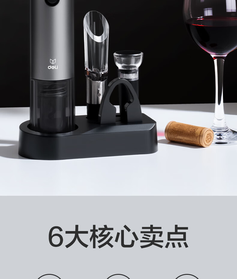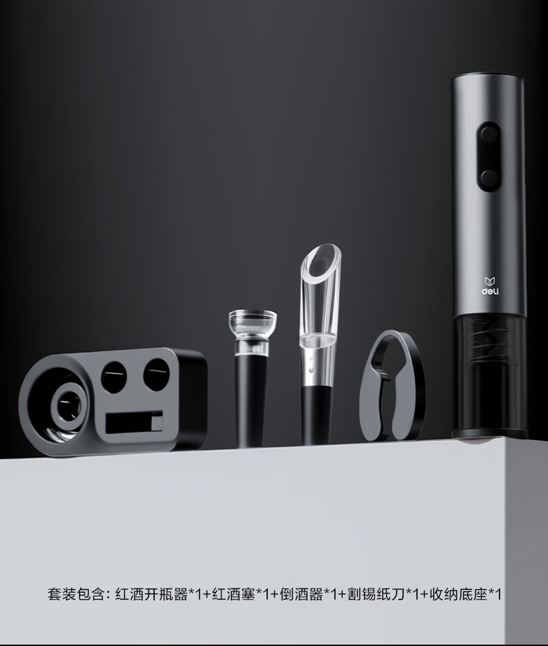 Deli electric wine bottle opener home wine opener bottle opener wine pourer 5-in-1 set