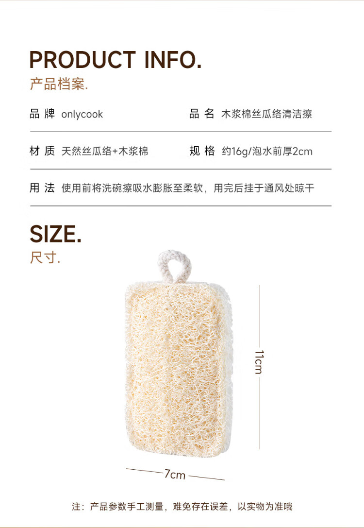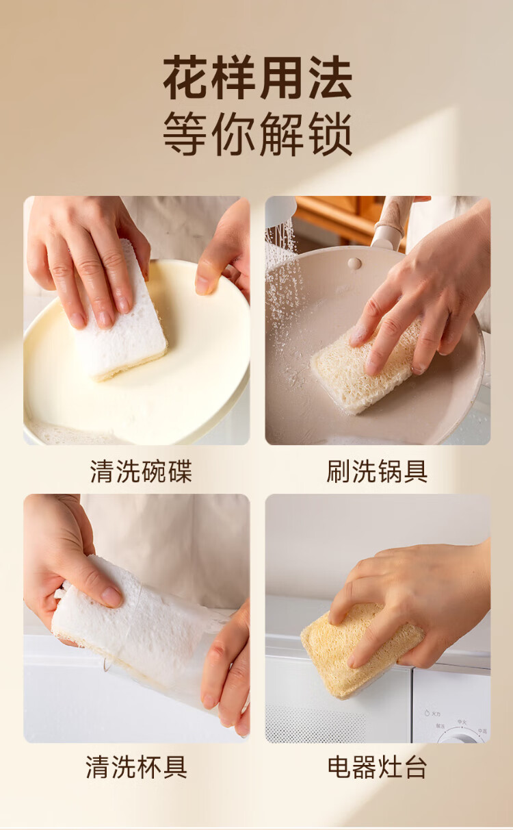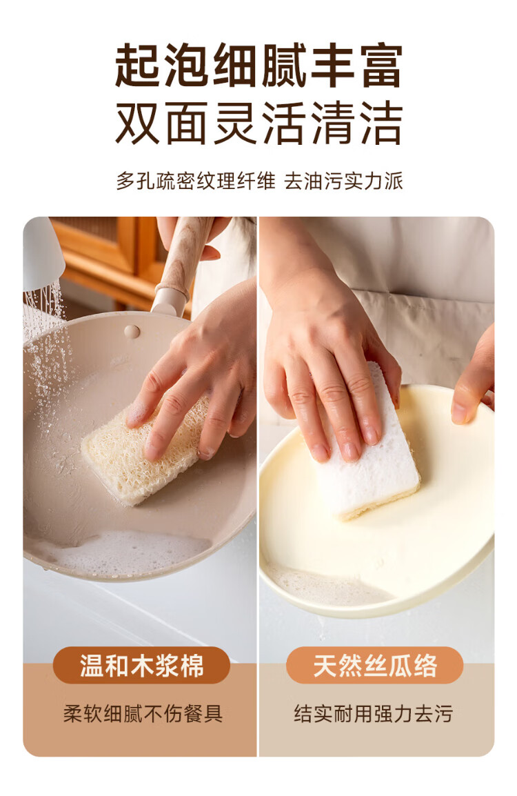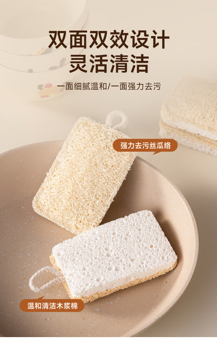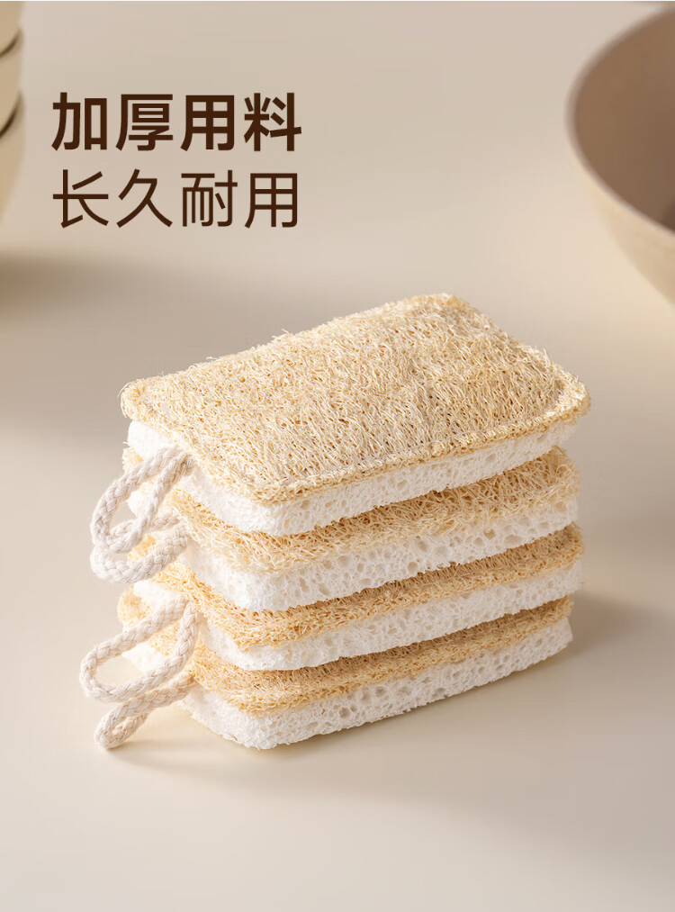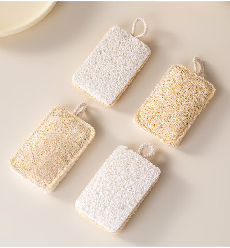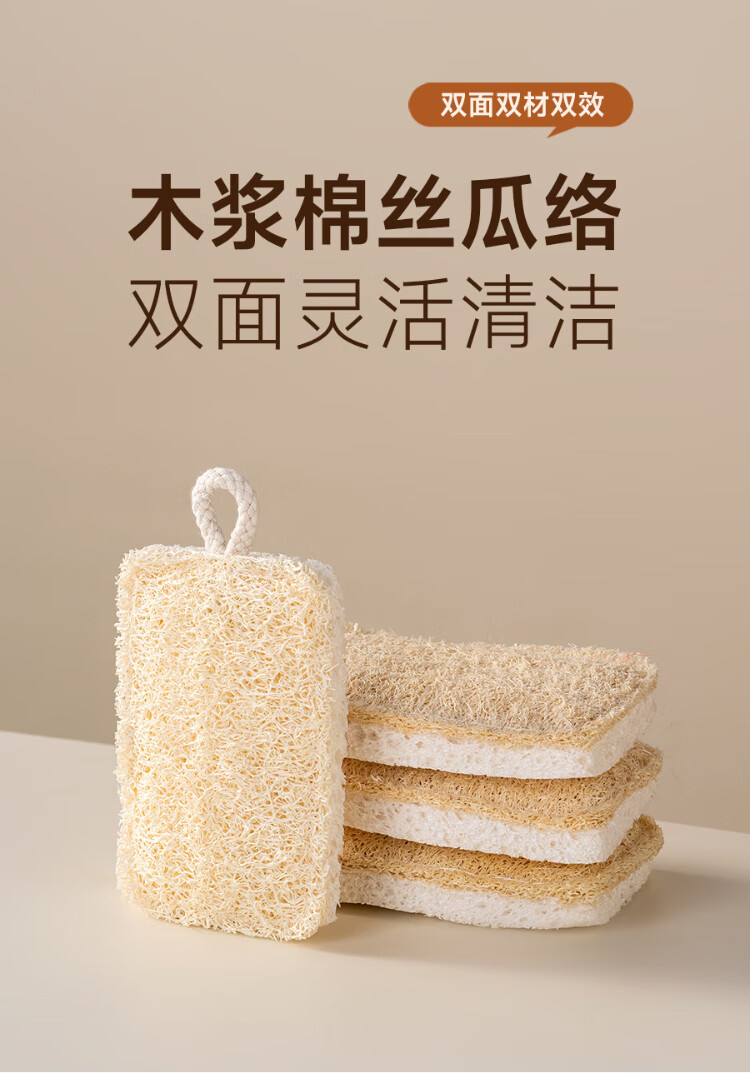 Onlycook wood pulp cotton loofah double-sided dishwashing wipe kitchen scrub pot cleaning sponge wipe magic wipe scouring pad-4 pack