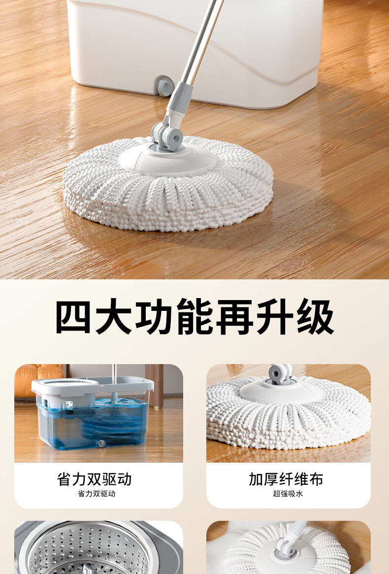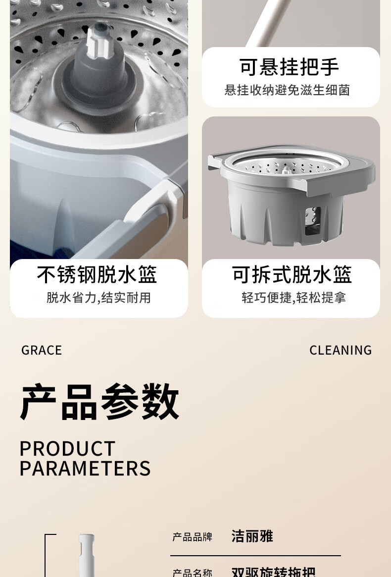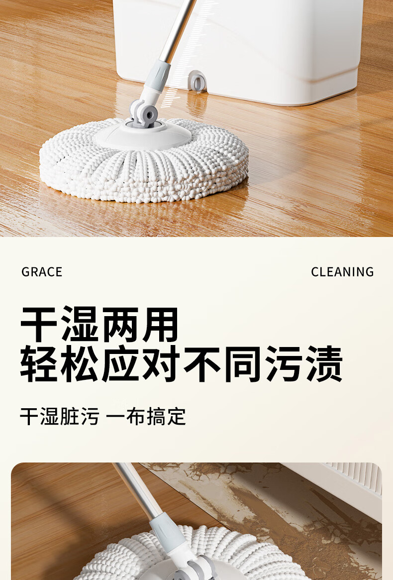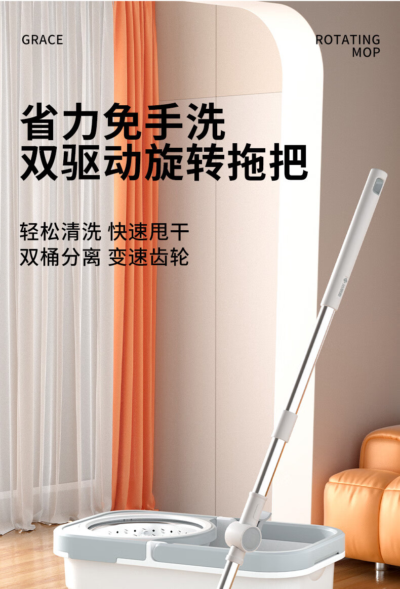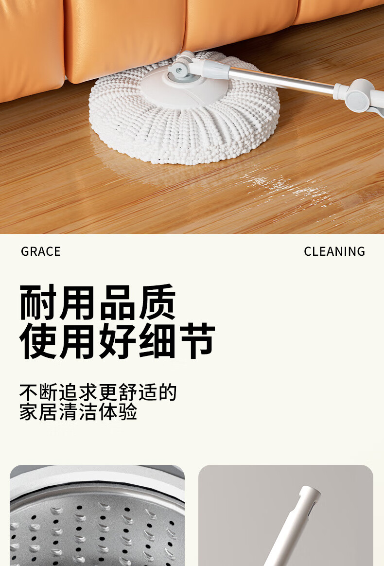 Jieliya rotating mop with 2 mops in total, dual drive, tile and wood floor cleaning and mopping, household one mop
