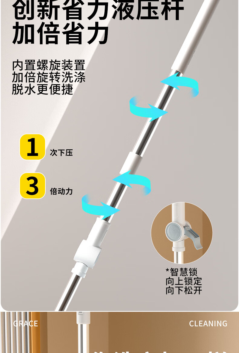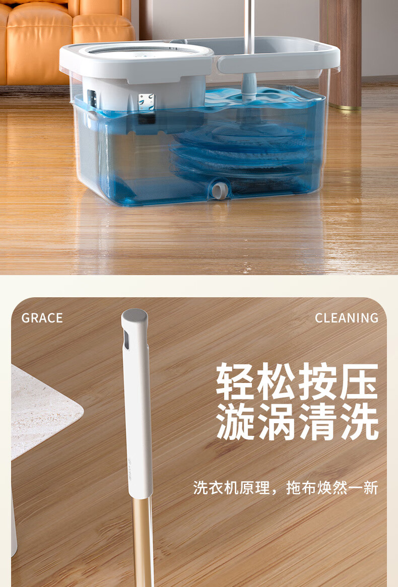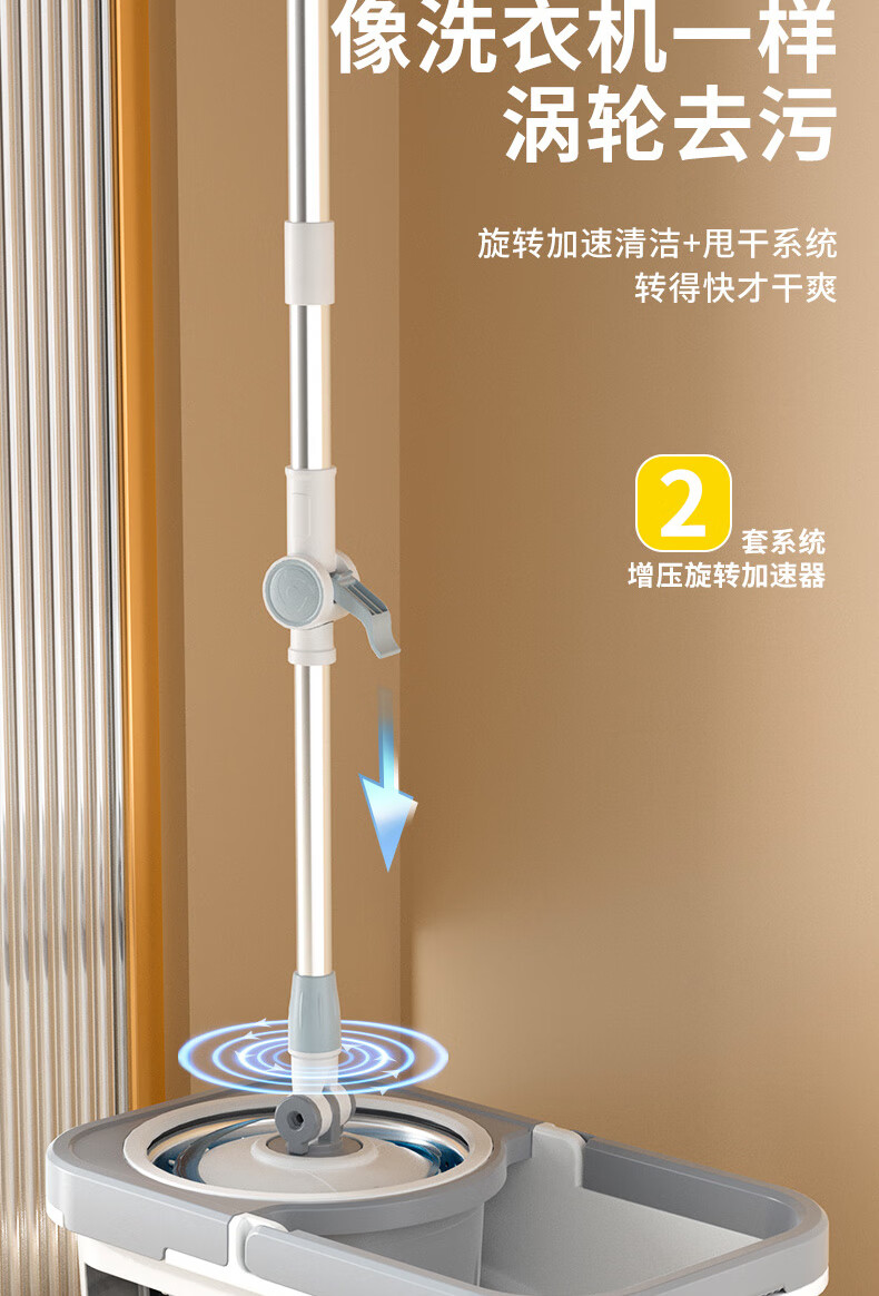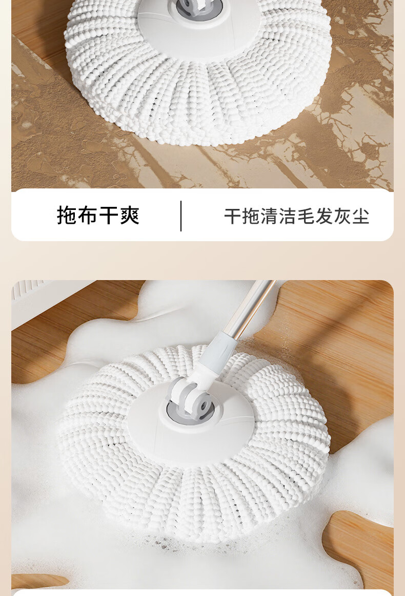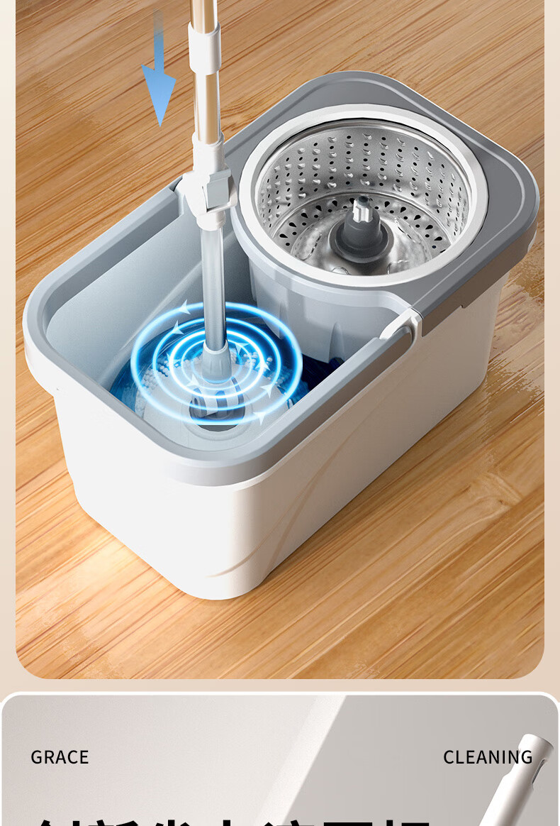 Jieliya rotating mop with 2 mops in total, dual drive, tile and wood floor cleaning and mopping, household one mop