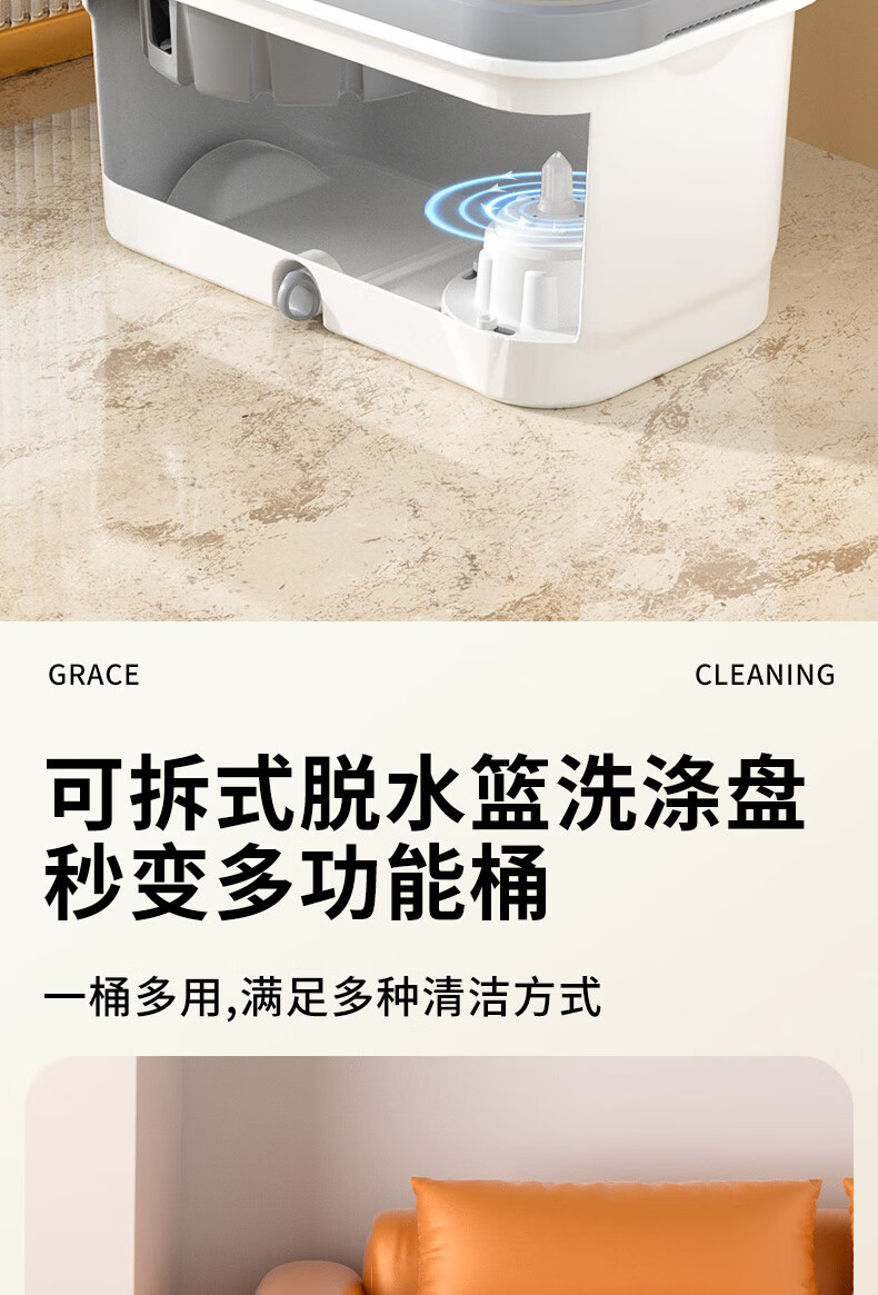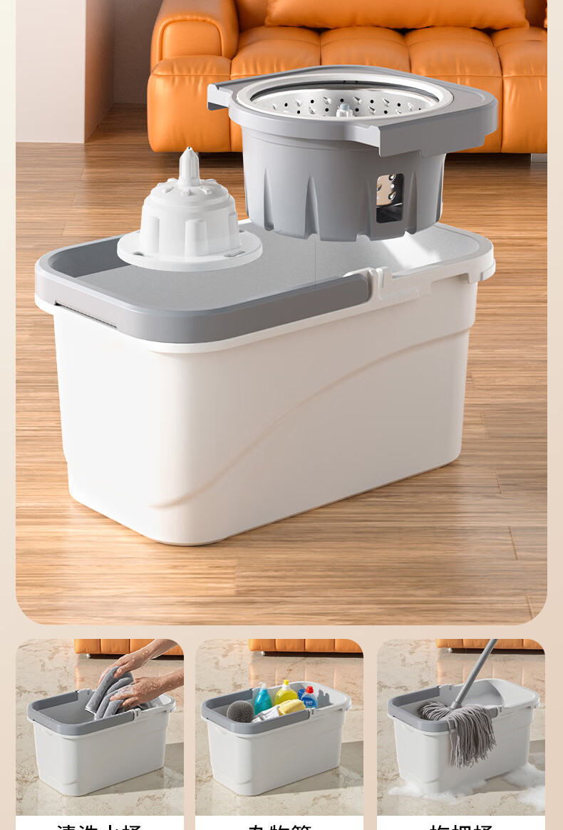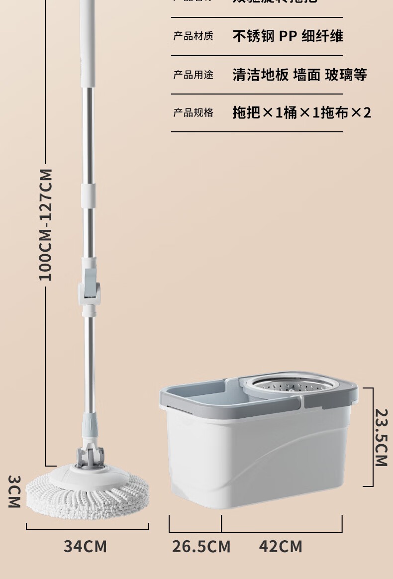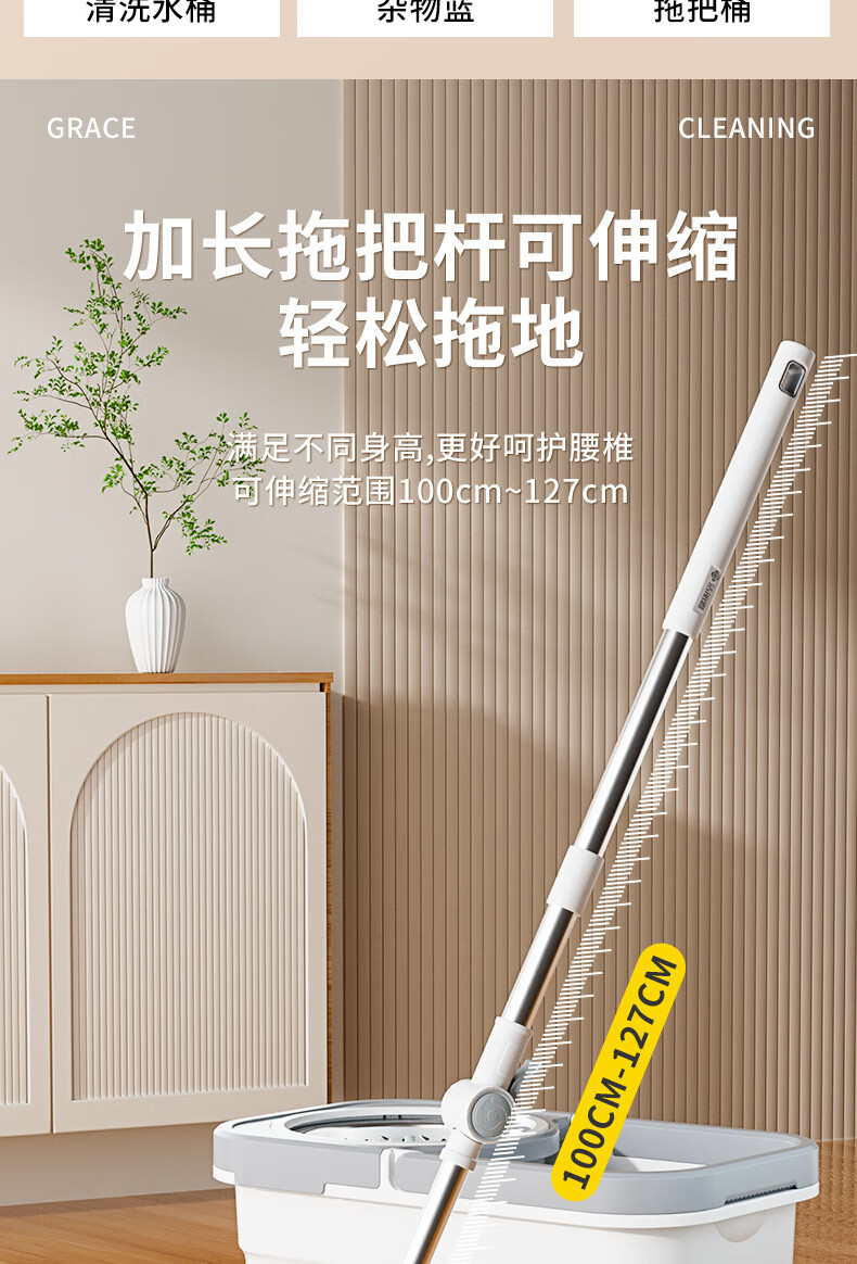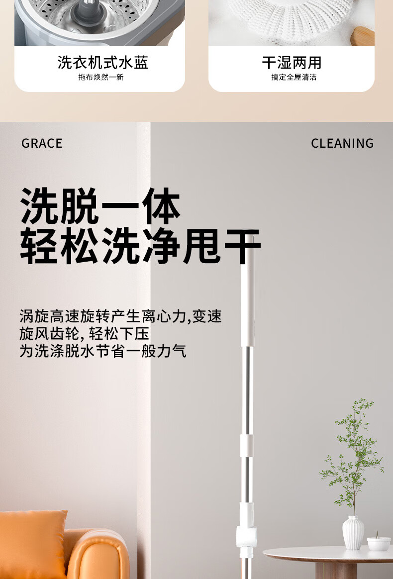 Jieliya rotating mop with 2 mops in total, dual drive, tile and wood floor cleaning and mopping, household one mop