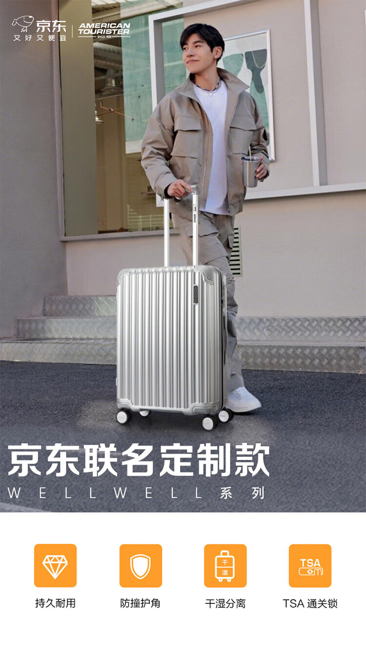 Meitu trolley case JD.com co-branded customized suitcase lightweight password box NL7 silver 20 inches