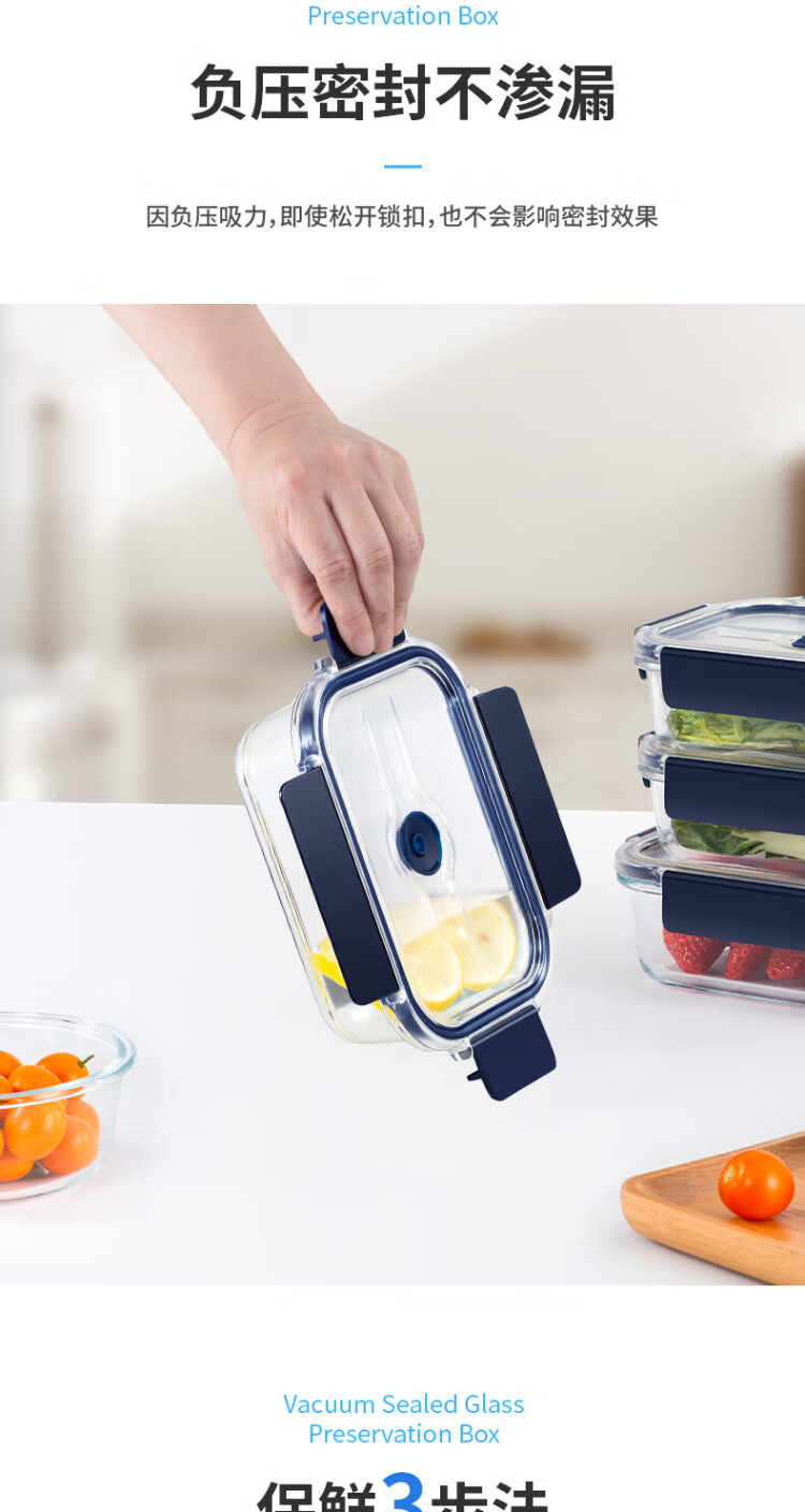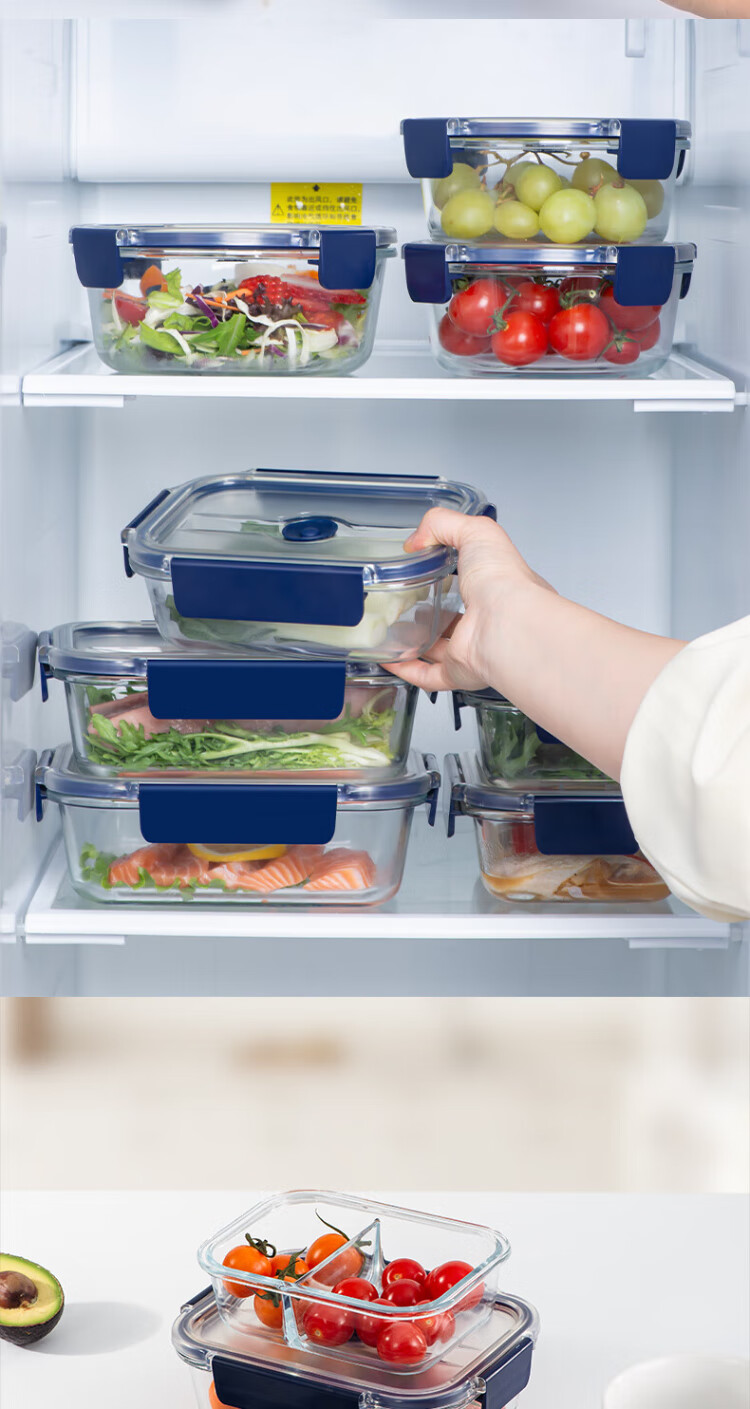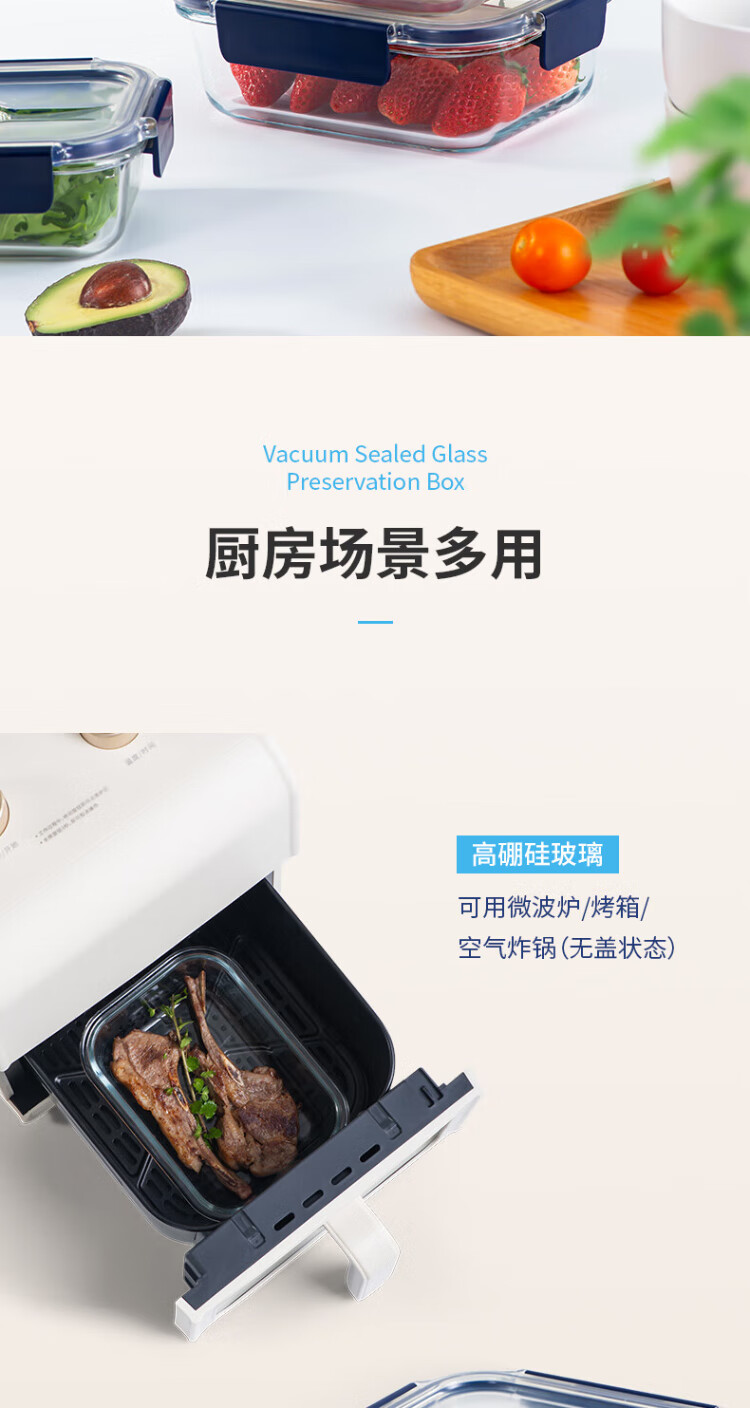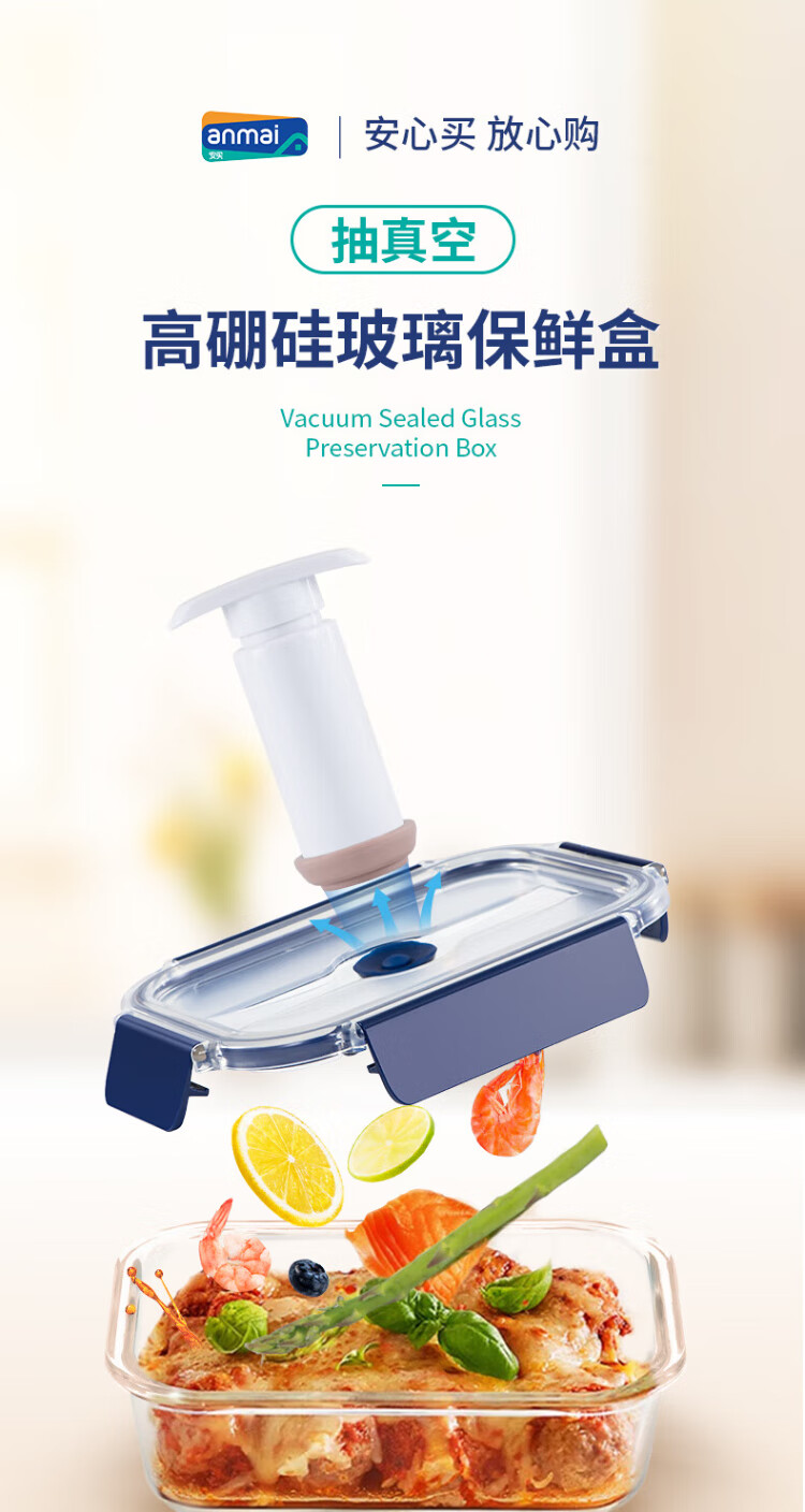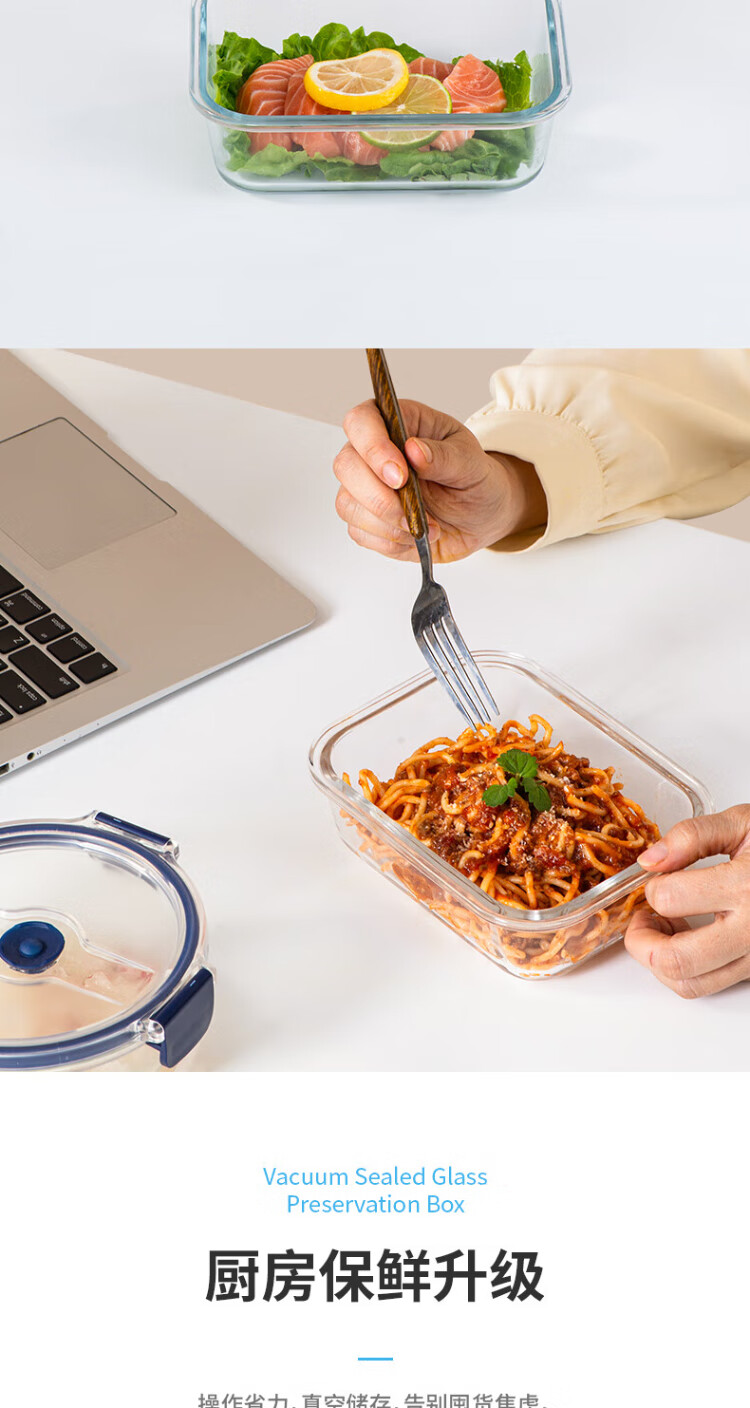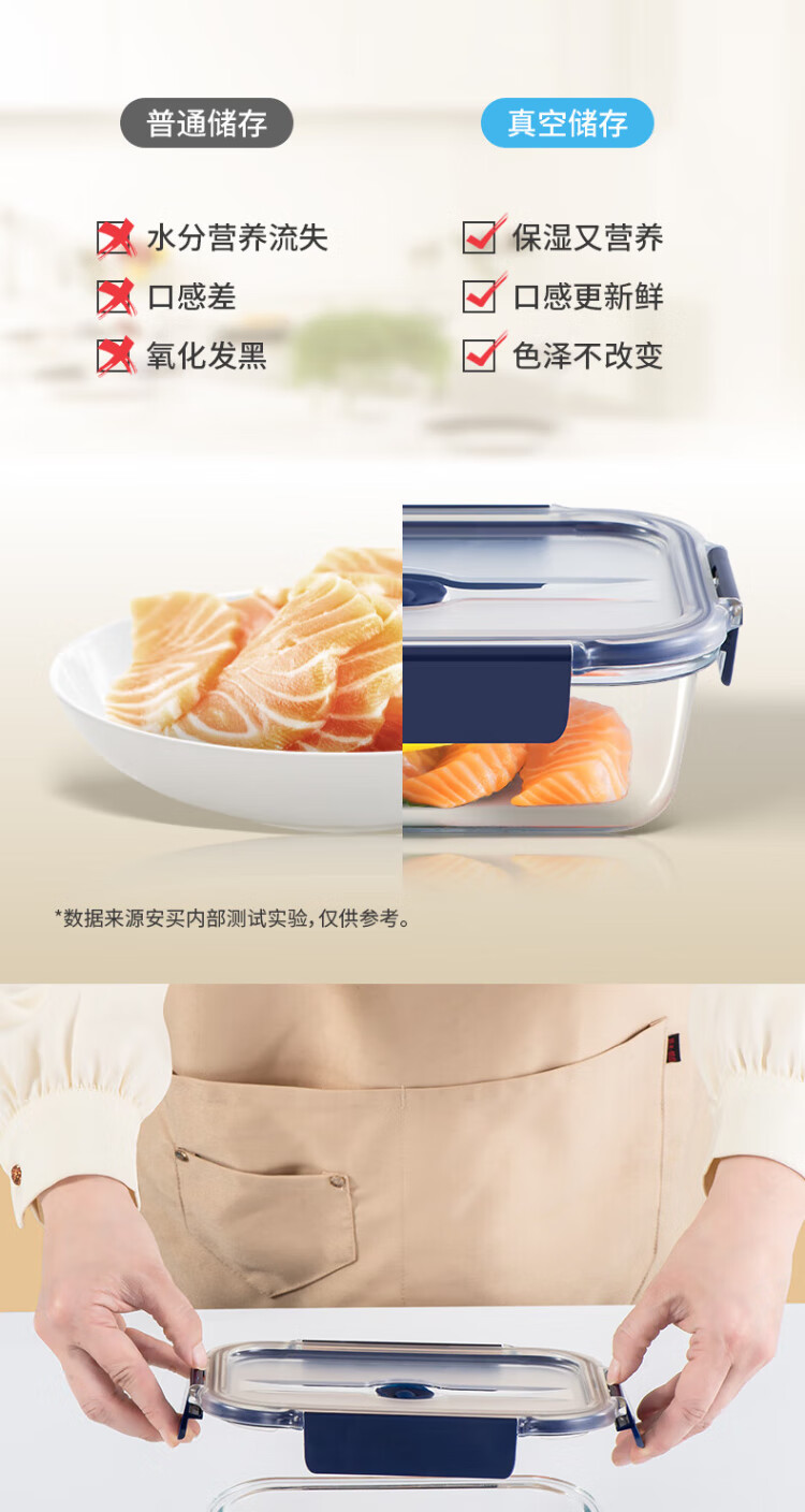 Anbuy vacuum borosilicate glass storage box 1.05L refrigerator storage box heat-resistant lunch box sealed lunch box