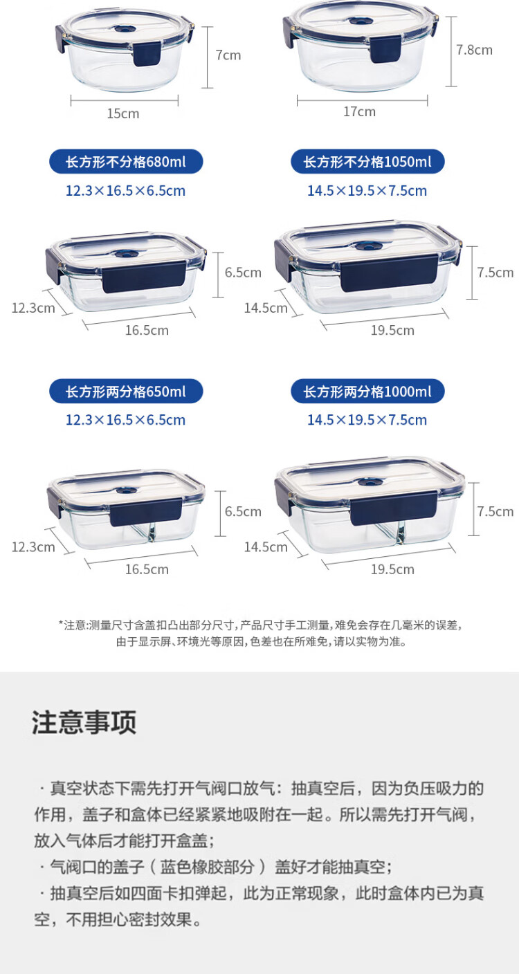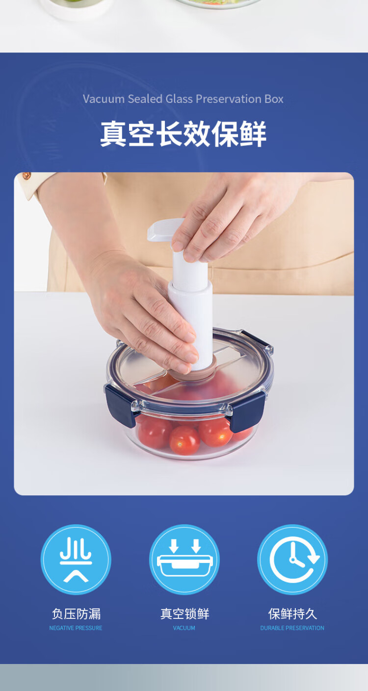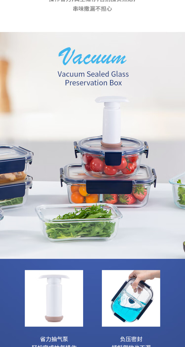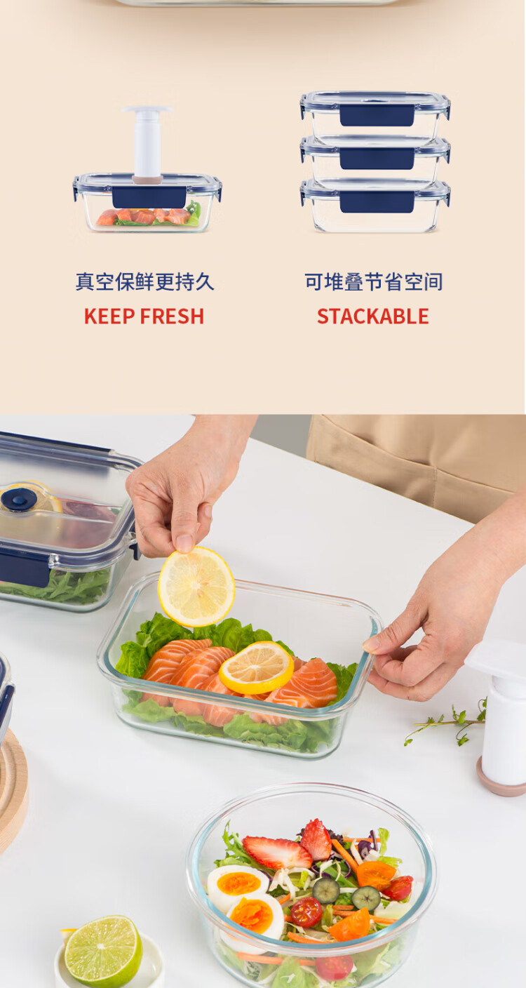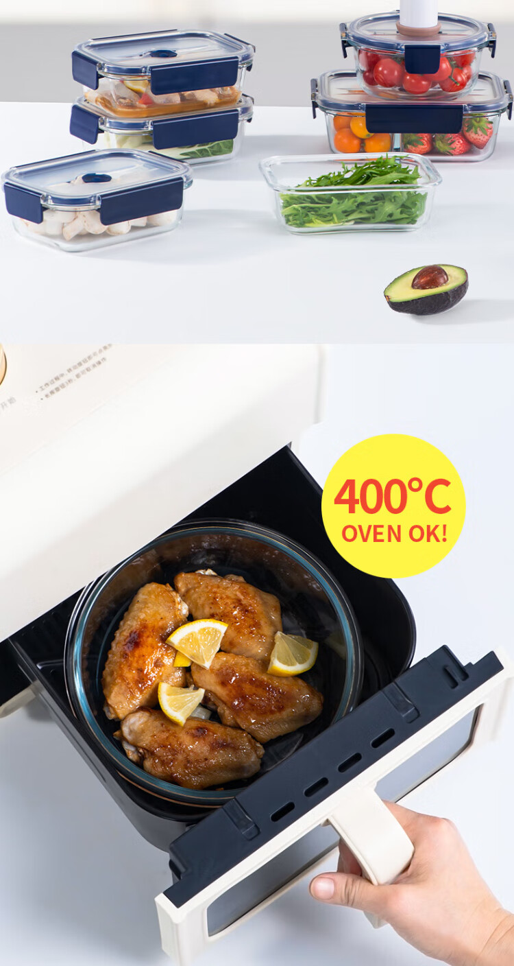 Anbuy vacuum borosilicate glass storage box 1.05L refrigerator storage box heat-resistant lunch box sealed lunch box