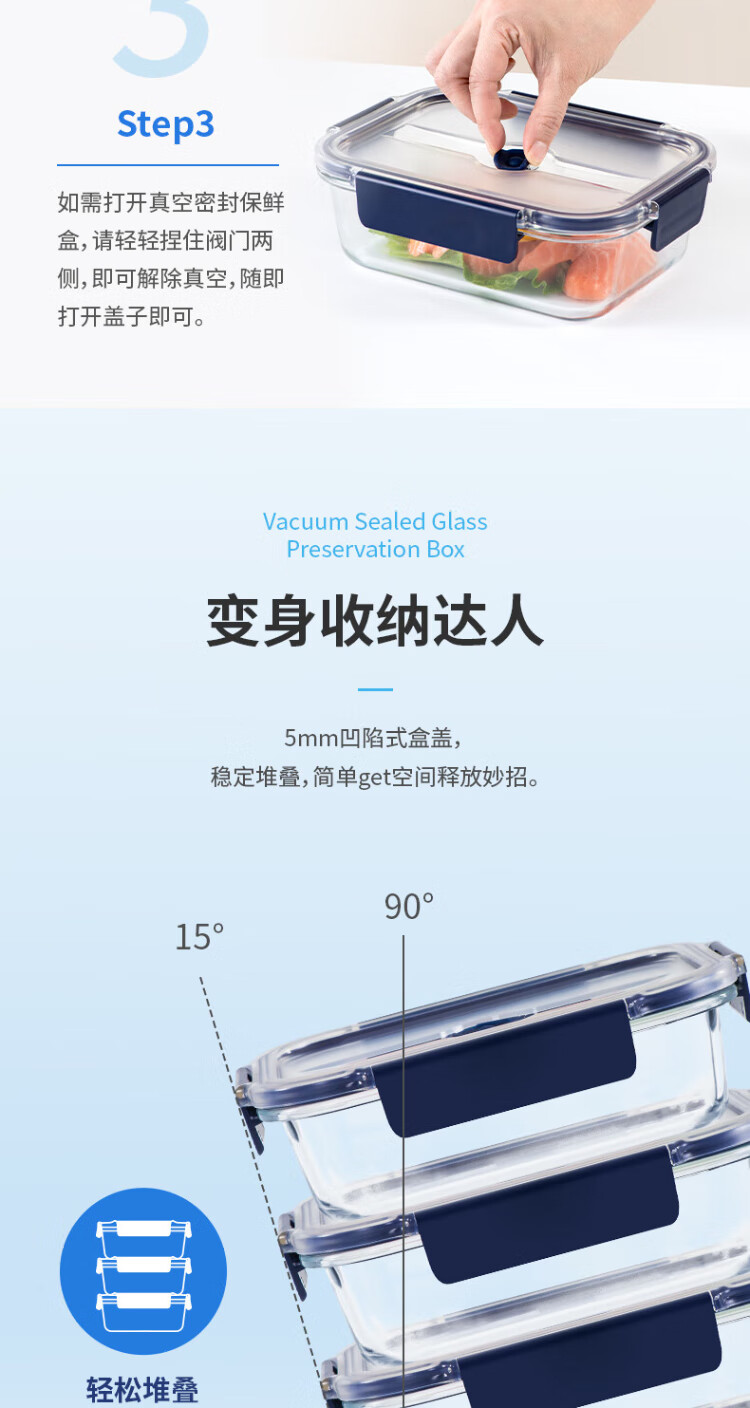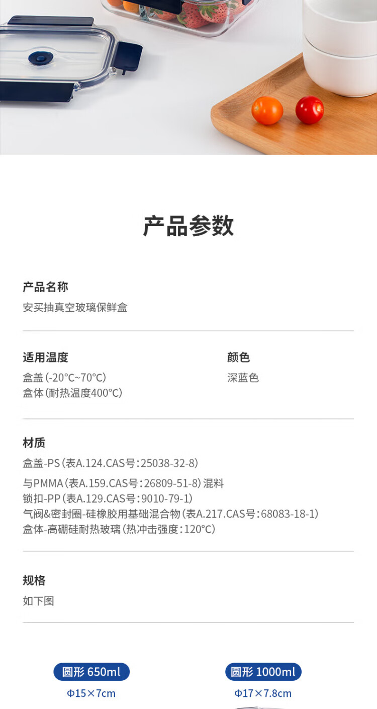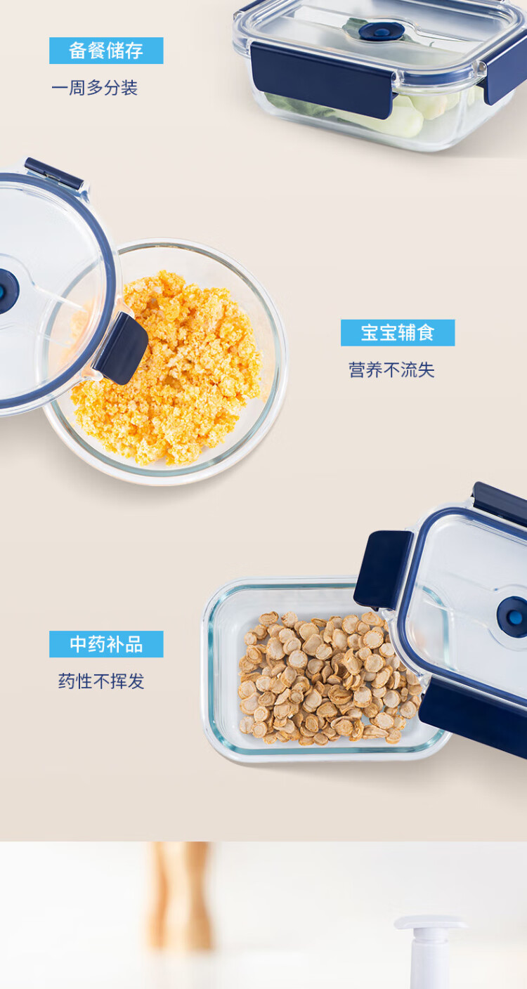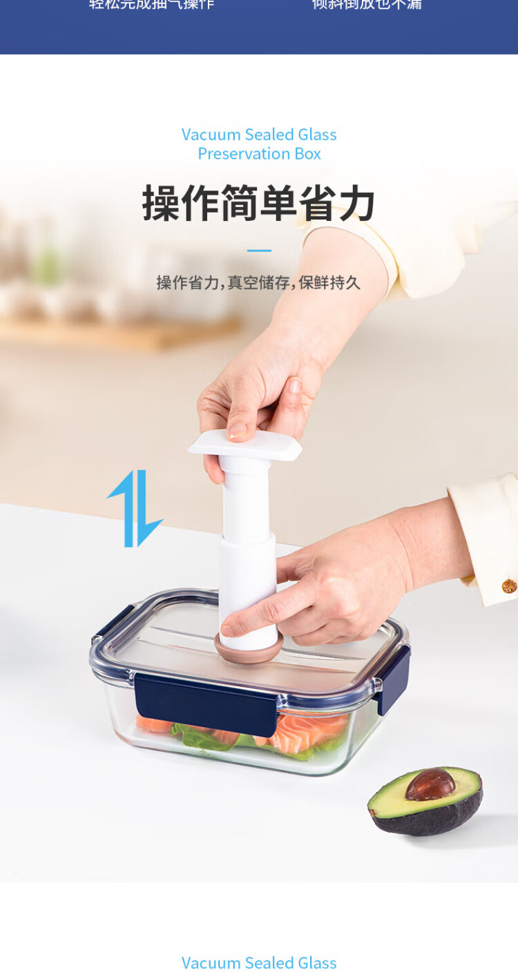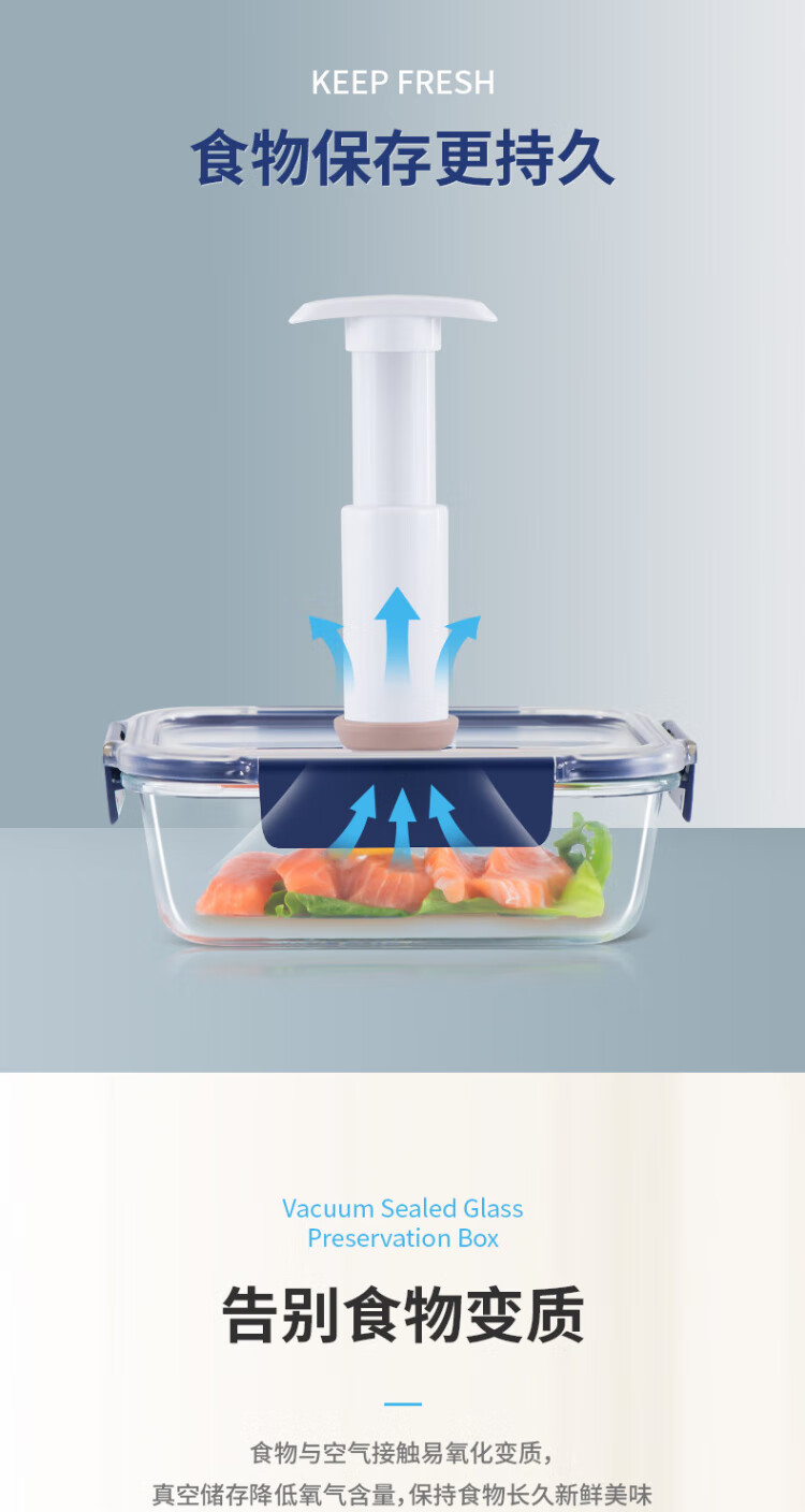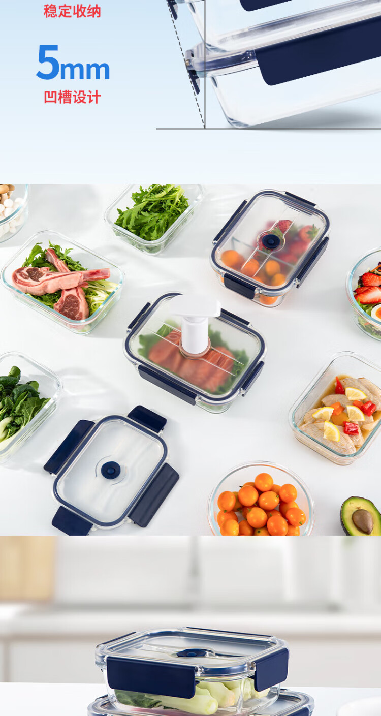Anbuy vacuum borosilicate glass storage box 1.05L refrigerator storage box heat-resistant lunch box sealed lunch box