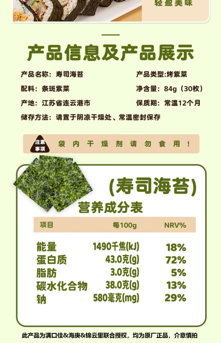 Mankoujia Sushi Seaweed Large Piece Packed Seaweed Children's Ingredients Set Special for Seaweed Rice 30 Large Sheets Total 84g