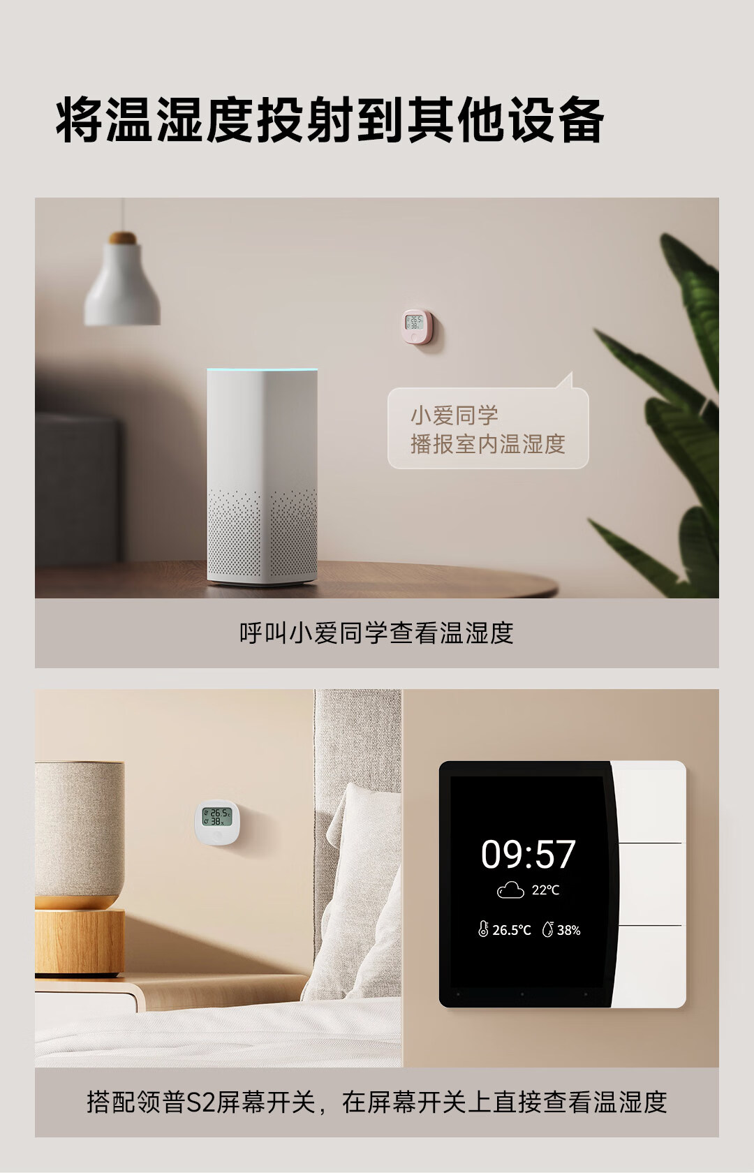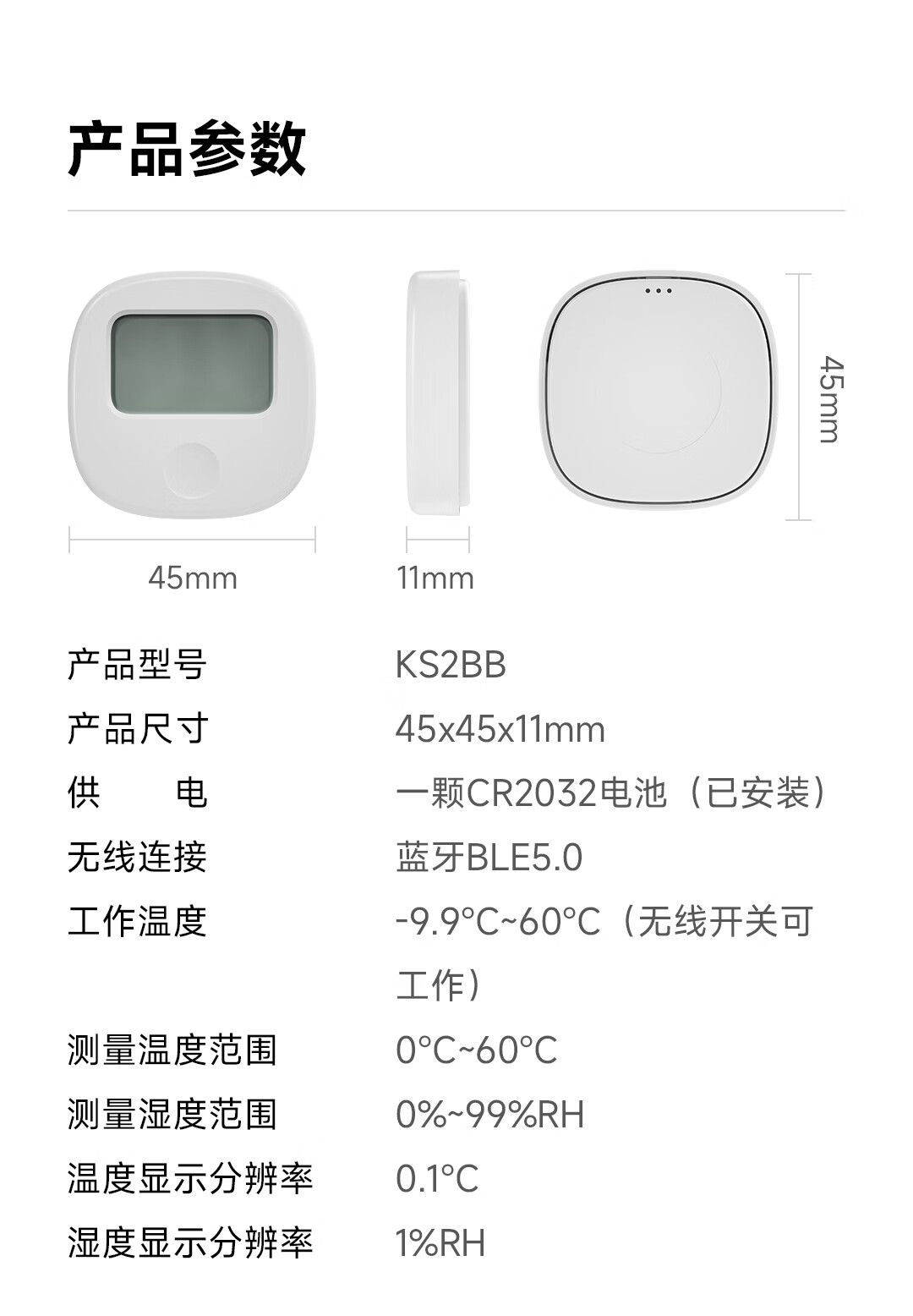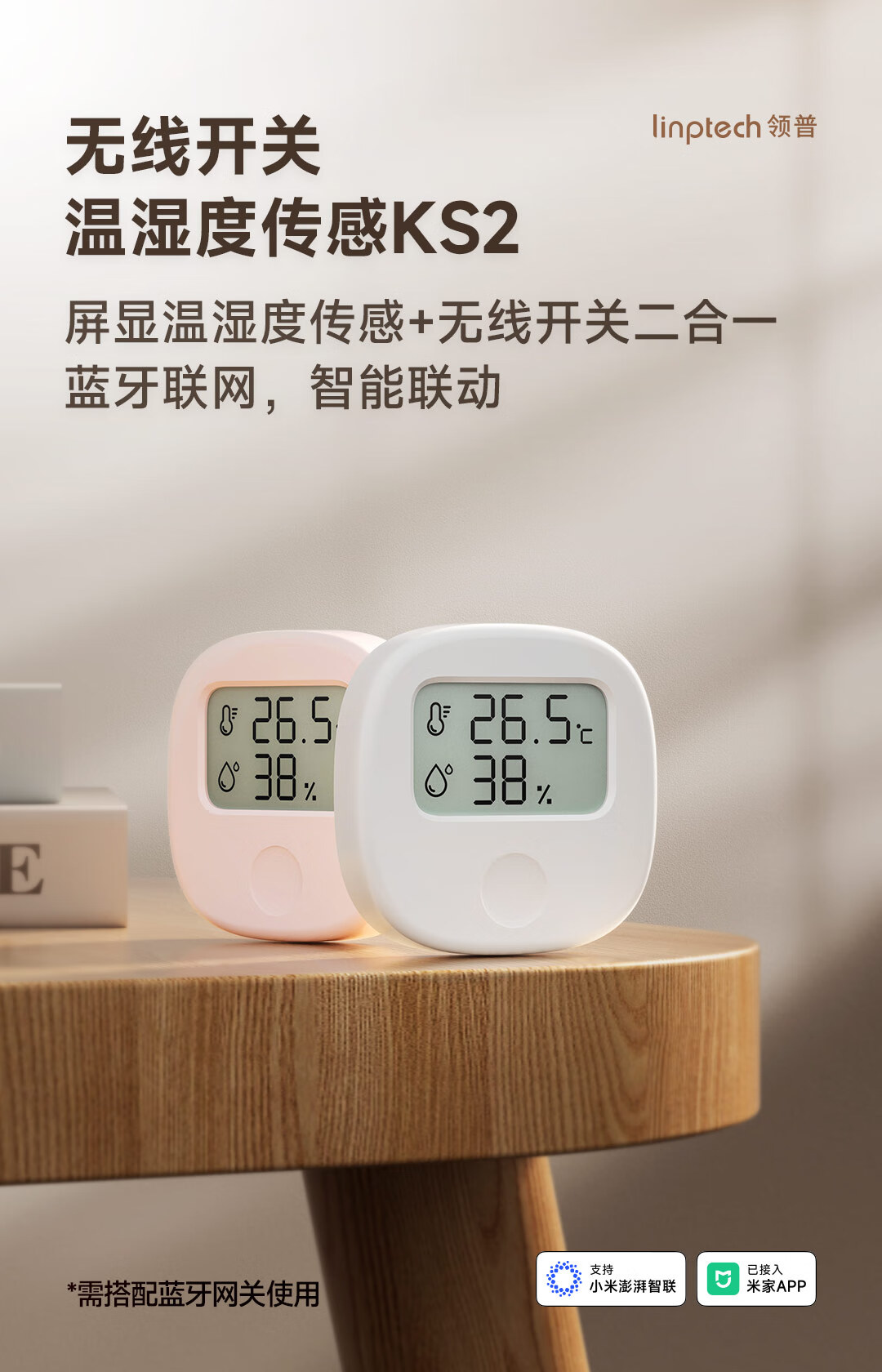 Lingpu Technology Lingpu Intelligent Temperature and Humidity Sensor with Wireless Switch KS2BB White Connected to Mijia APP