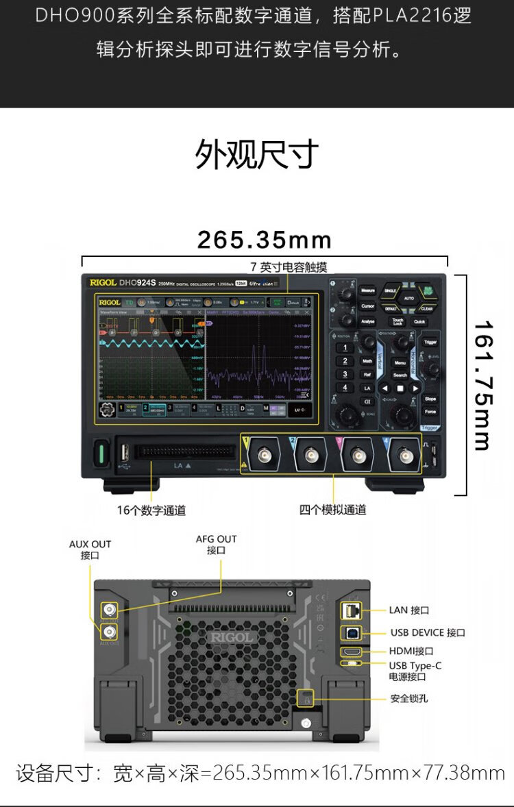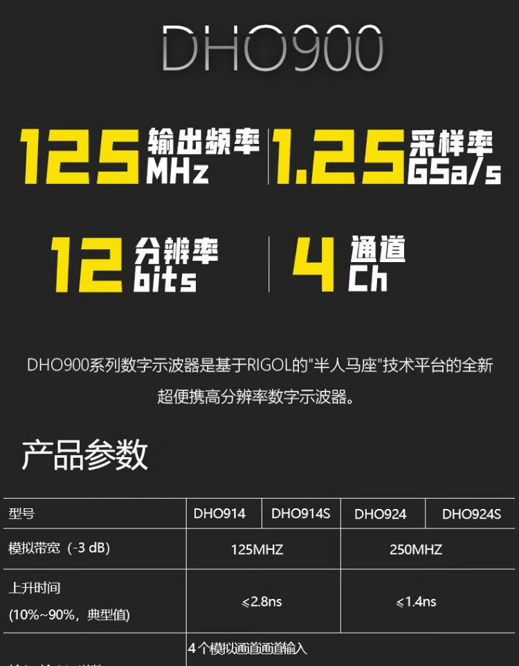 RIGOL Puyuan DHO924S handheld digital oscilloscope 250M bandwidth 4 channels 12bit 1.25GSa/s