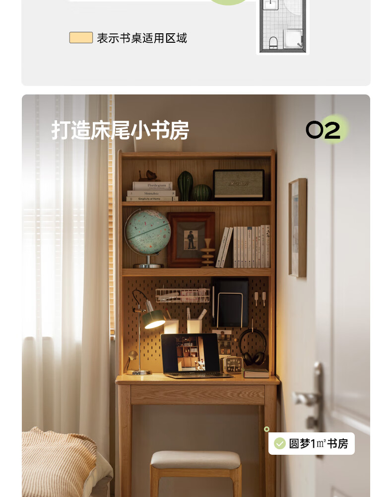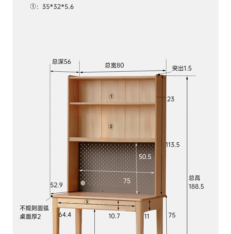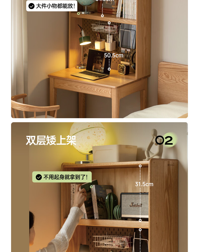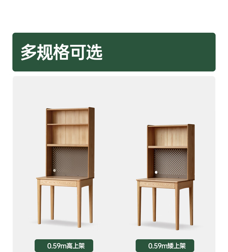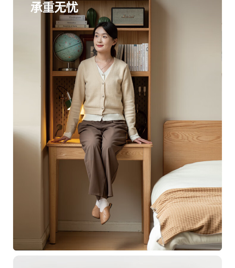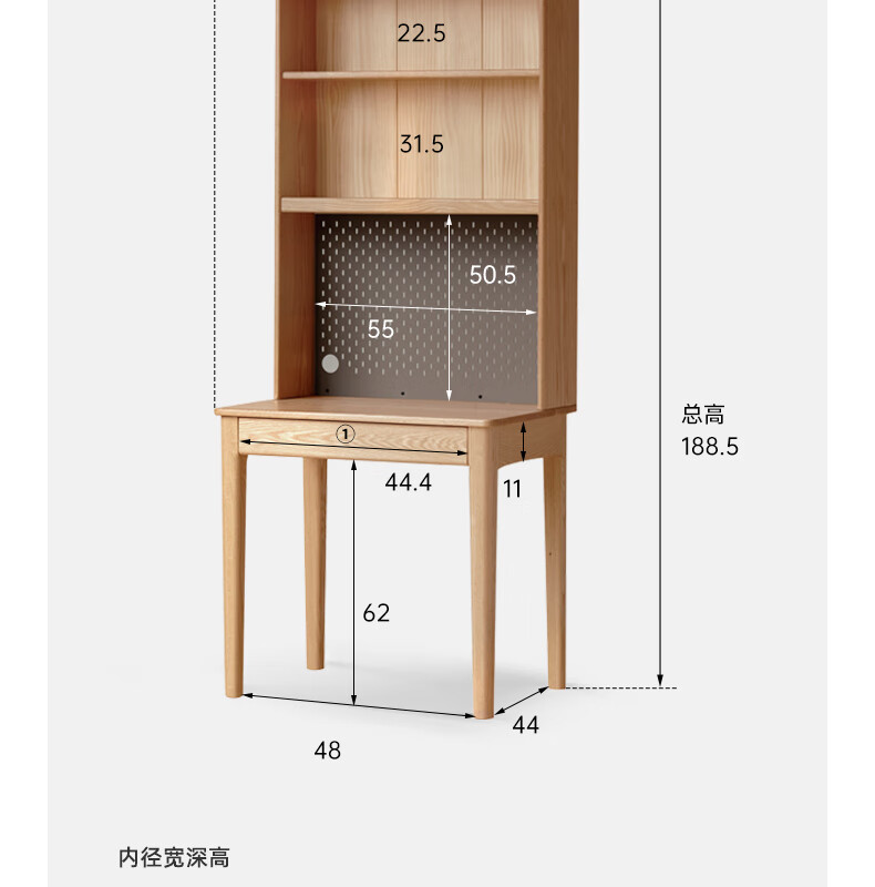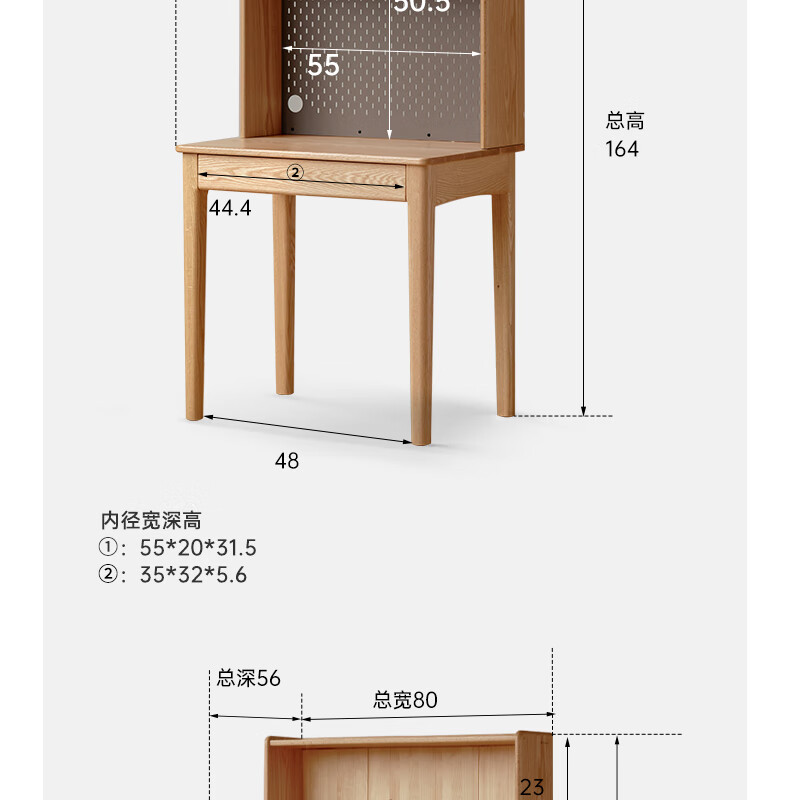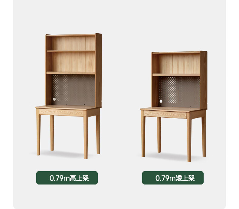Genji Muyu solid wood desk bookshelf integrated modern simple wall narrow table study office desk oak table 0.8+ double shelf
