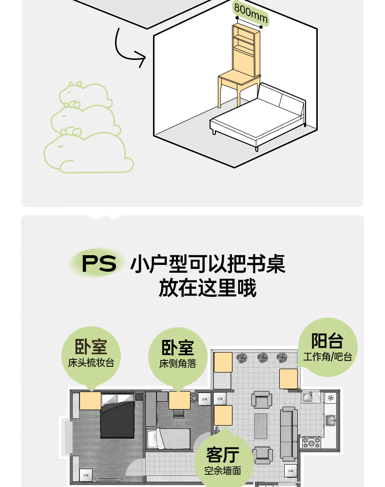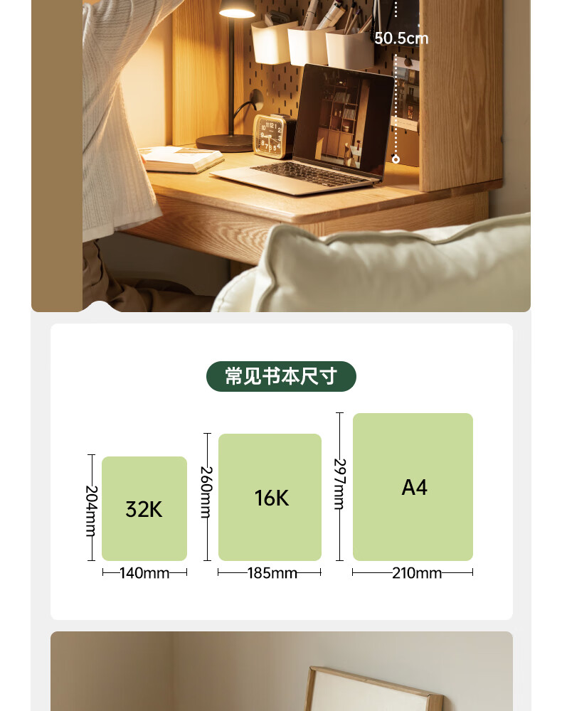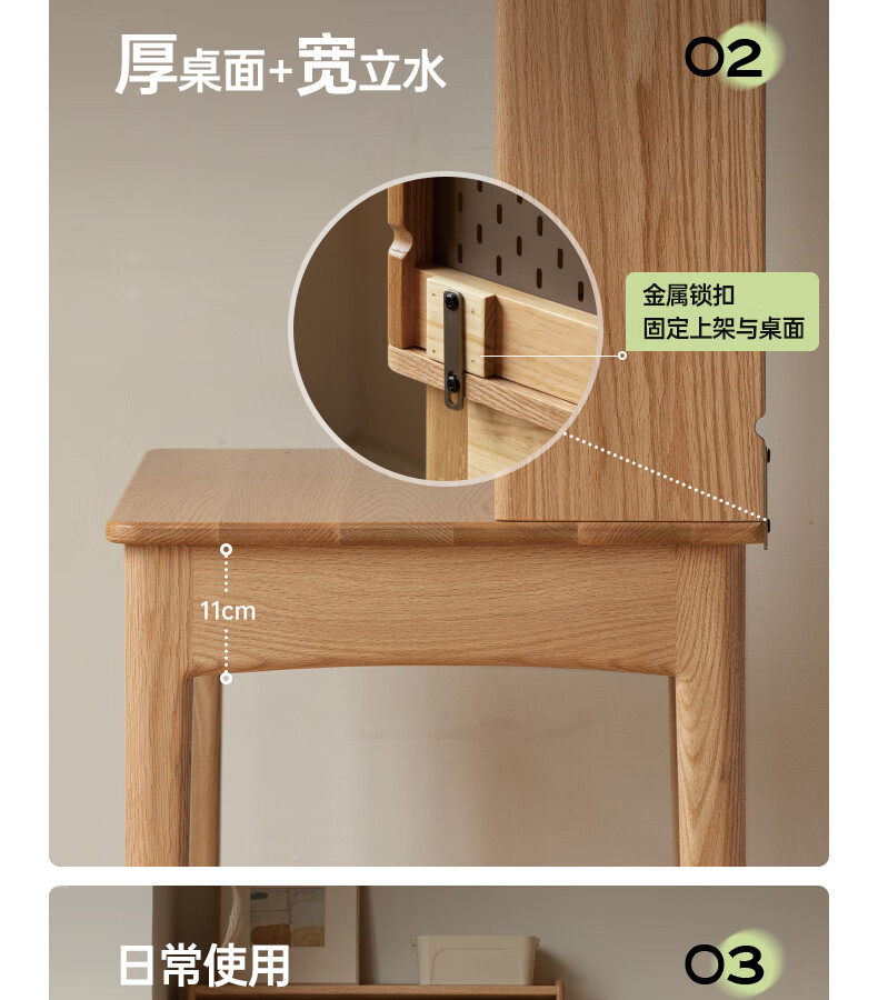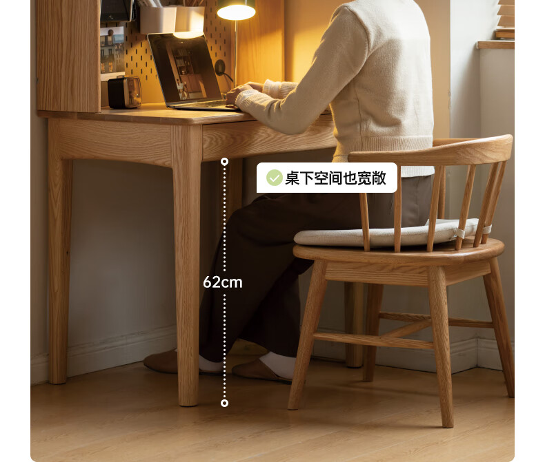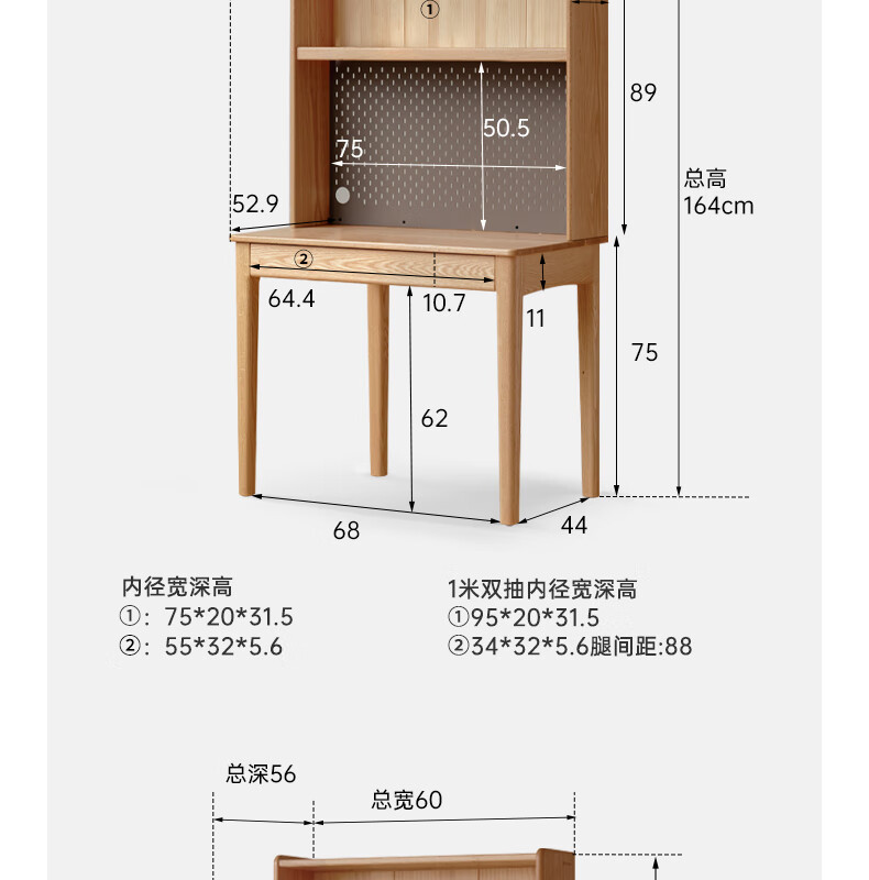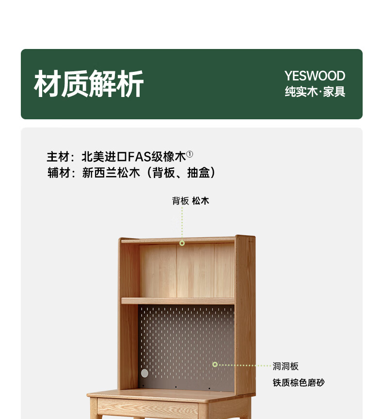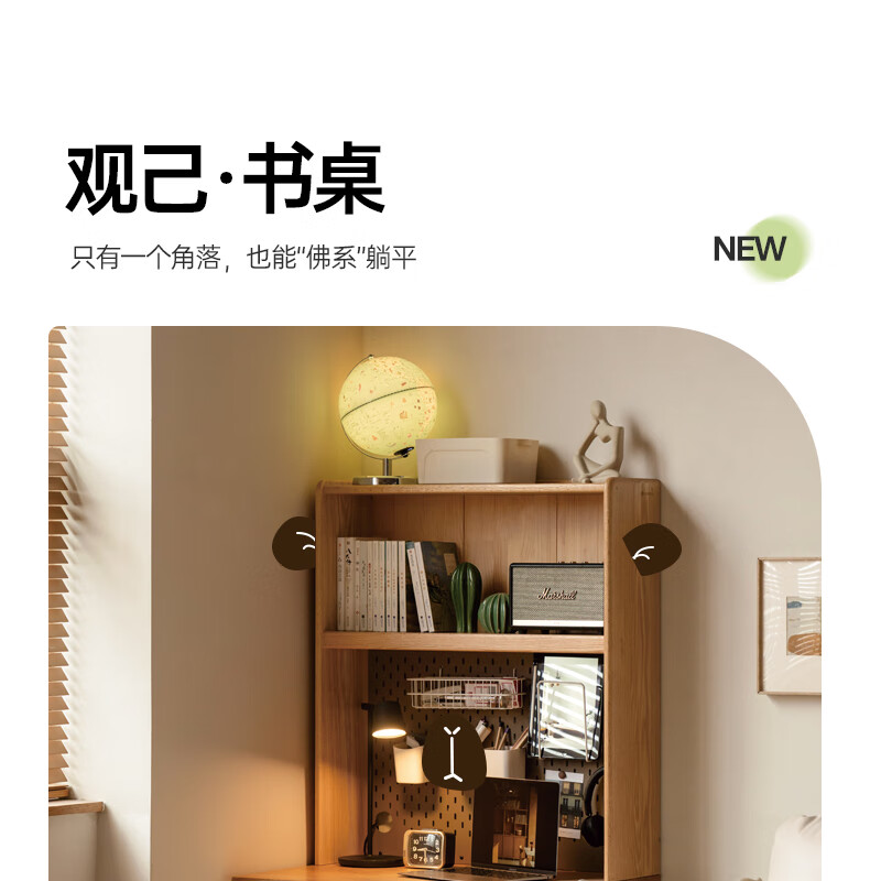 Genji Muyu solid wood desk bookshelf integrated modern simple wall narrow table study office desk oak table 0.8+ double shelf