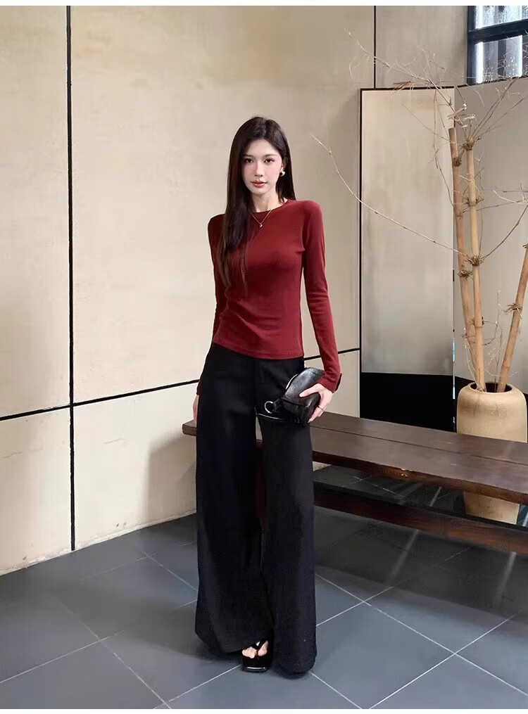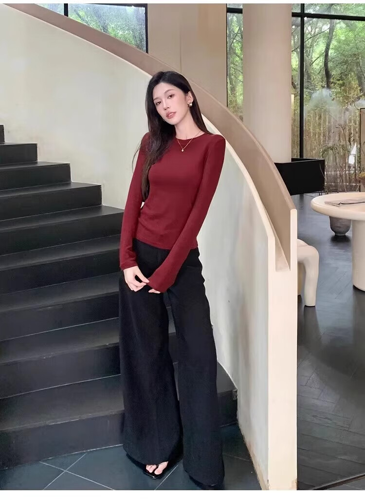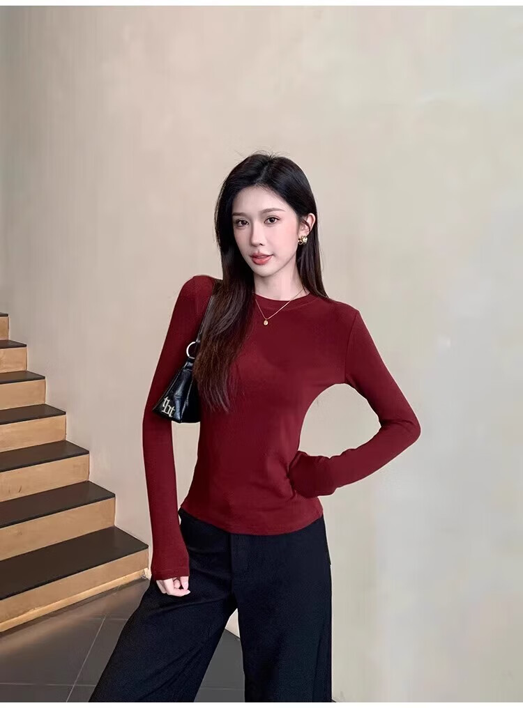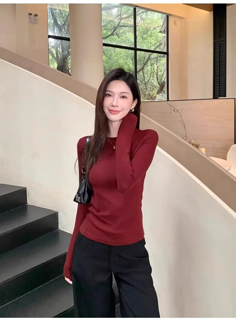 Woodpecker Right Shoulder Long Sleeve T-Shirt Women's New Autumn Advanced Slim Fit Bottoming Shirt Top Anchor Red 2XL