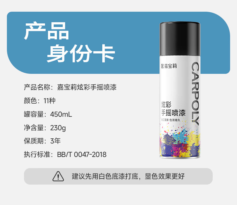 Carpoly ordinary self-spray hand spray paint industrial anti-corrosion paint metal anti-rust paint scratch repair automatic spray paint 450ml white 1 tube