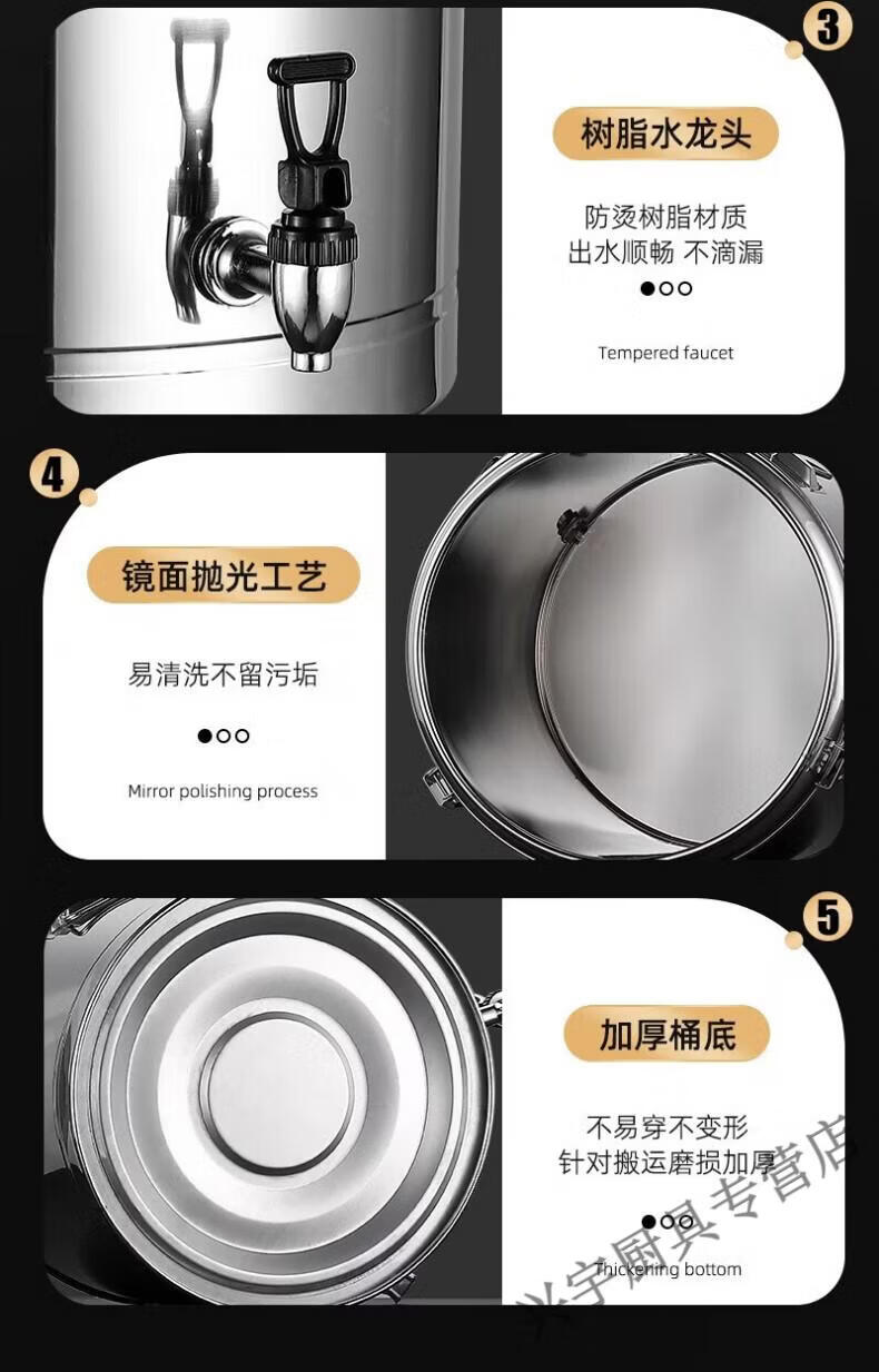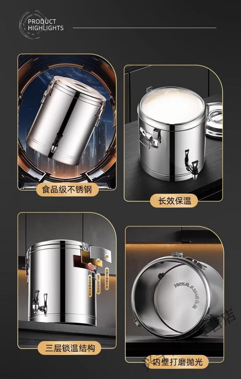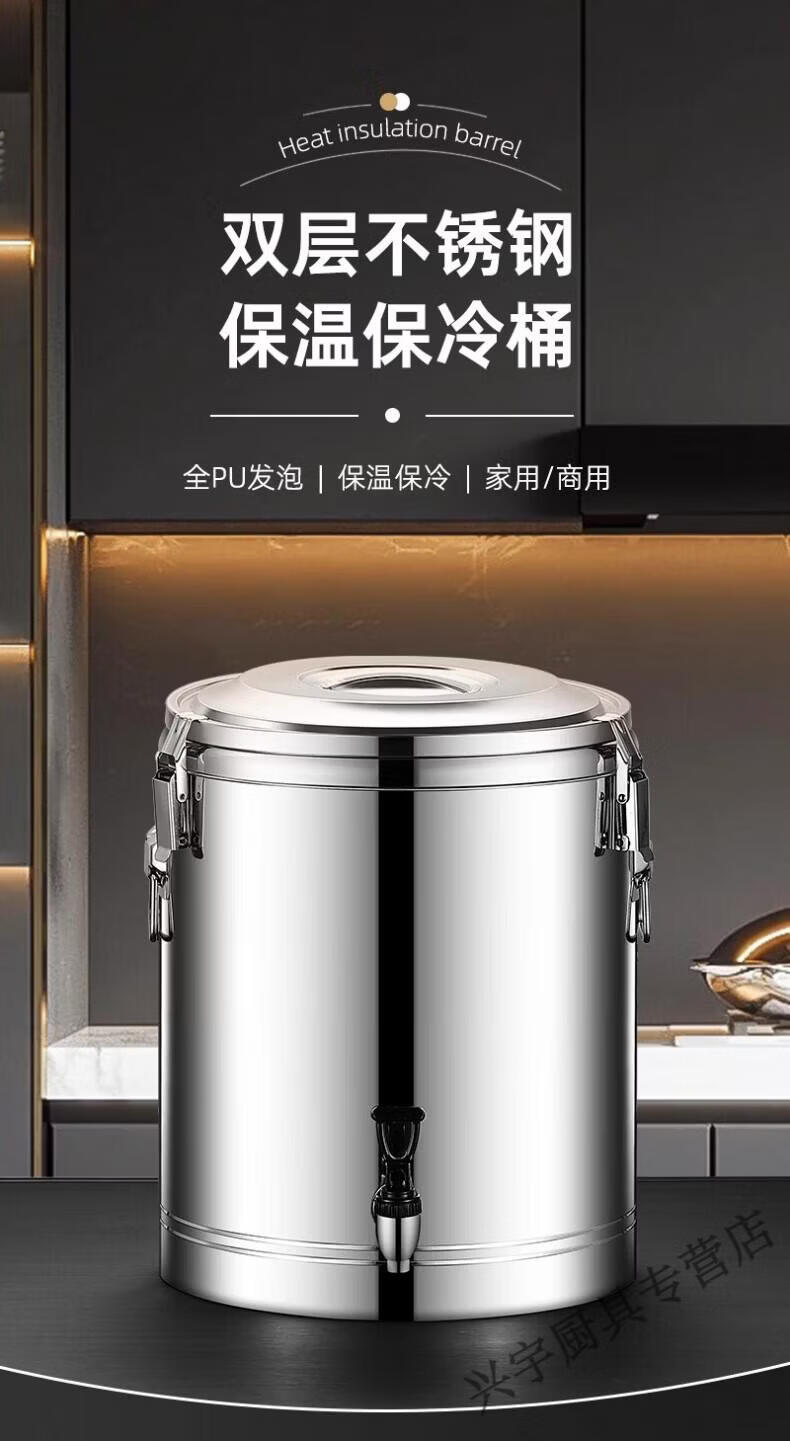 Lianmei Stainless Steel Insulated Bucket Commercial Large Capacity Canteen Rice Bucket Soup Porridge Bucket Hot Boiled Water Stall Selling Ice Powder Soy Milk Upgraded Thickening (No Faucet) Can Hold 66 Jin of Water 50L