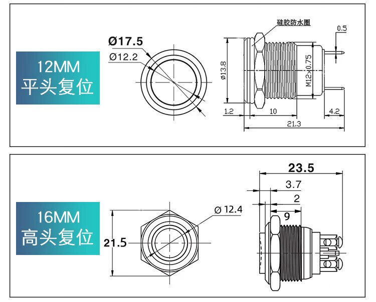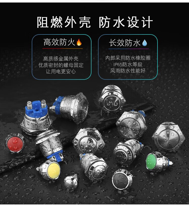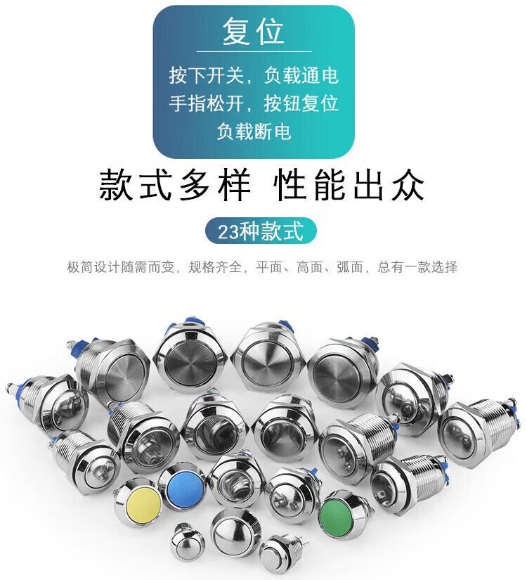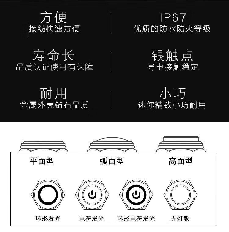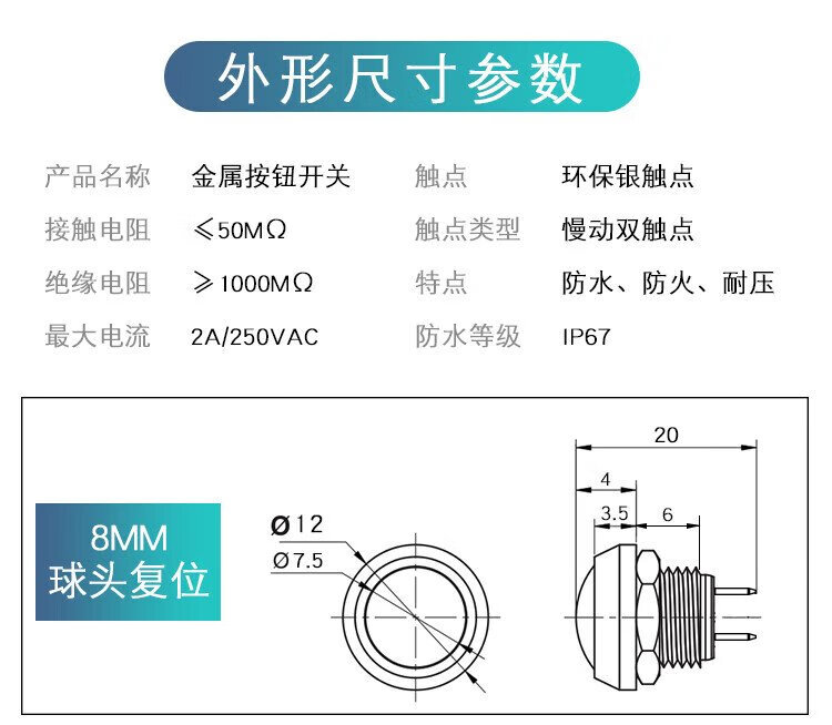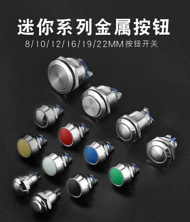 Huijun waterproof metal button switch flat head high head spherical small start stop reset self-locking switch 8MM reset metal ball solder foot