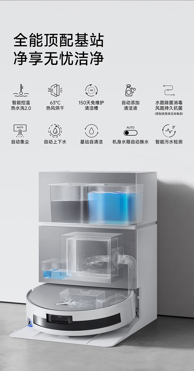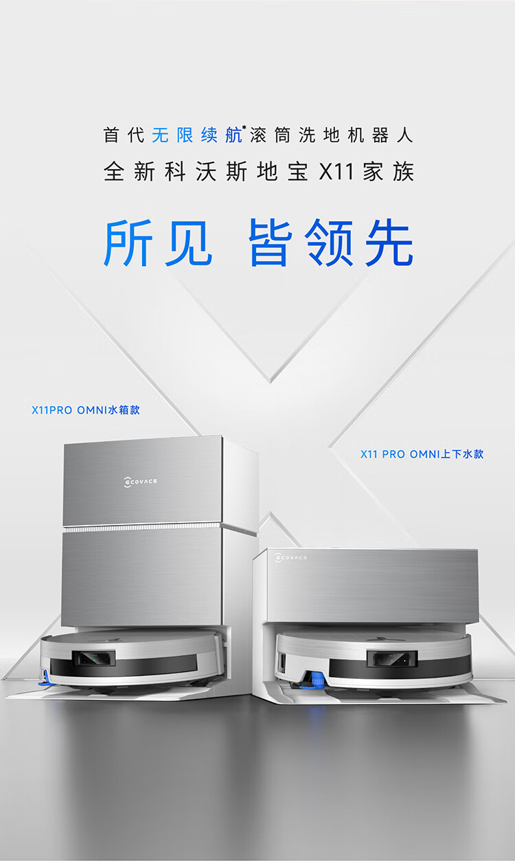Ecovacs sweeping robot X11 PRO sweeping, mopping, washing and drying all-in-one automatic cleaning drum floor scrubber silver fully automatic upper and lower water ultra-thin model