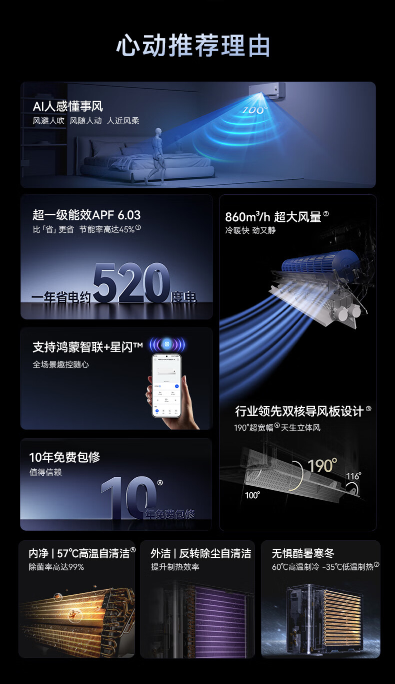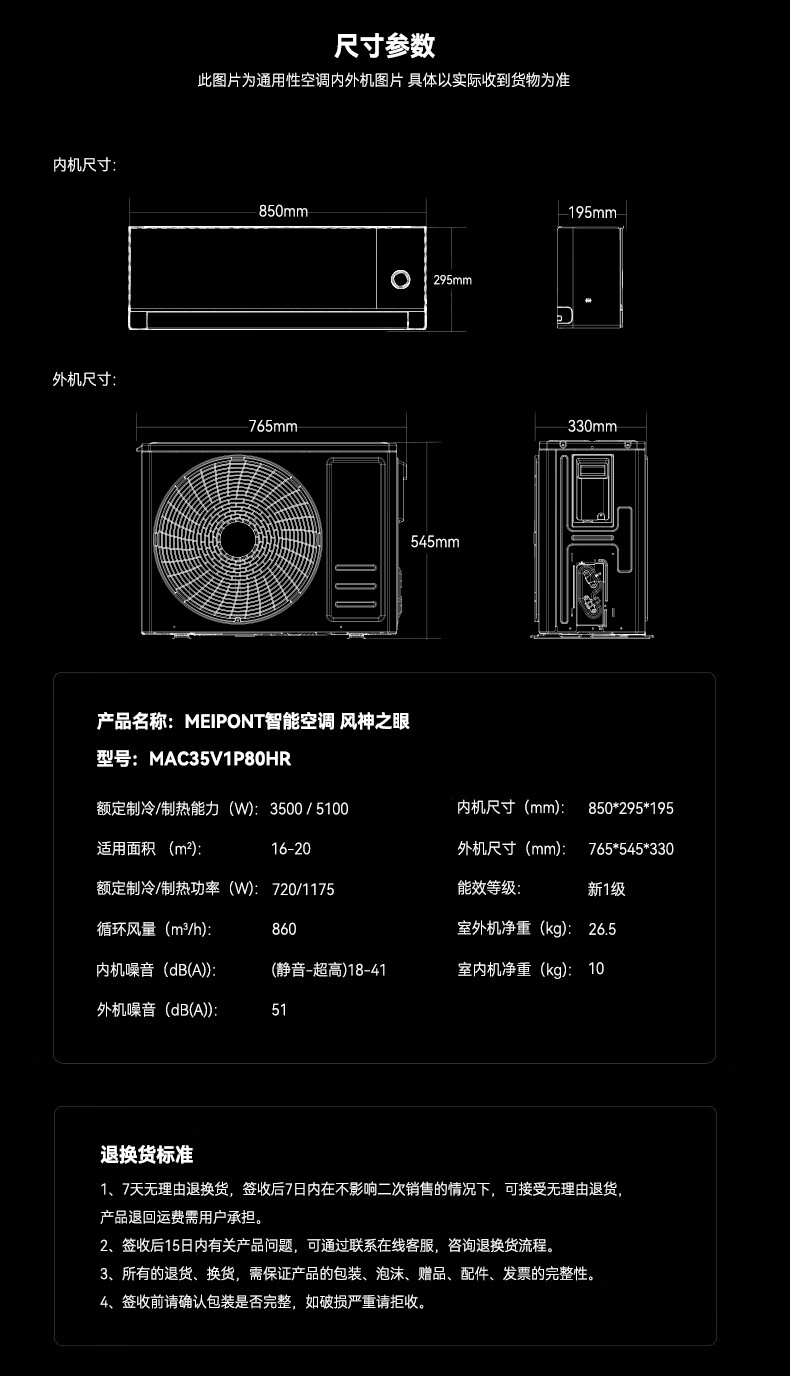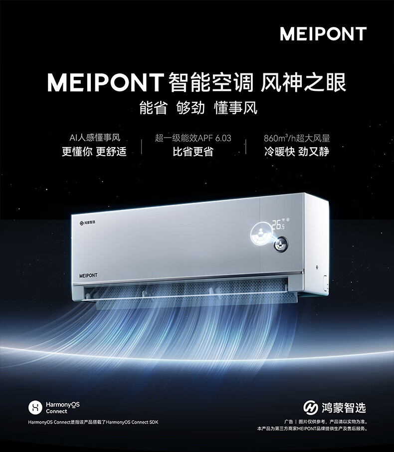 Hongmeng Smart Selection MEIPONT smart air conditioner 1.5 HP on-hook Aeolian Eye (pure copper tube) super first-class energy efficiency AI human-sensing heating and cooling frequency conversion National subsidy MAC35V1P80HR