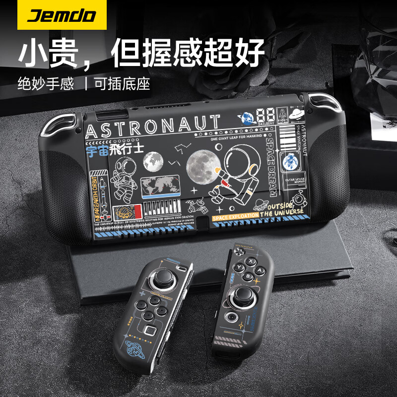 Jemdo is suitable for Switch protective shell handle heightening split protective cover NS anti-fall OLED pluggable base game console accessories Black Universe Exploration Enhanced Grip