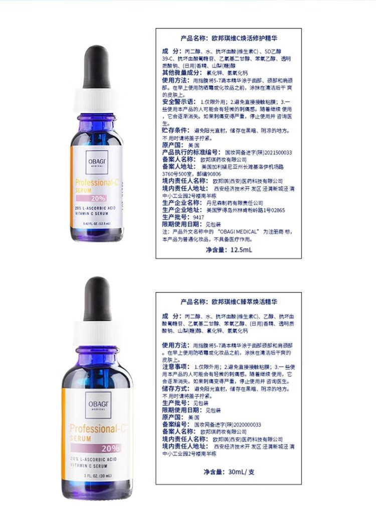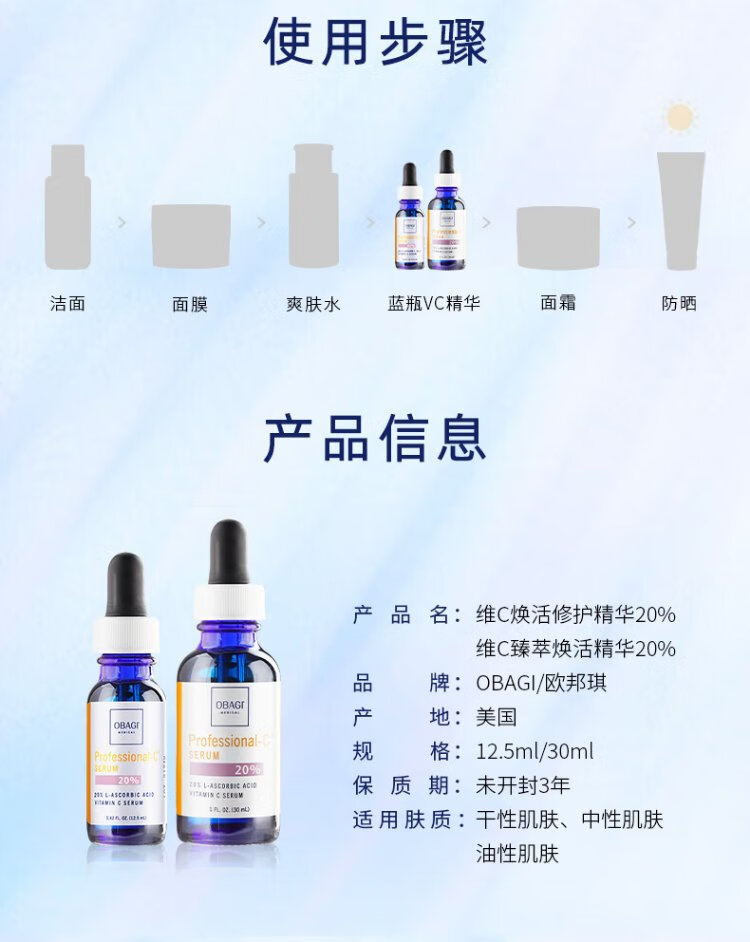 Obagi VC firming repair essence blue bottle L-VC 20% 30ml is on clearance