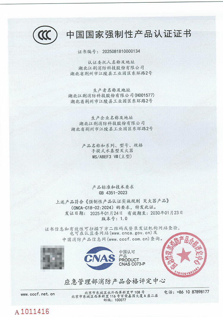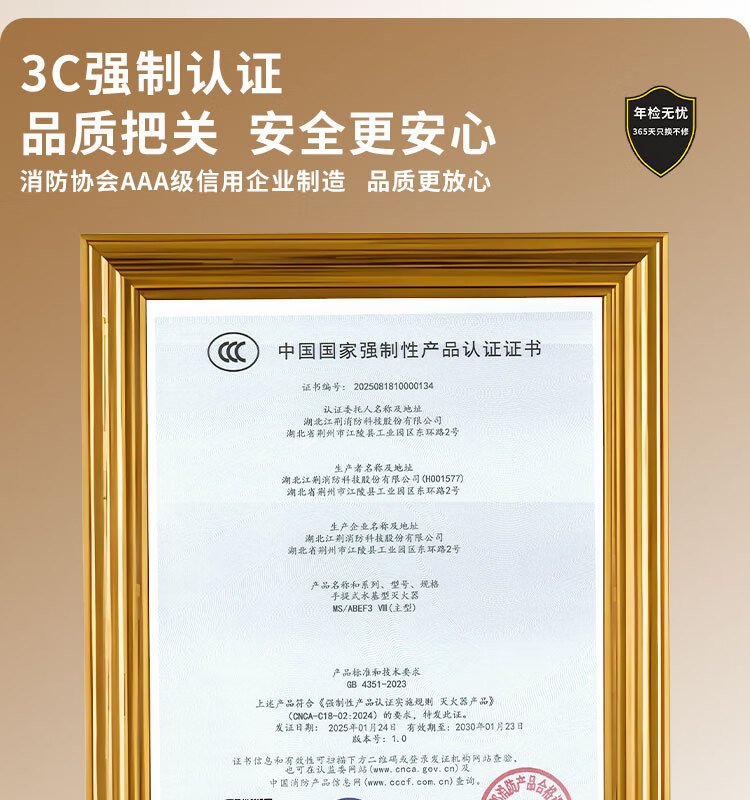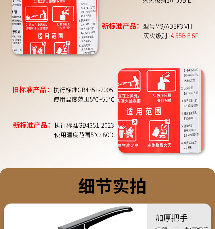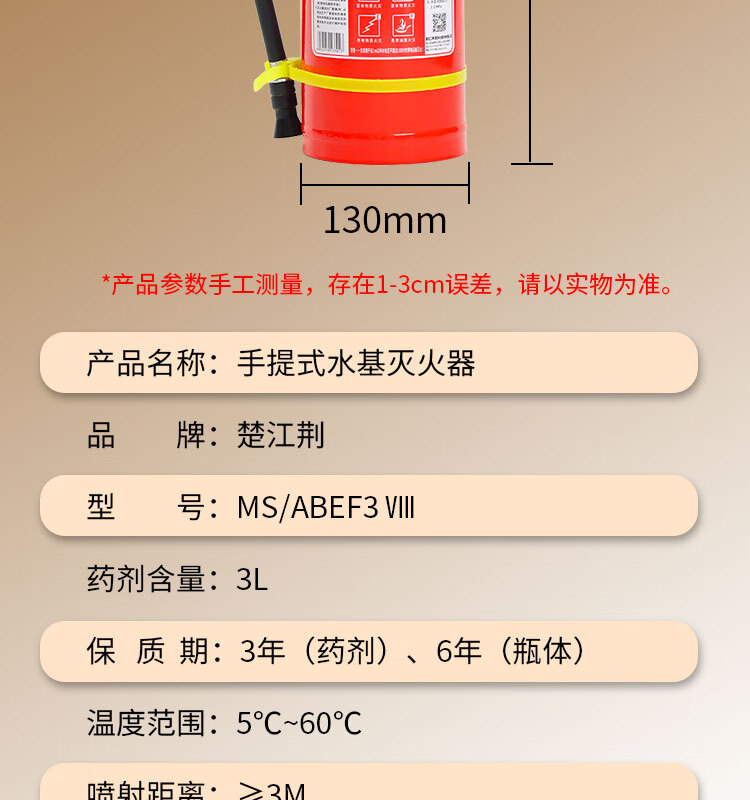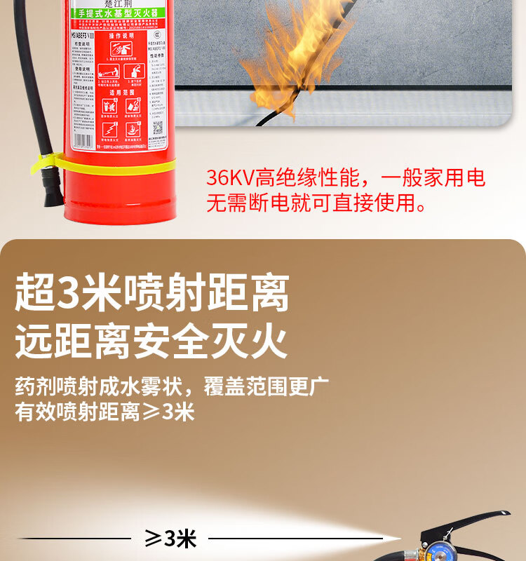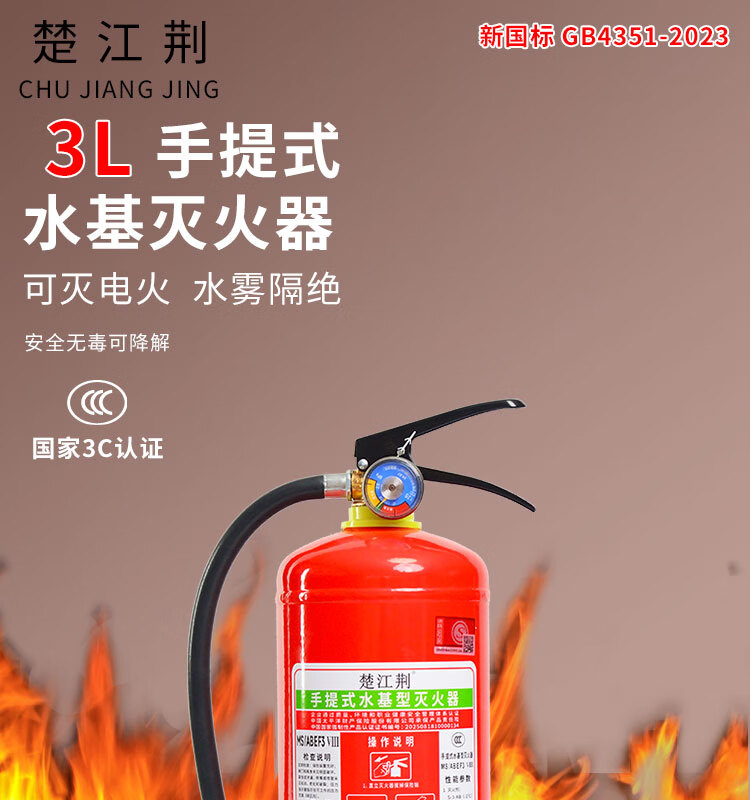 Chujiangjing 25-year new national standard water-based fire extinguisher vehicle-mounted home property commercial water mist 3L | 1-year warranty with guaranteed replacement for leakage and pressure MS/ABEF3 VIII