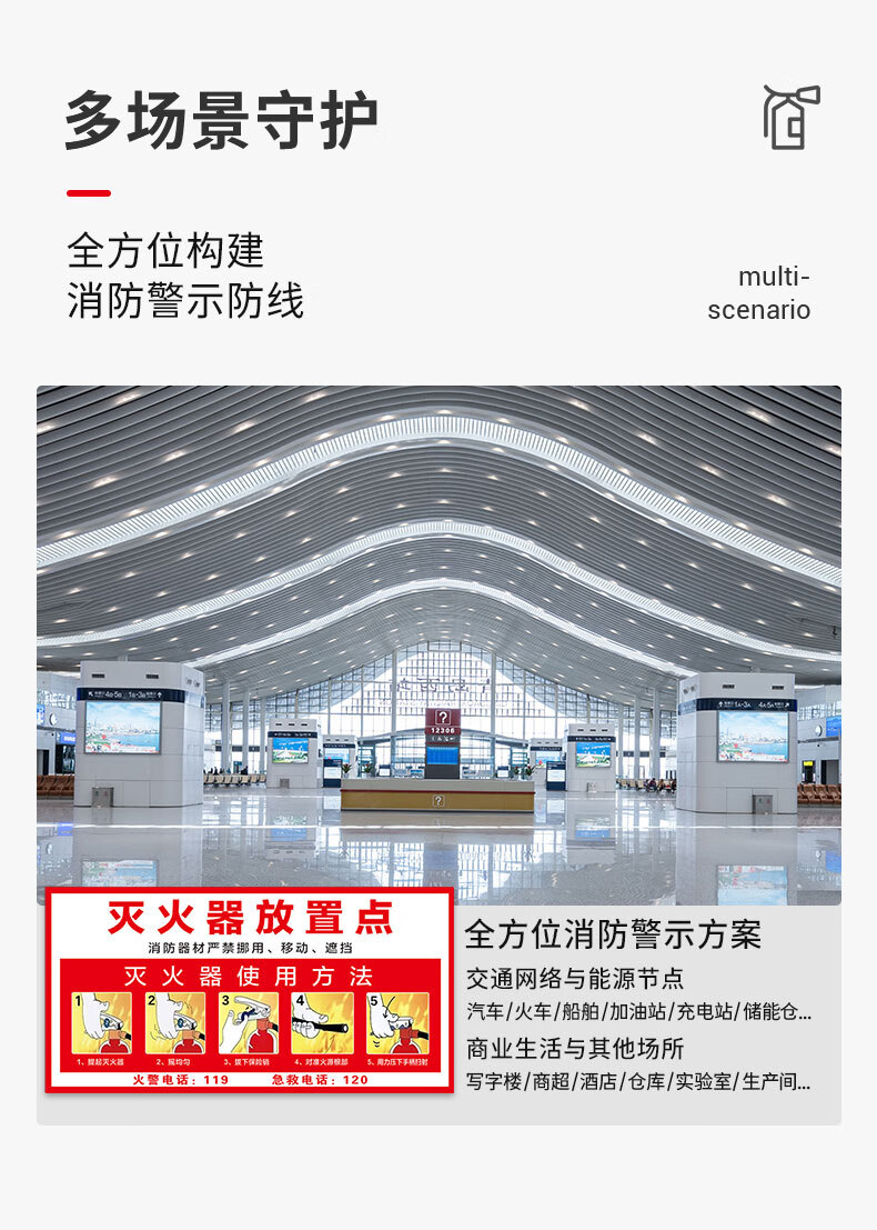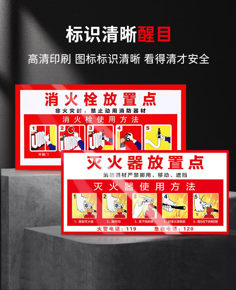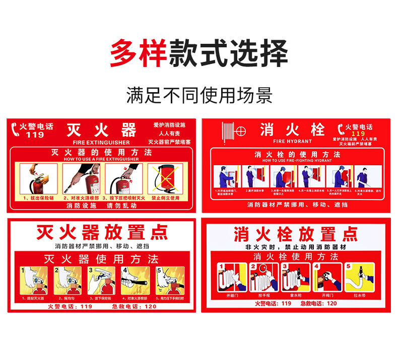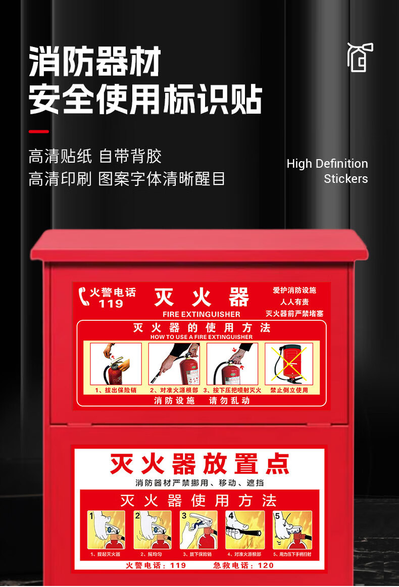 Cuttlefish fire extinguisher usage instructions 5 fire safety warning stickers corridor fire hydrant stickers 30*15CM customized PVC self-adhesive stickers