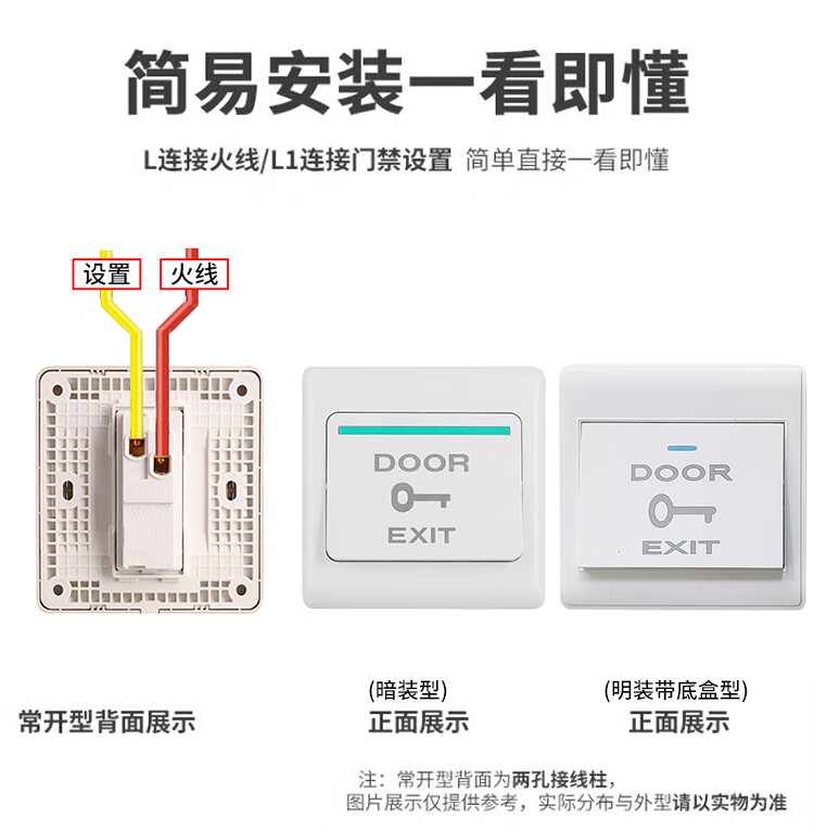 Masfor 86 type access control switch panel exit switch button self-reset rebound switch surface-mounted switch with bottom box