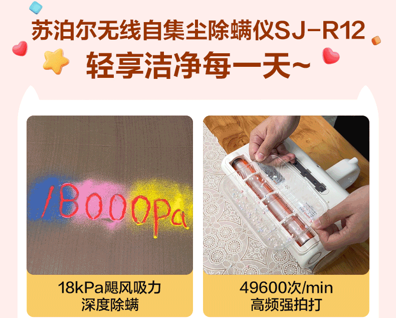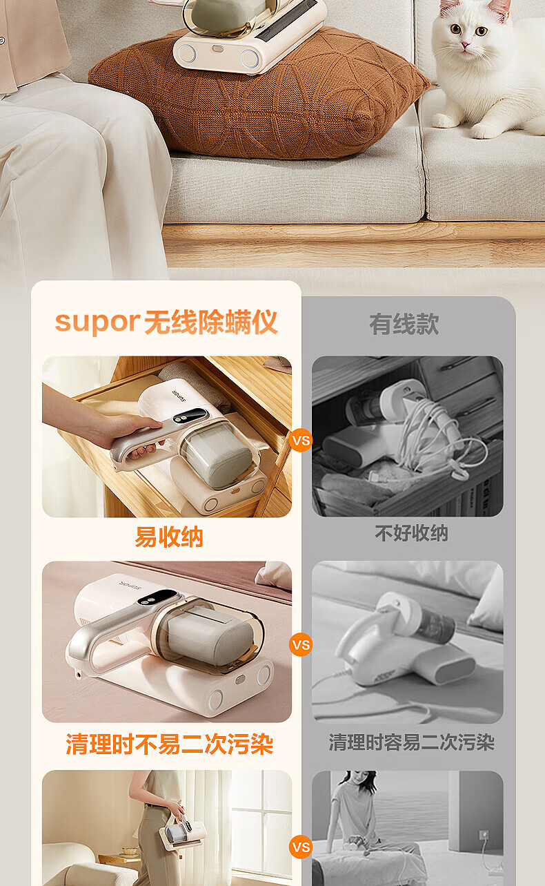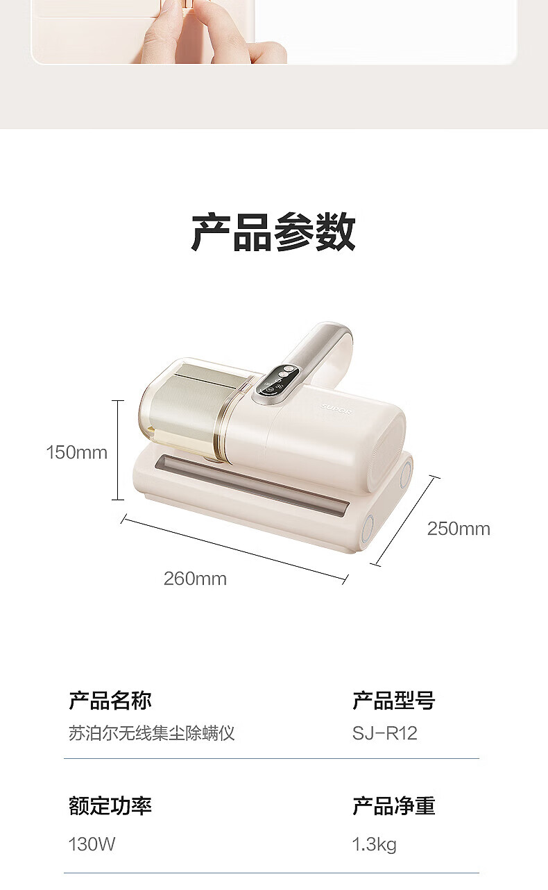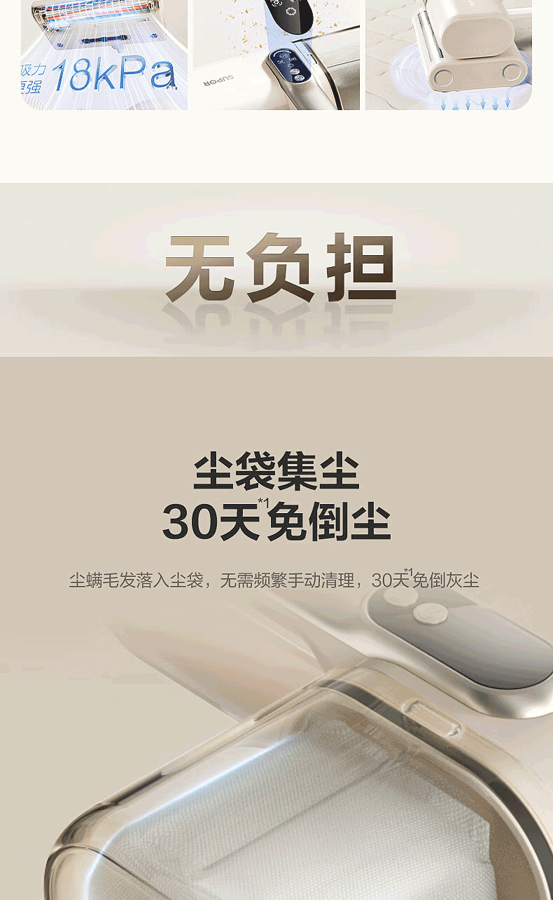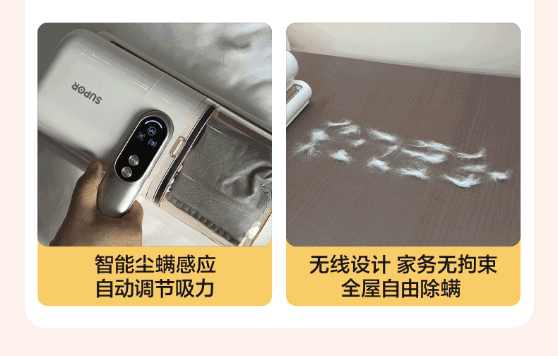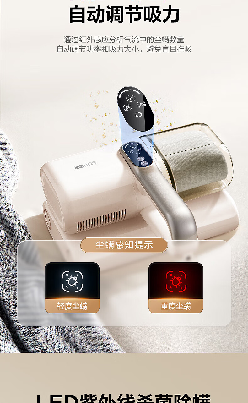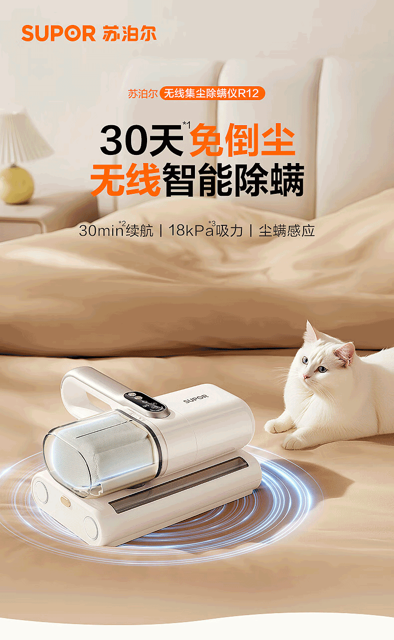 SUPOR wireless mite remover self-collecting dust bag household bed baby maternal and infant grade allergy removal certified dust mite allergy high suction ultraviolet sterilization smart induction bed vacuum cleaner R12