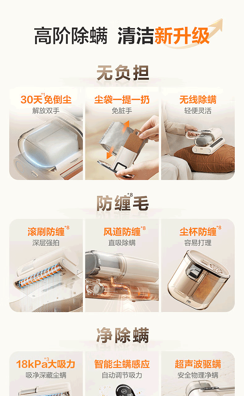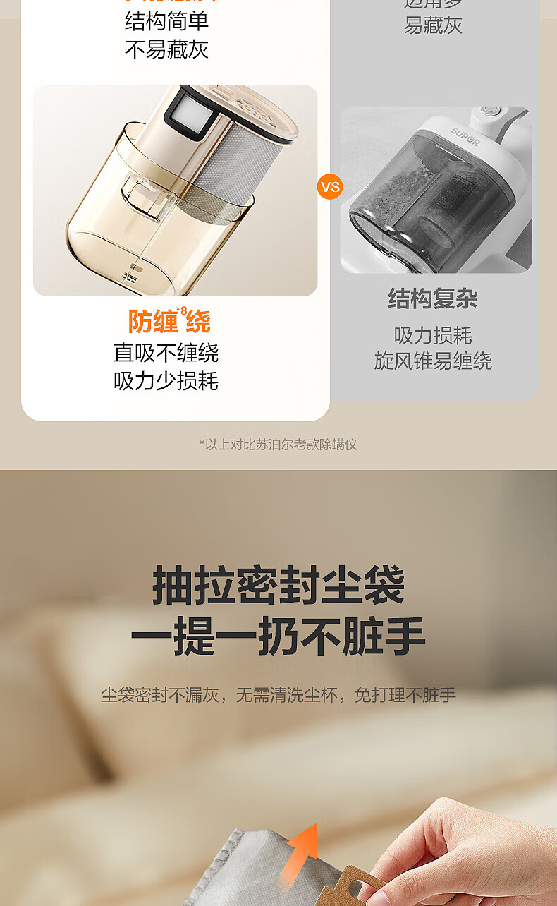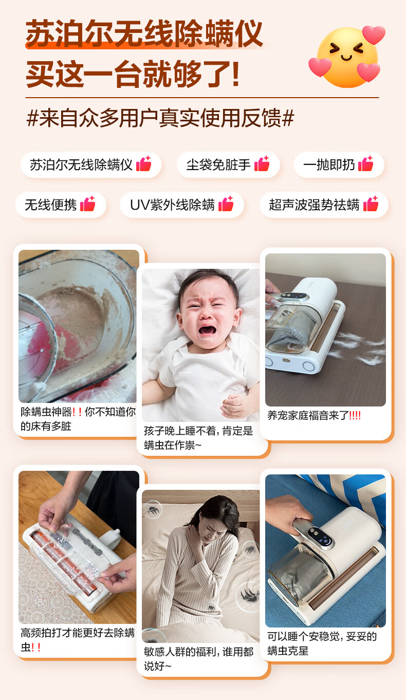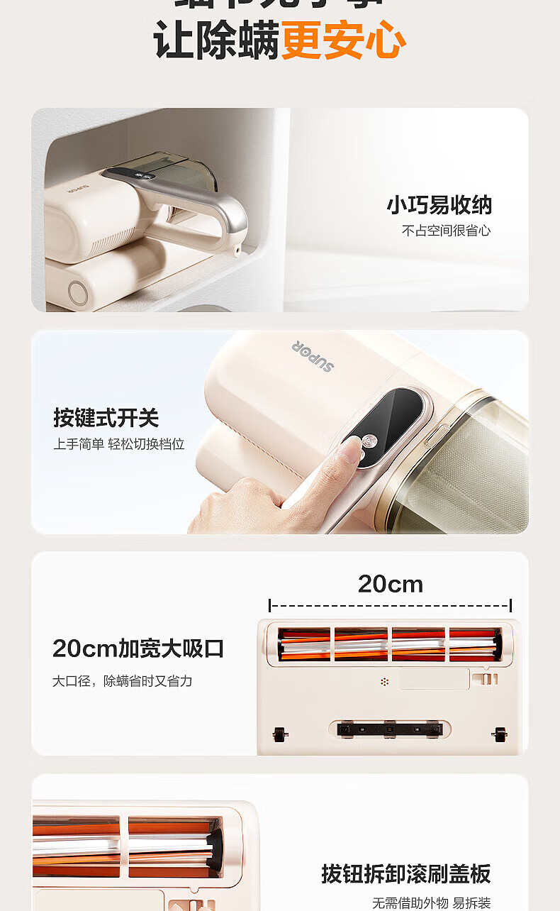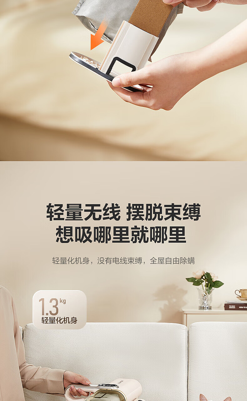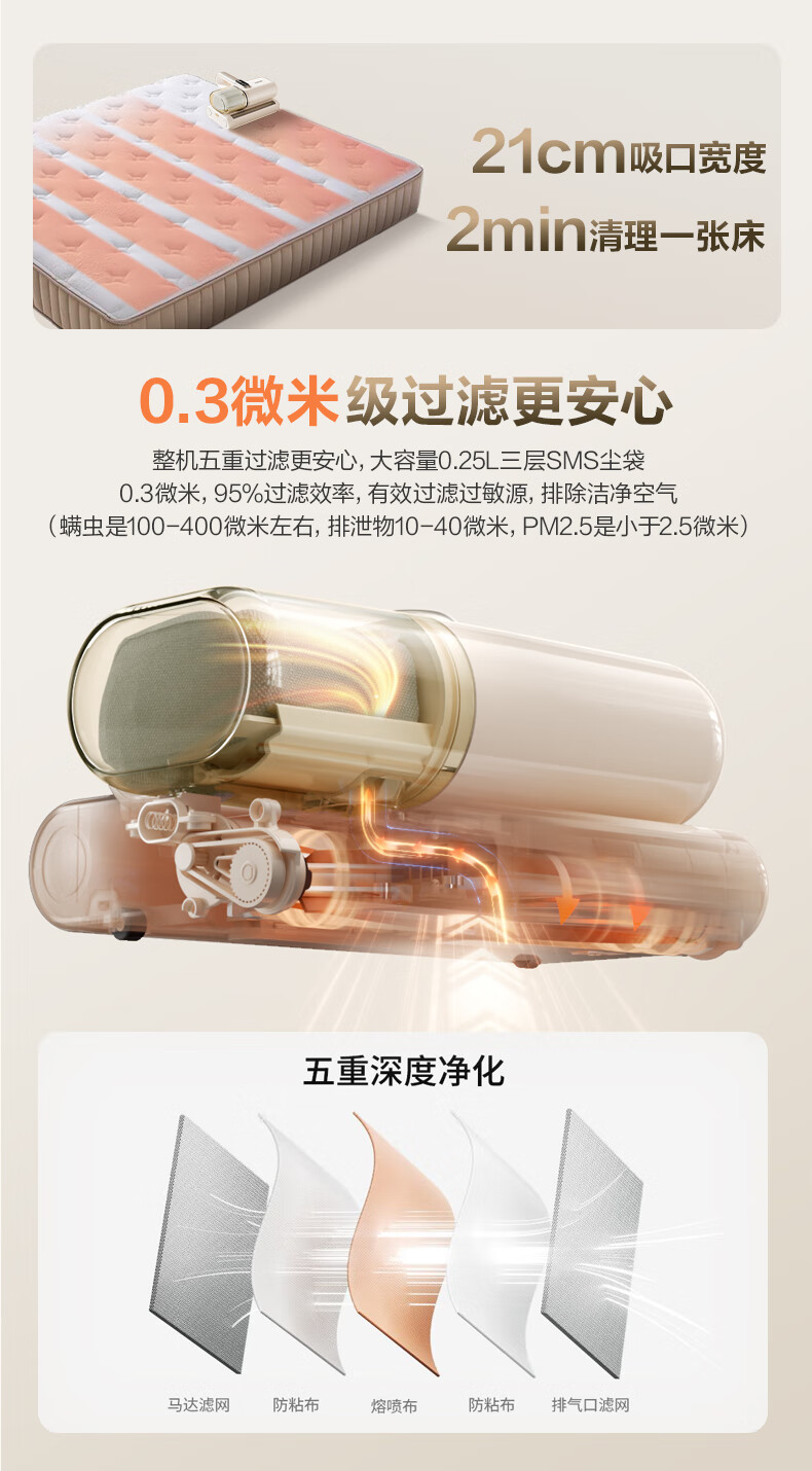SUPOR wireless mite remover self-collecting dust bag household bed baby maternal and infant grade allergy removal certified dust mite allergy high suction ultraviolet sterilization smart induction bed vacuum cleaner R12