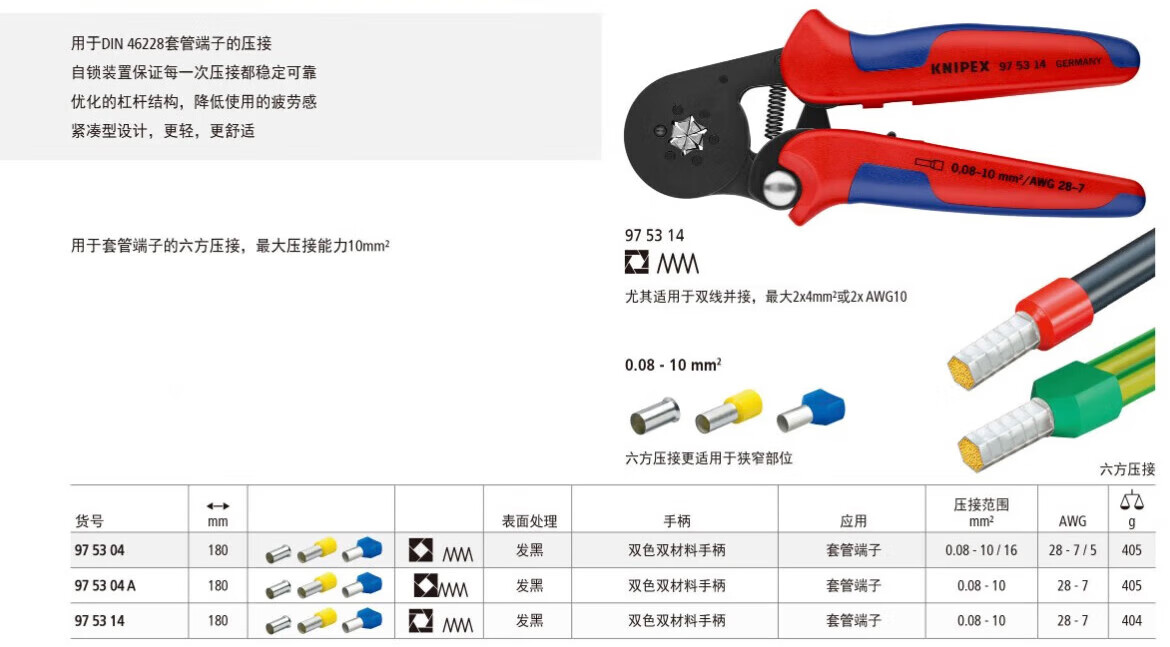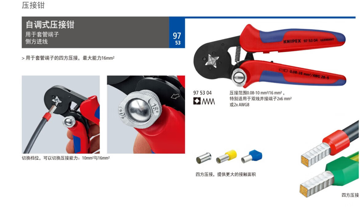 KNIPEX (KNIPEX) 97 53 14 self-adjusting crimping pliers casing terminals square and hexagonal crimping 975314/hexagonal crimping