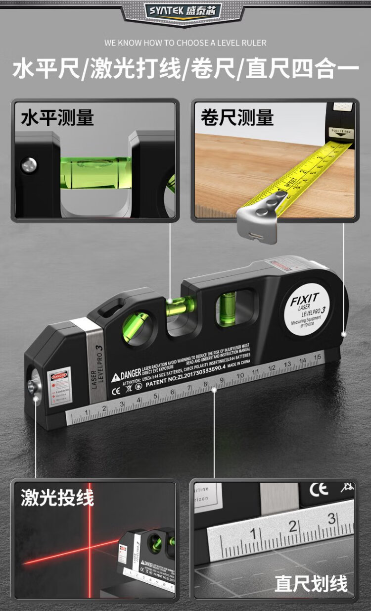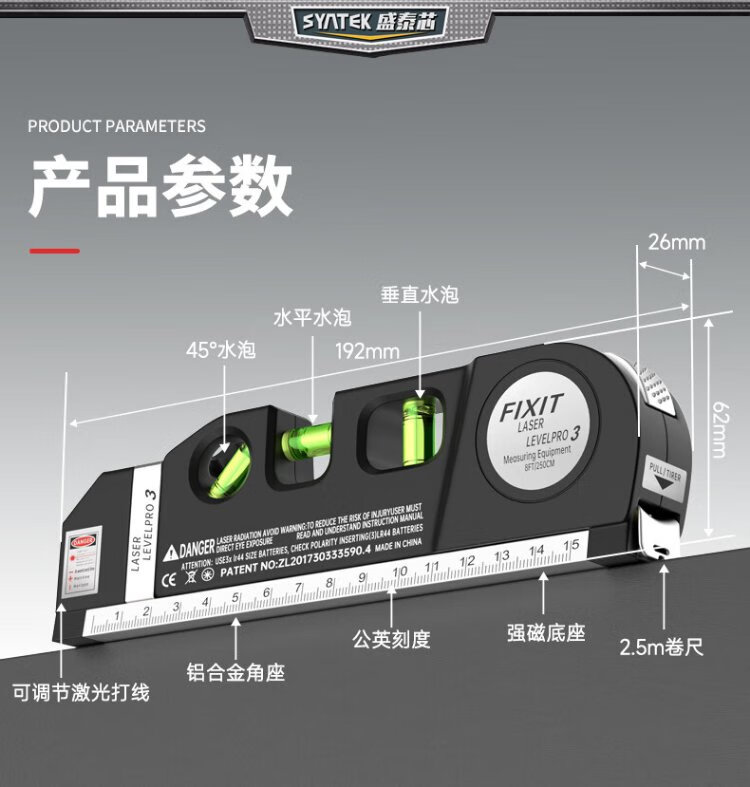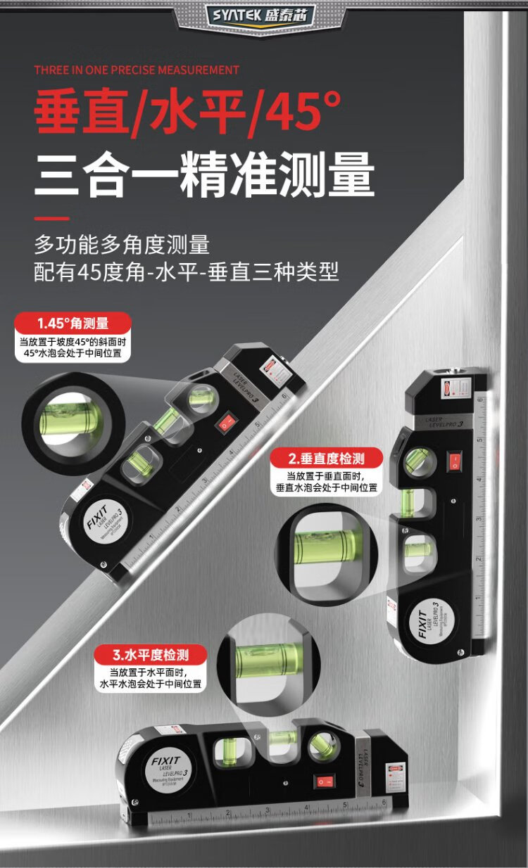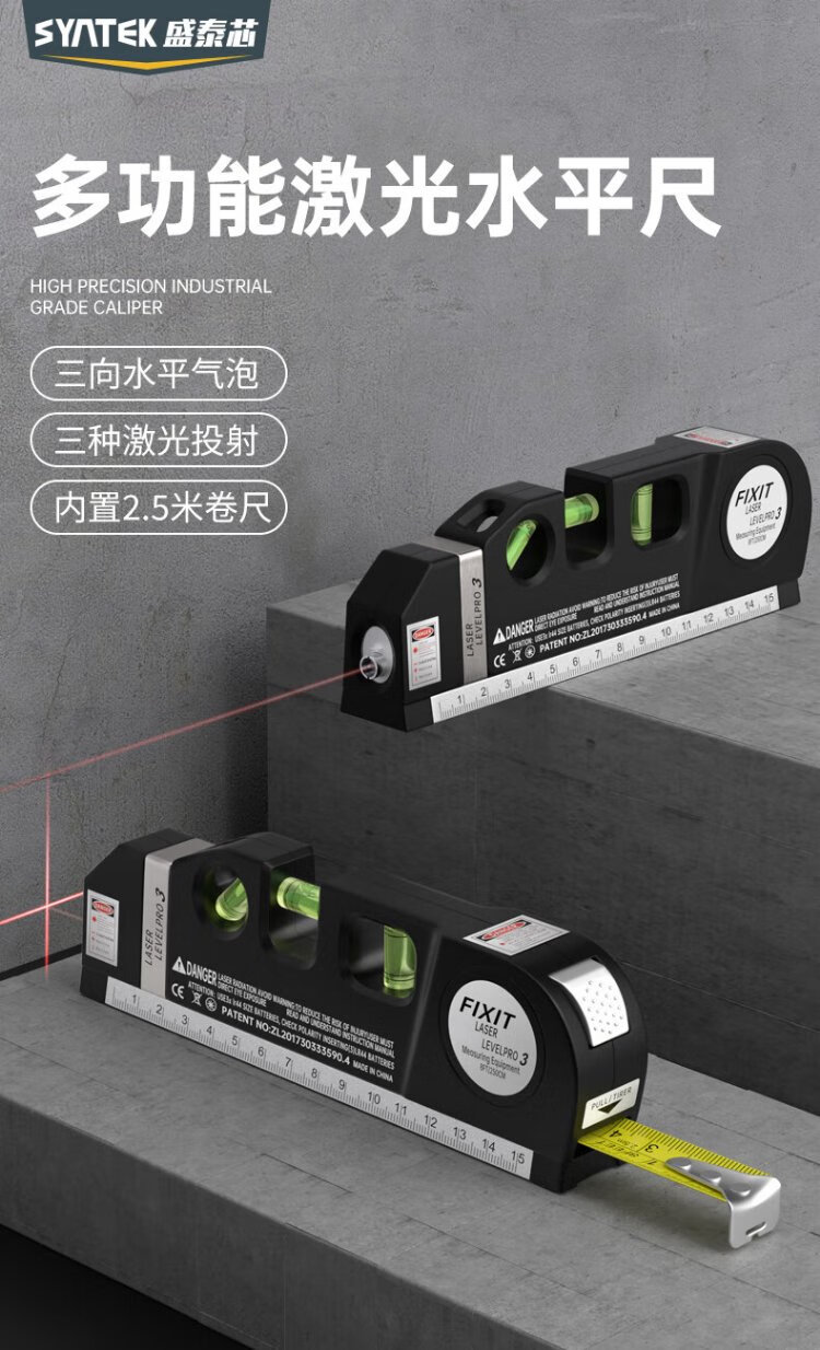 SYNTEK laser level household small portable high-precision strong light infrared multi-functional magnetic level tape measure