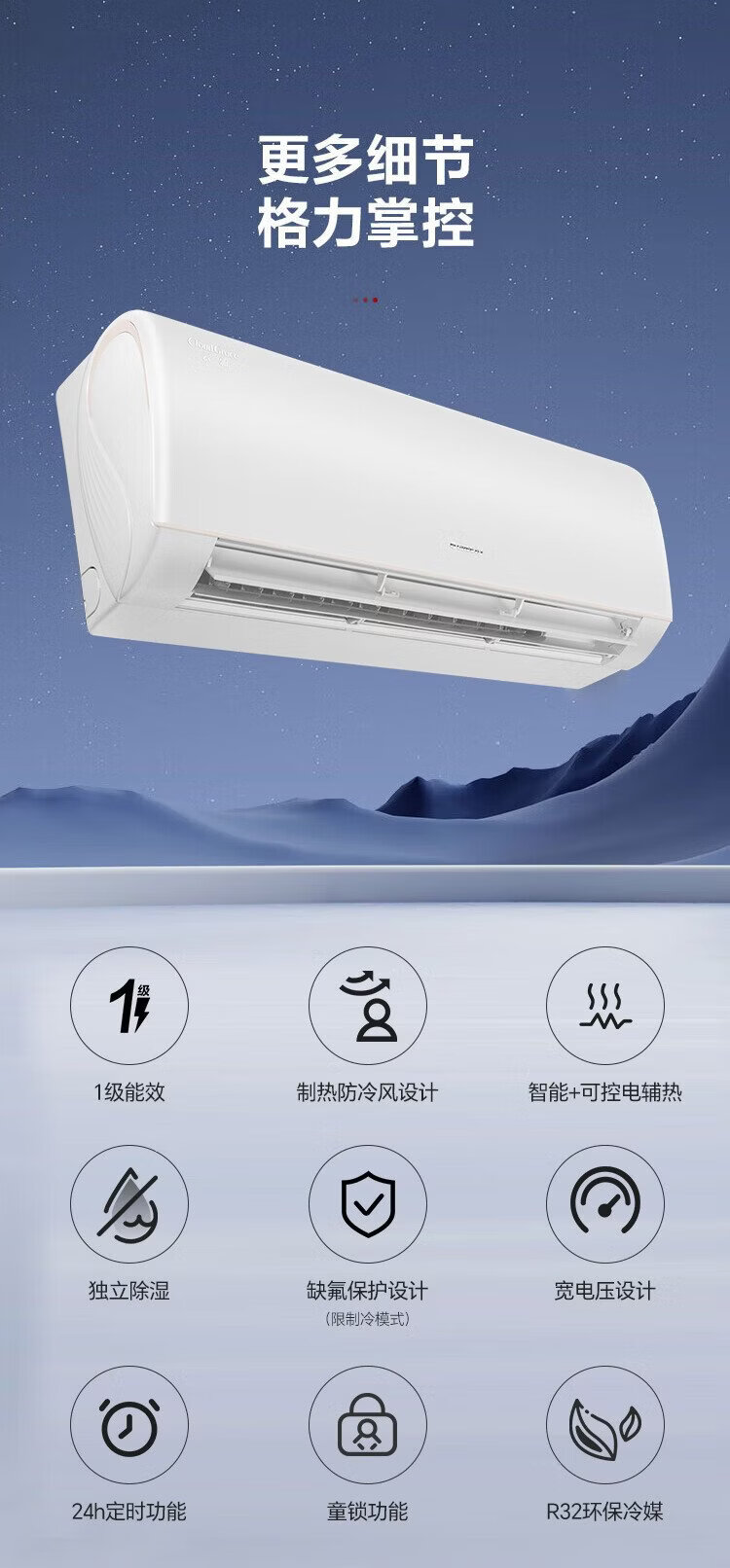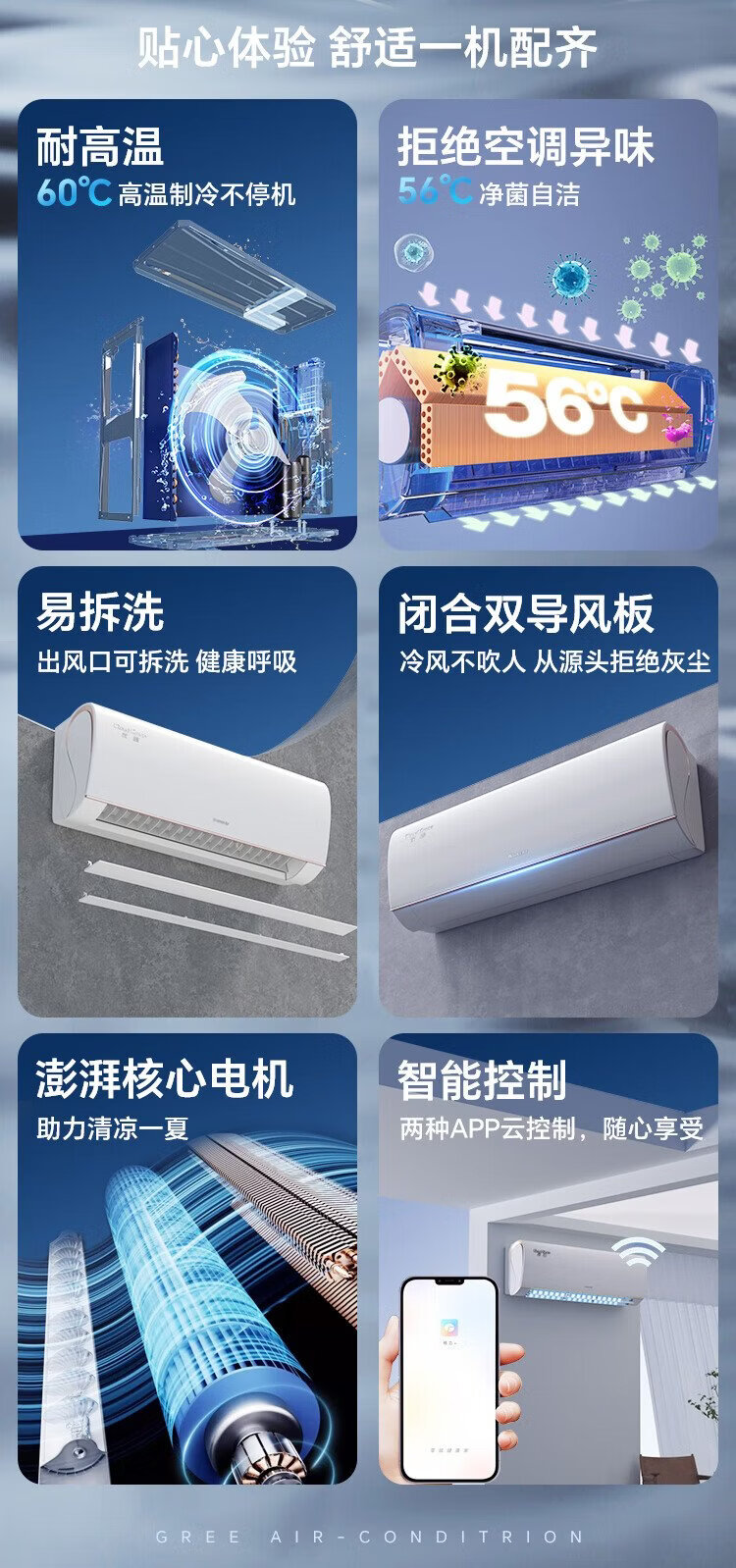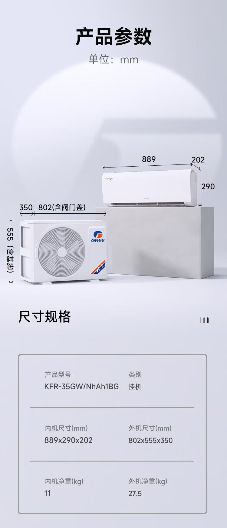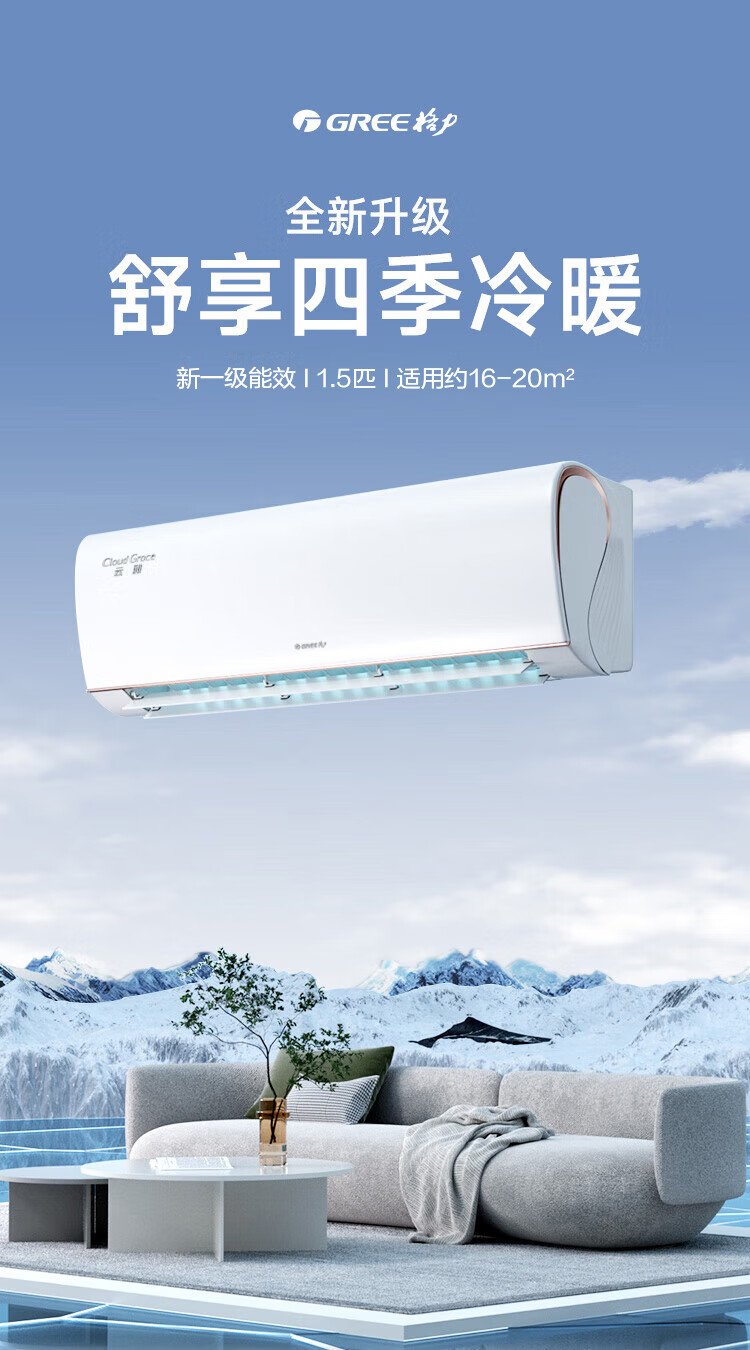 Gree air conditioner Yunya (Tongyun Jinsan) 1.5 HP on-hook one-stage variable frequency heating and cooling pure copper tube + cold outdoor unit energy-saving wall-mounted KFR-35GW/NhAh1BG home appliance subsidy