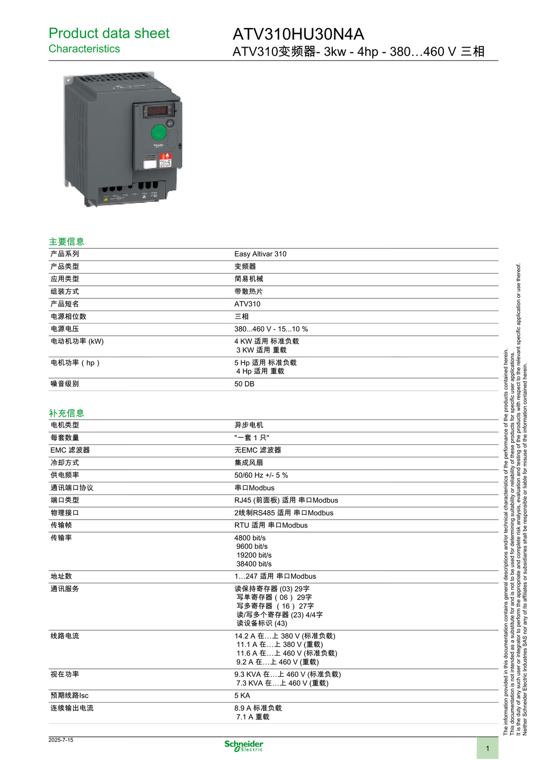 Schneider Electric ATV310 inverter 3kw three-phase ATV310HU30N4A