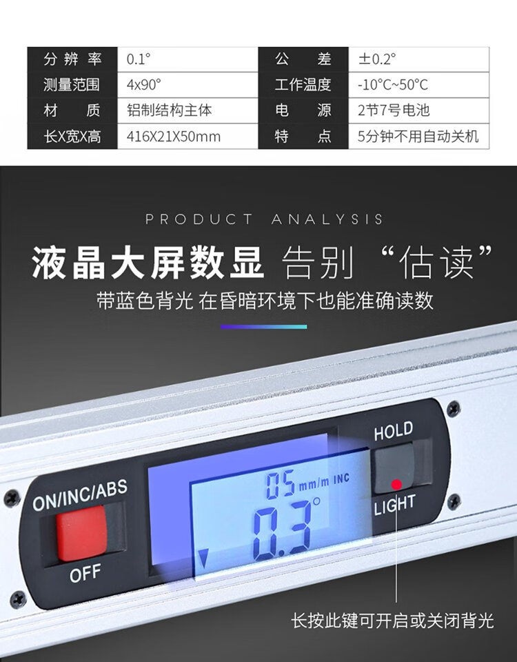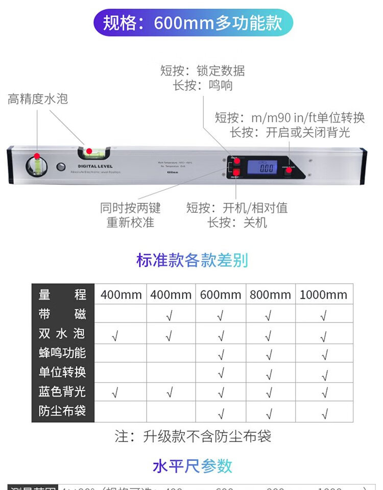 Shixin Laser high-precision electronic digital display level infrared level meter angle meter magnetic slope ruler with level 400MM standard model (without magnet)