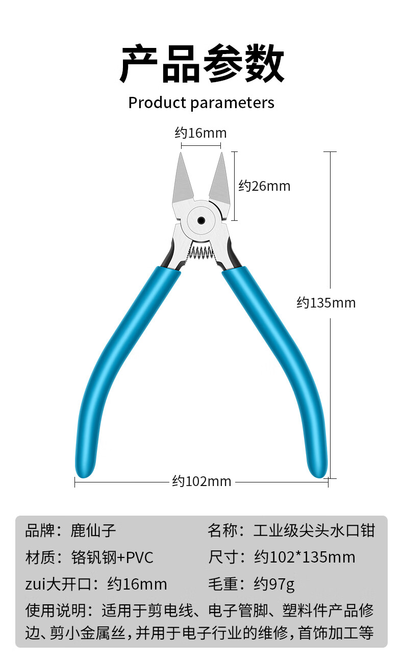 Luxianzi industrial-grade water-mouth pliers, oblique mouth, high-hardness scissors, electrician repair model, trimming, metal wire trimmer, needle-nose pliers, 5 inches